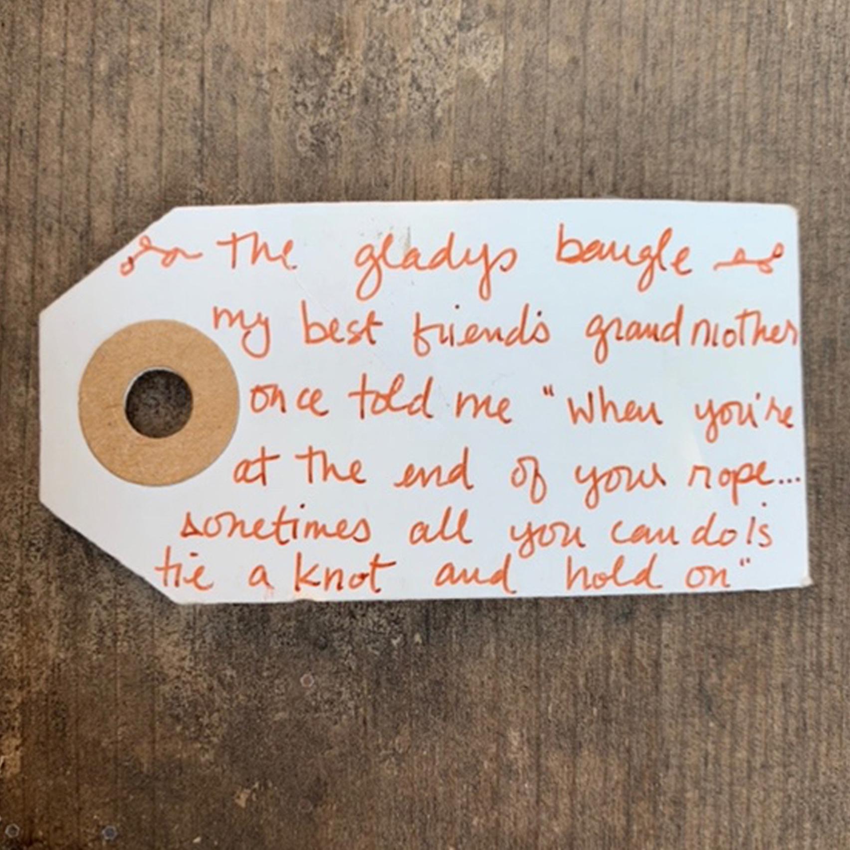 Since then, with the blessing of the Simmons family, Gladys bangles have been made for anyone and everyone that needs one. We invite you to gift them and wear one to help you and your loved ones through challenging times.