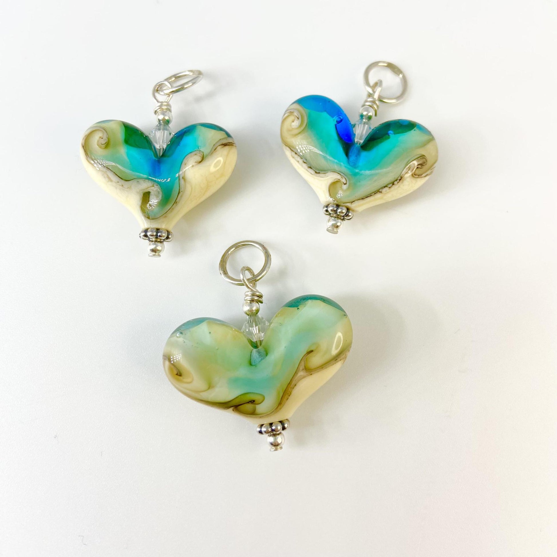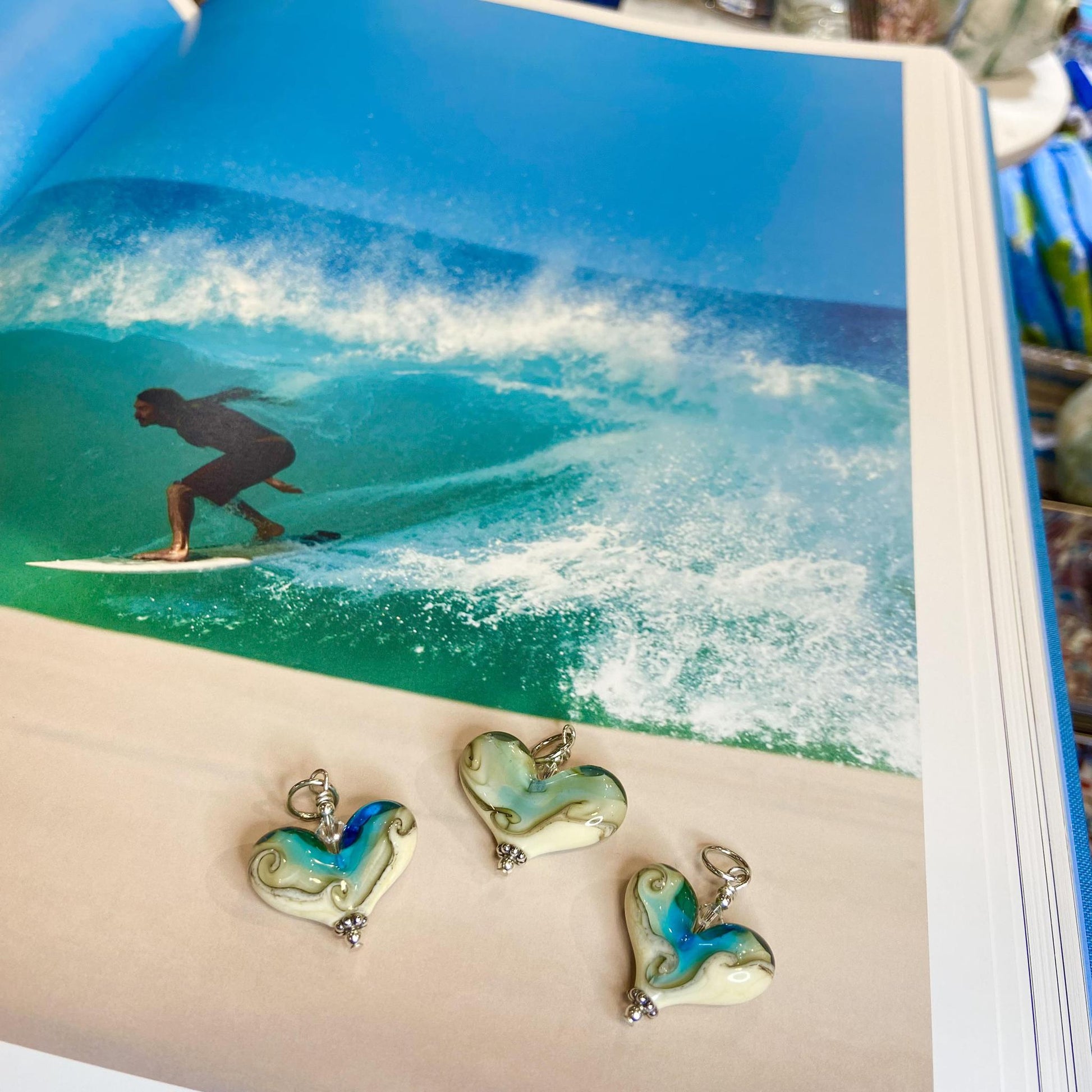 These hearts have a whole beach world inside! Handmade by a Kansas City artist, each heart is one-of-a-kind. They are captivating. Everyone we meet has a special relationship with the ocean and the beach. The hearts capture our love of where the water meets the land.