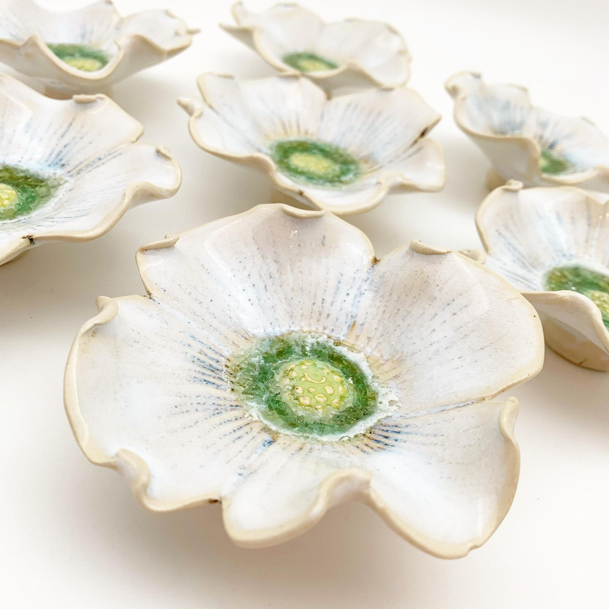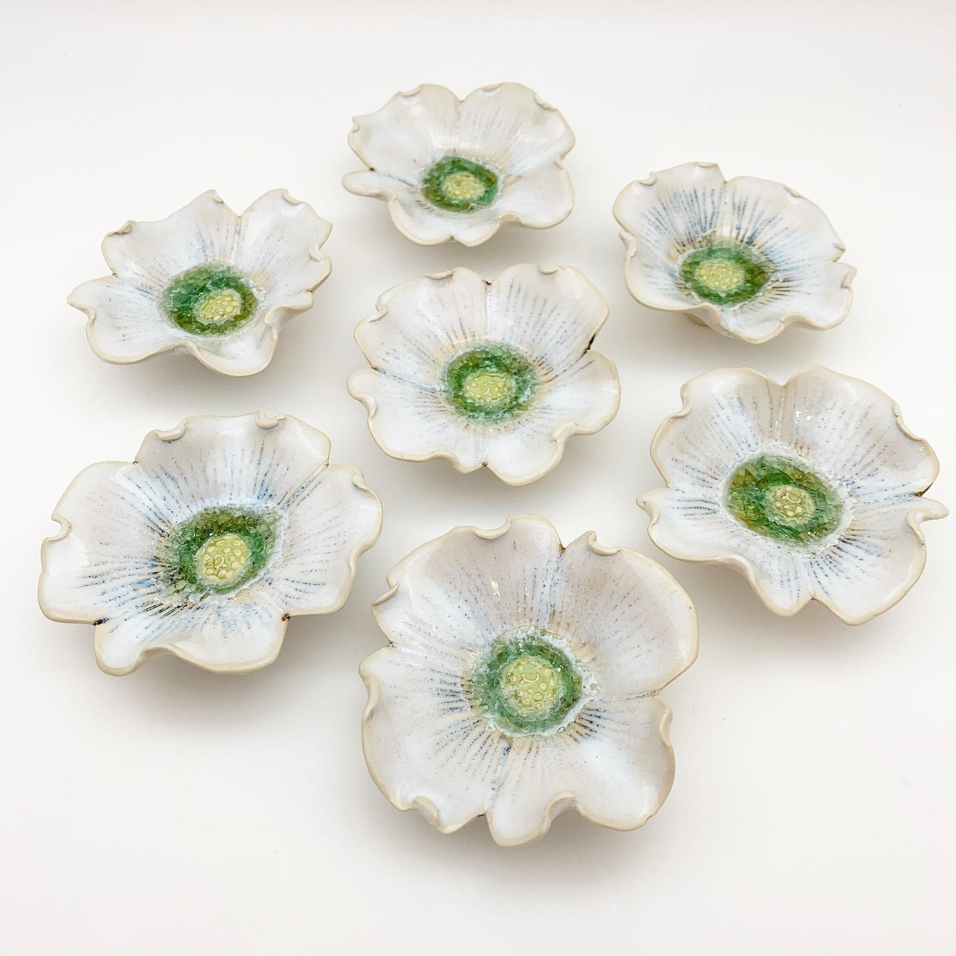 These flowers also come in small, medium, and extra large! The baby dogwoods also come in a limited-edition, beautiful "Nebula Blue" glaze.