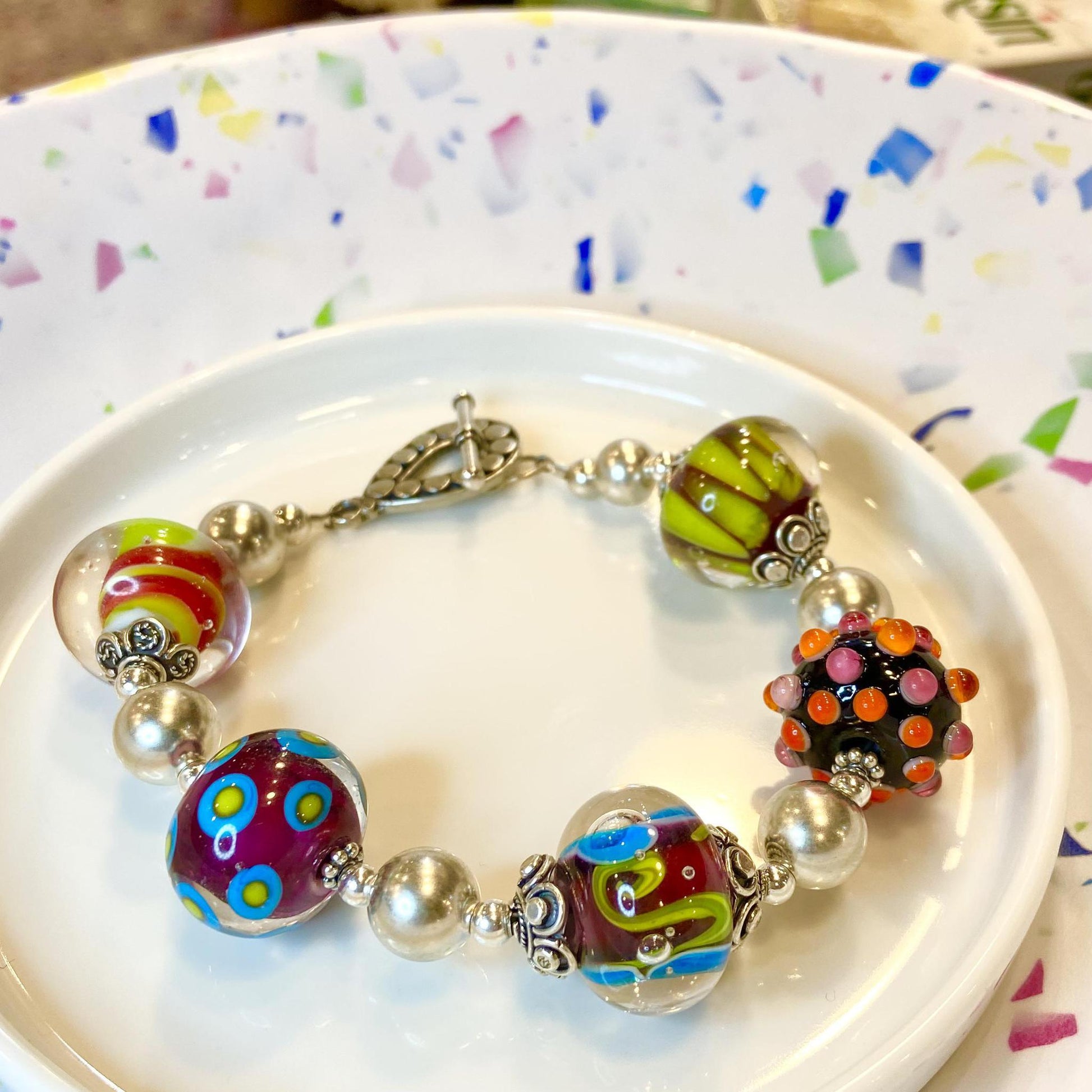 Bracelet - Big & Funky - Glass Beads & Sterling