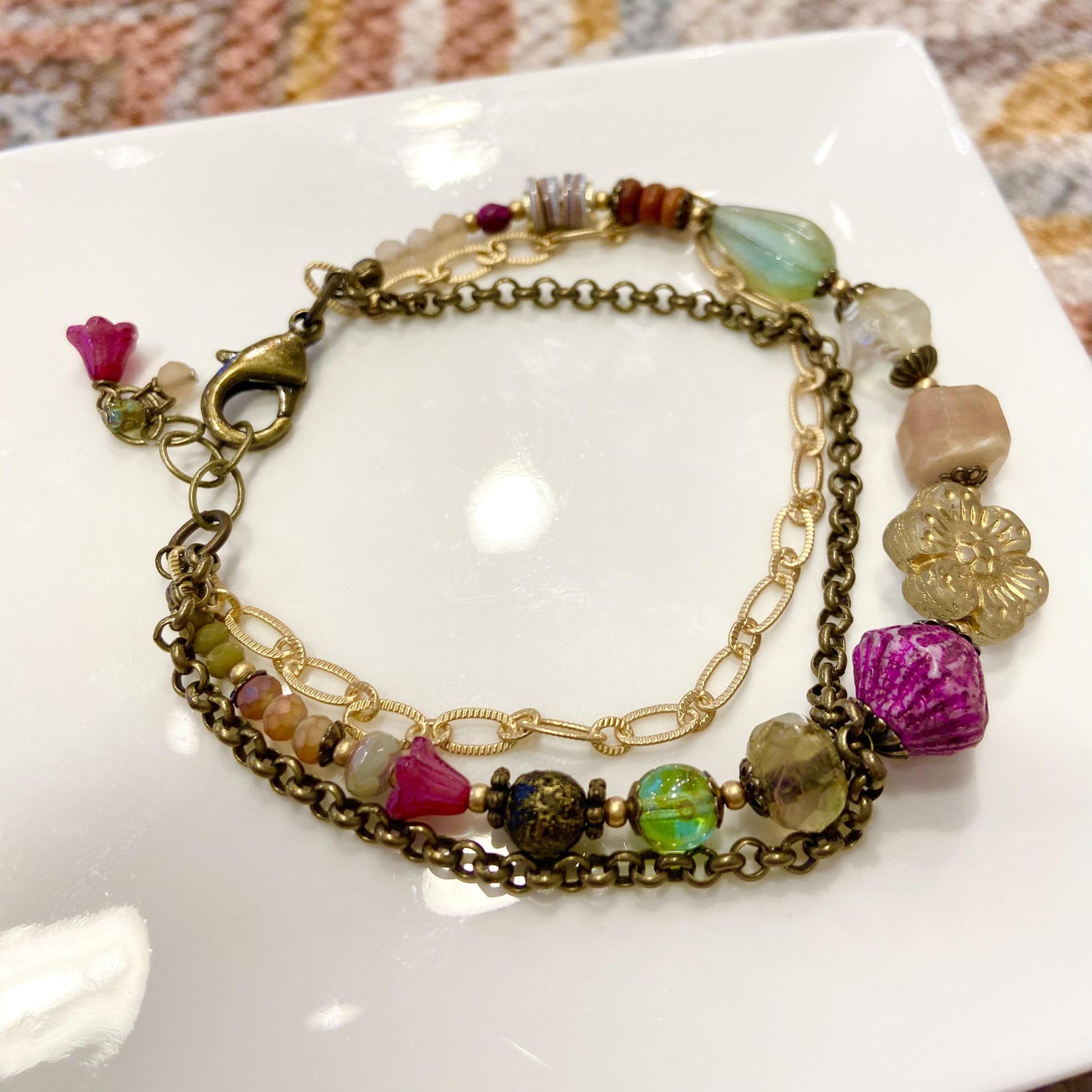 Please note: Each bracelet is one-of-a-kind. Our artist creates multiples of each design for our customers. Each bracelet will be slightly different and can feature unique beads. That is the beauty of natural and semi-precious stones used in jewelry made by hand.
