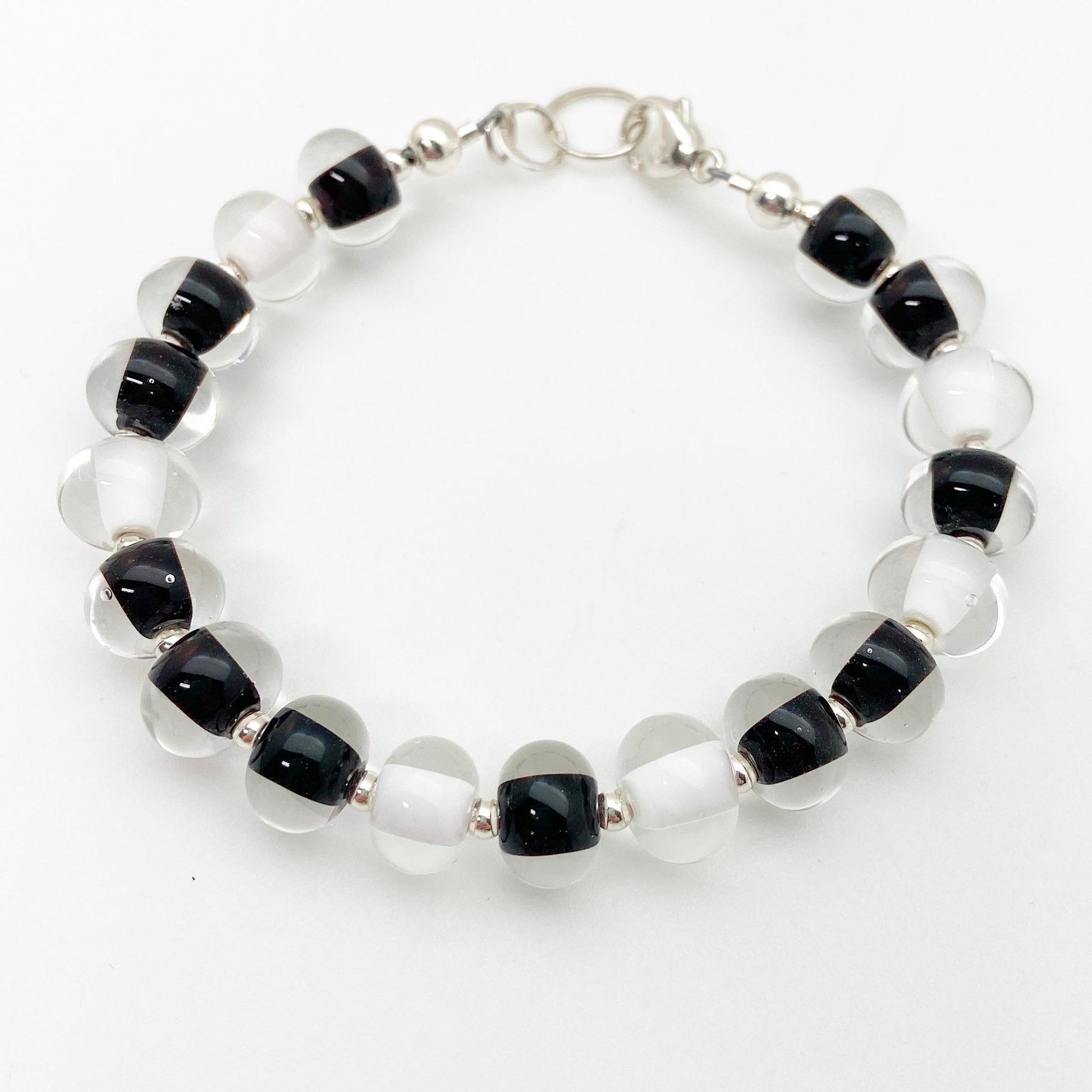 Bracelet - Glass Pearl - Black and White
