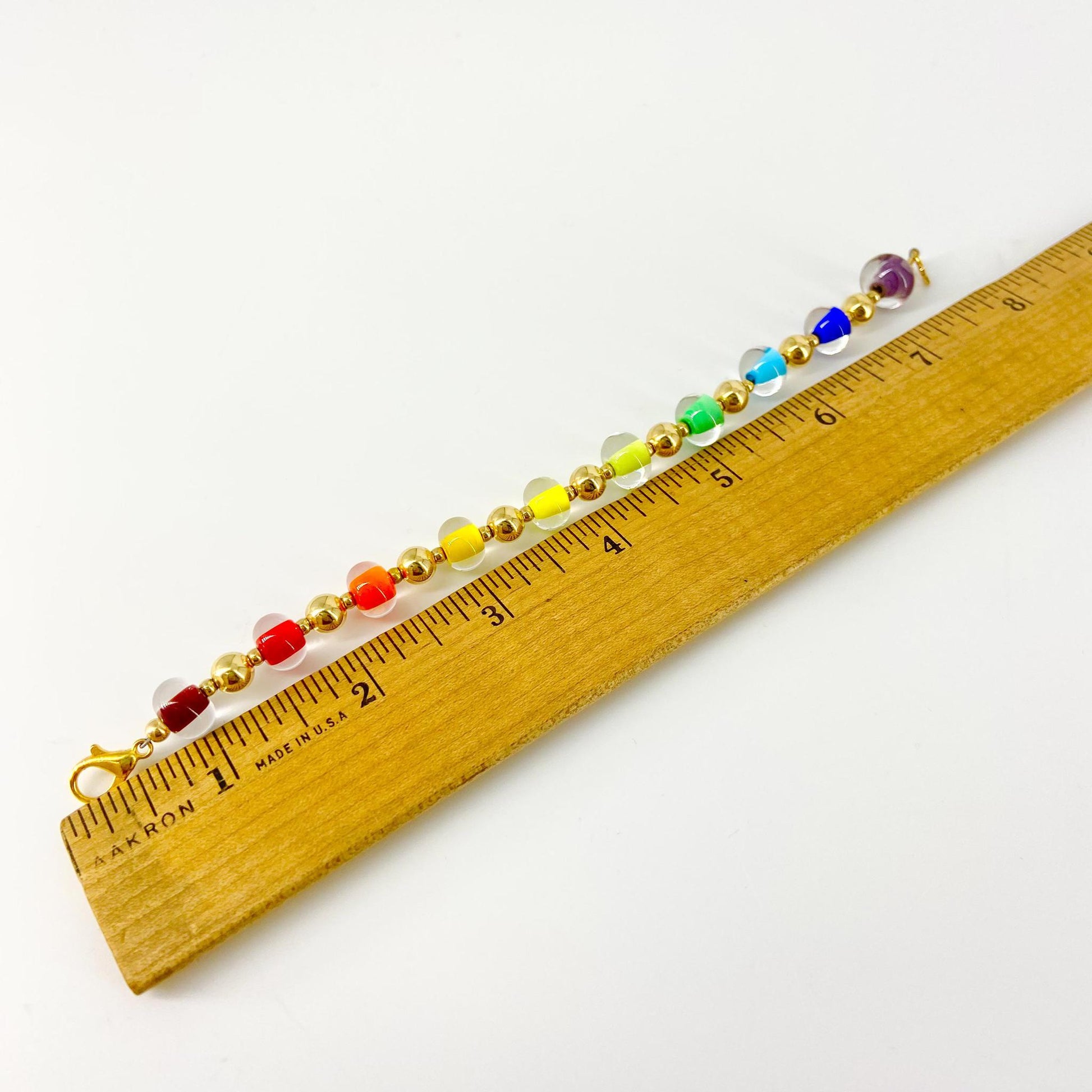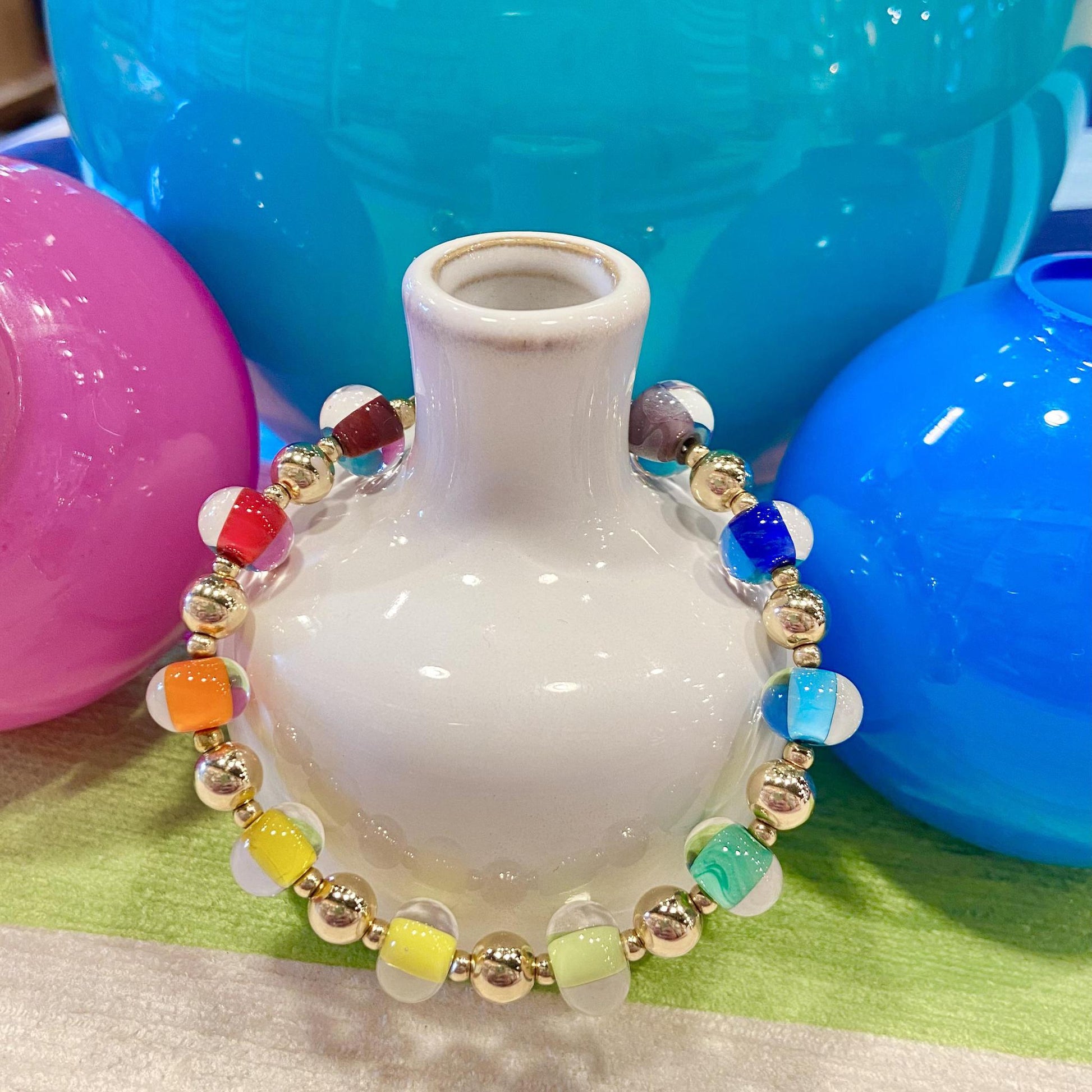 Bracelet - Glass Pearl & Gold Plate - Rainbow