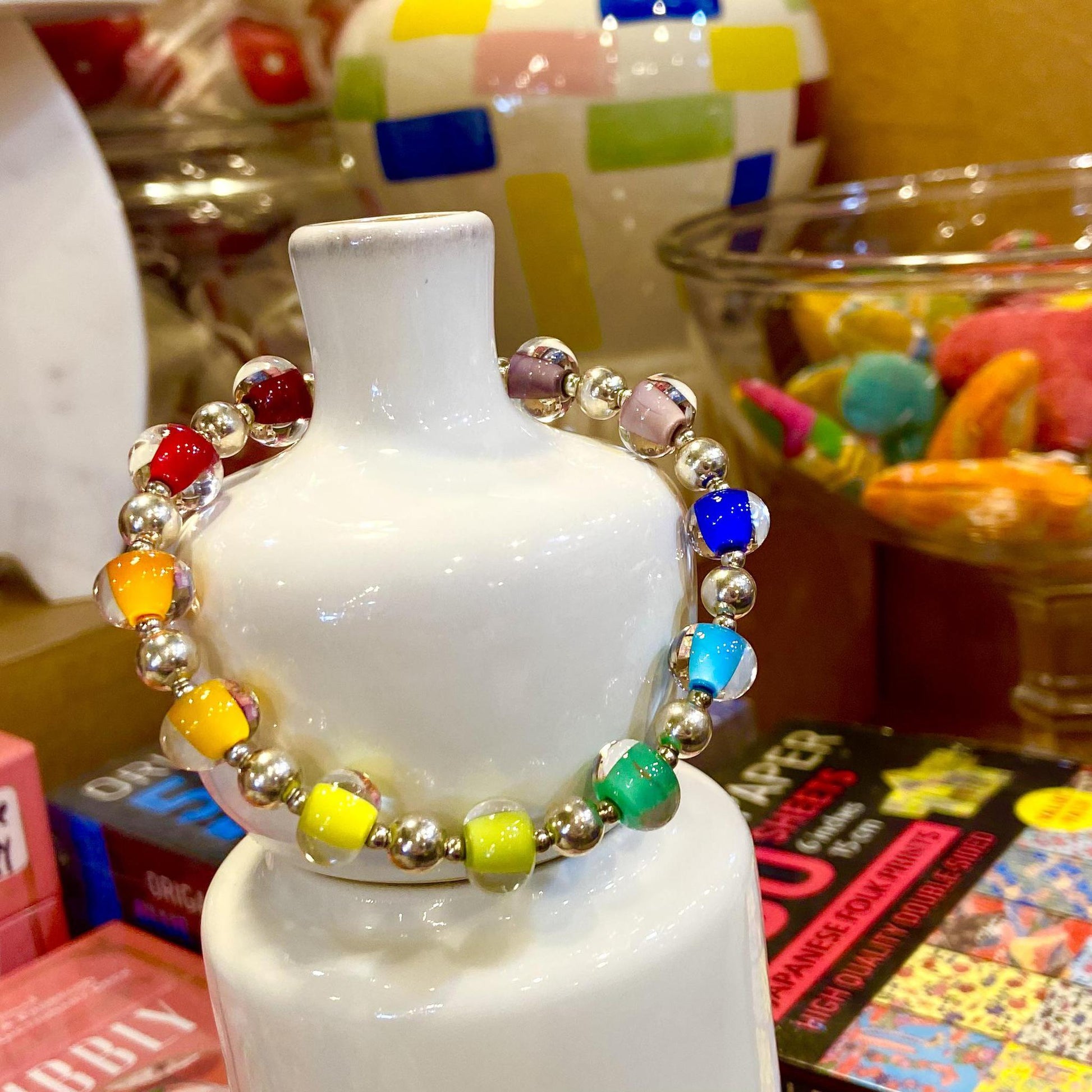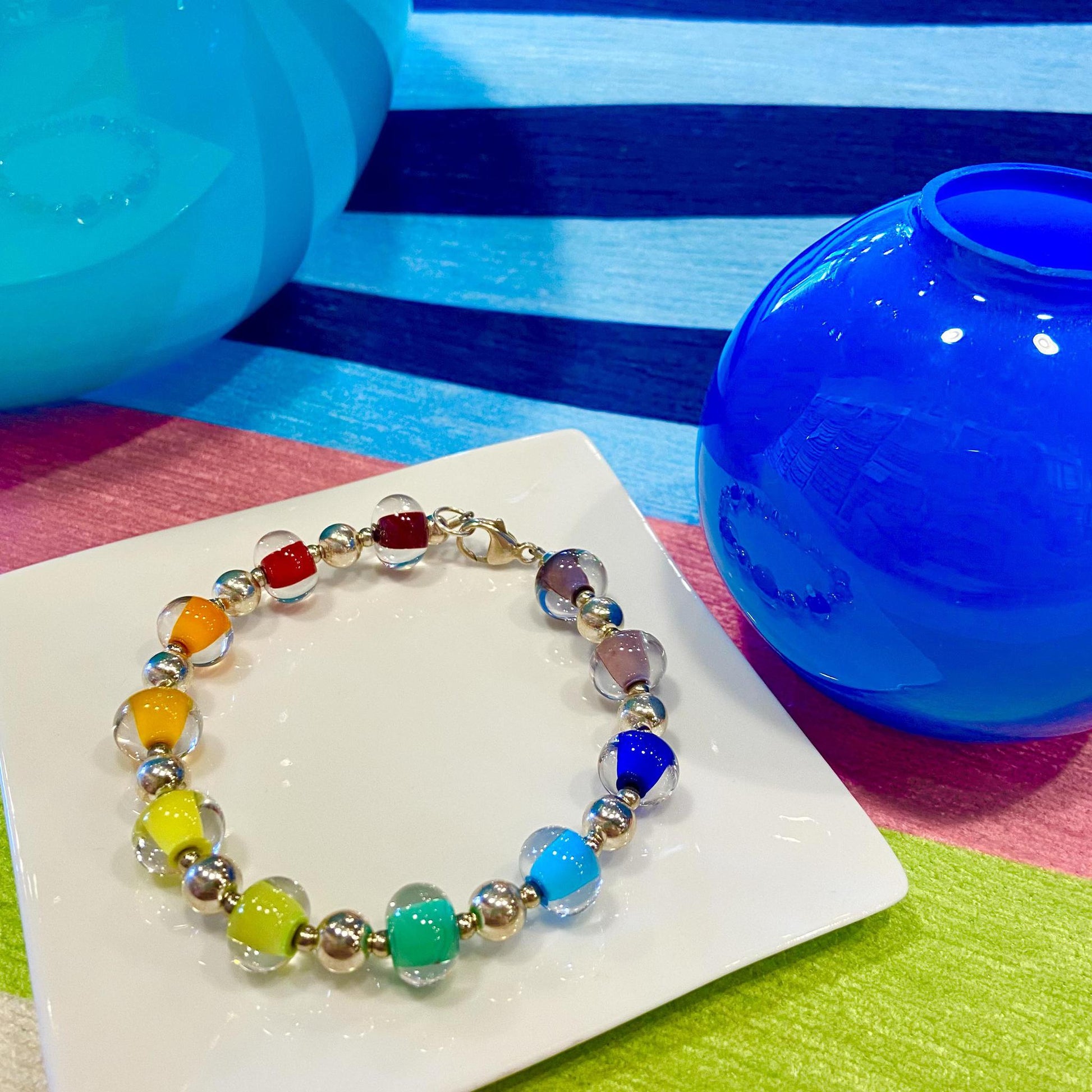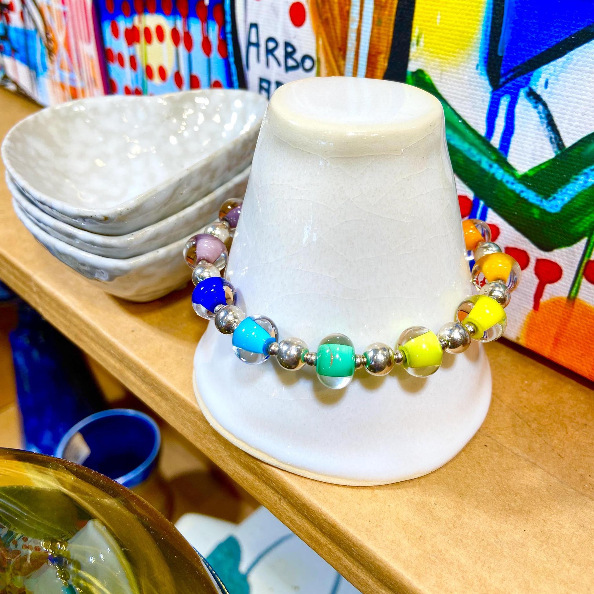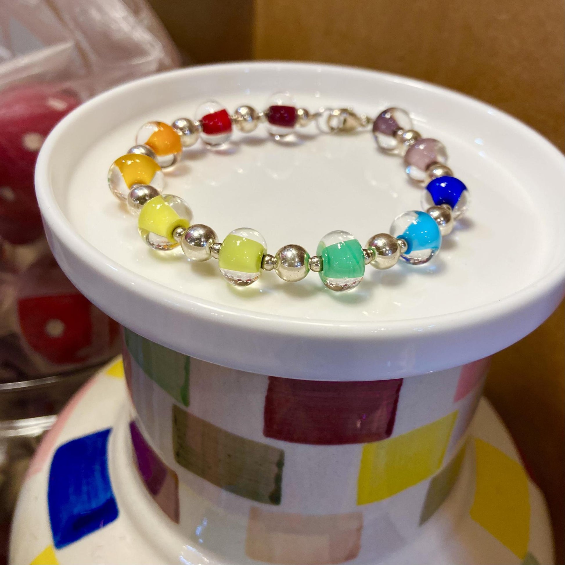 Bracelet - Glass Pearl & Sterling - Rainbow