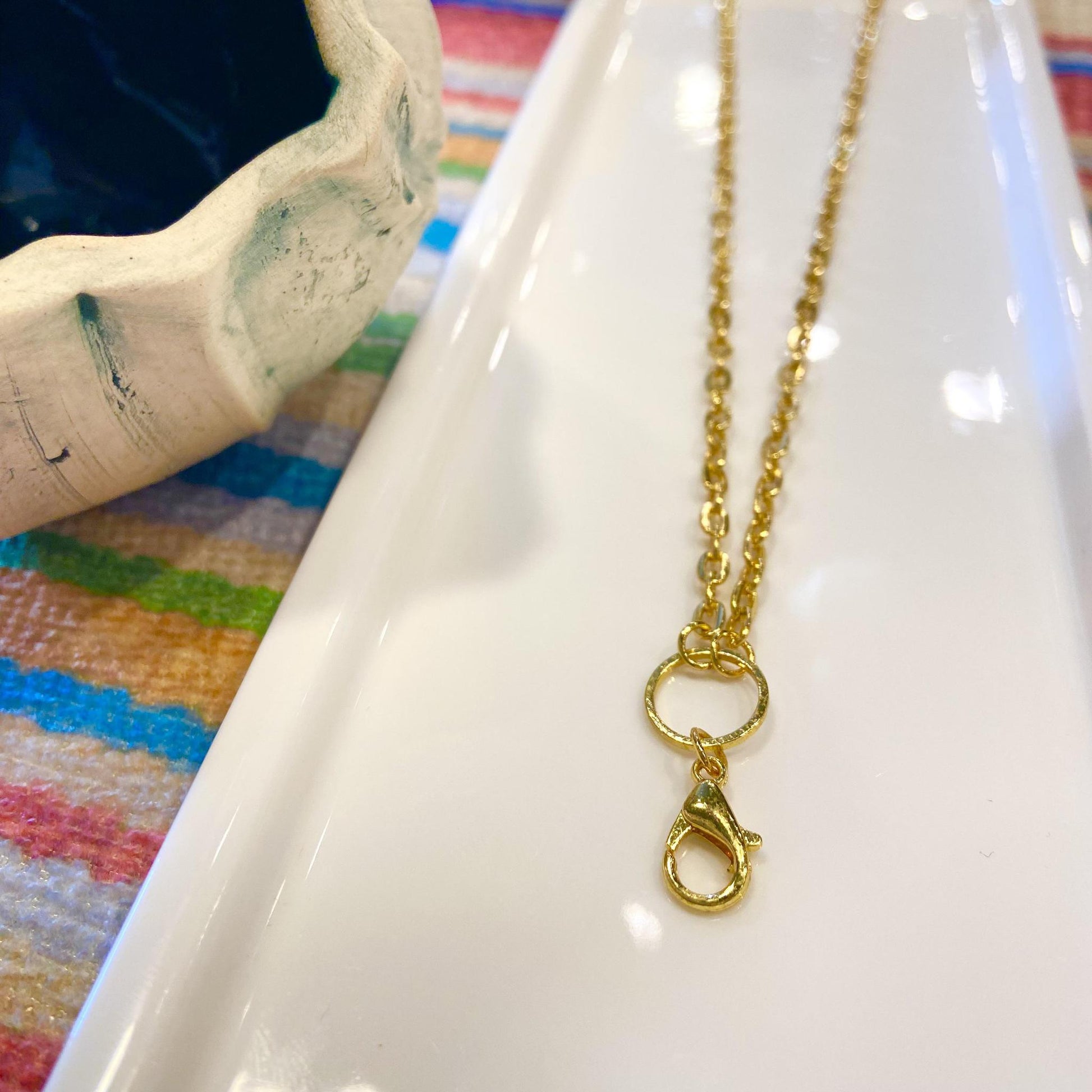 This necklace is ready for your own charms and pendants. Handy to have around for your collection of artist-made, antique, vintage, and unexpected wearable art. Easily add them to this chain using the clasp. Create your own combos!