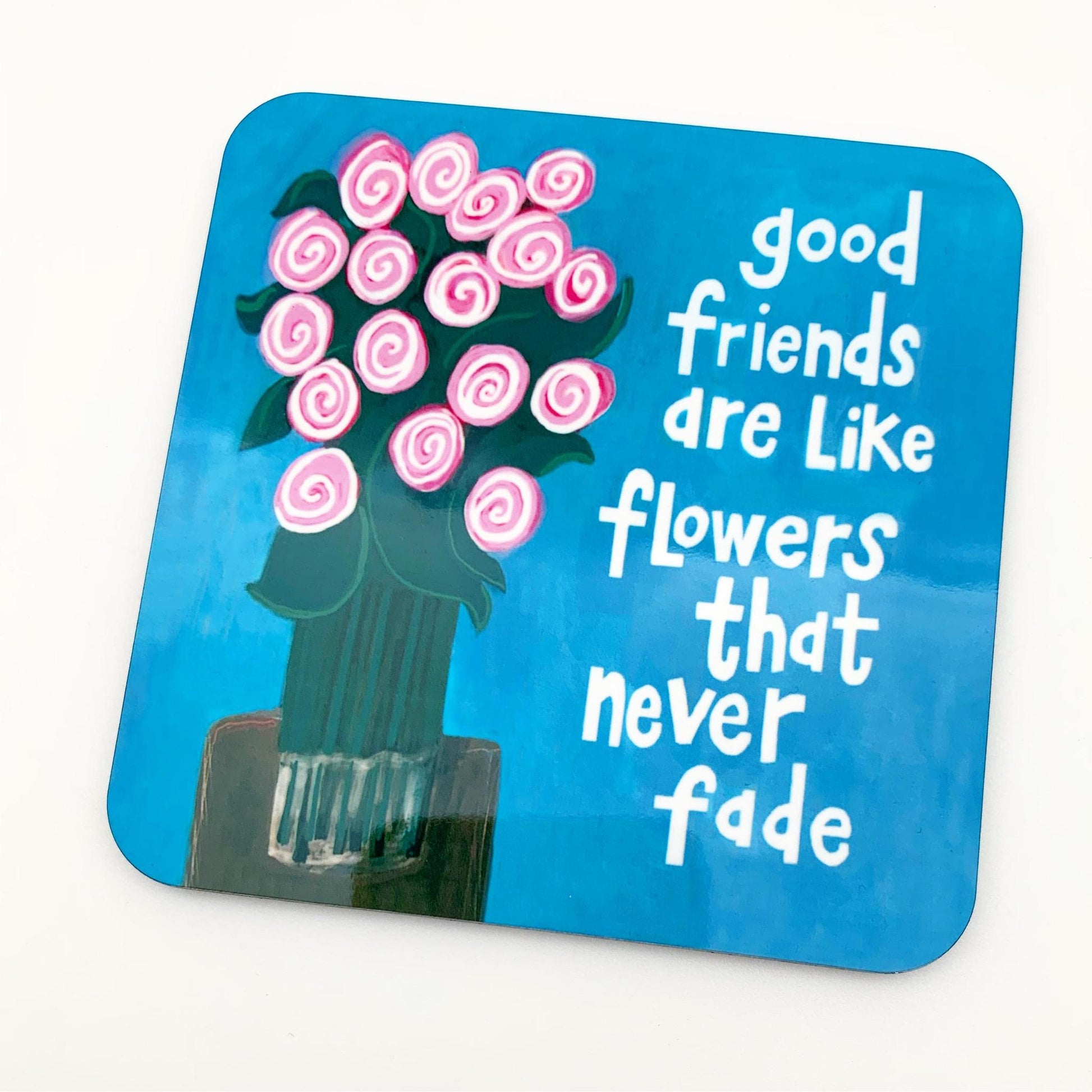 Coaster - "Good Friends Are Like Flowers That Never Fade" - Cork Backed