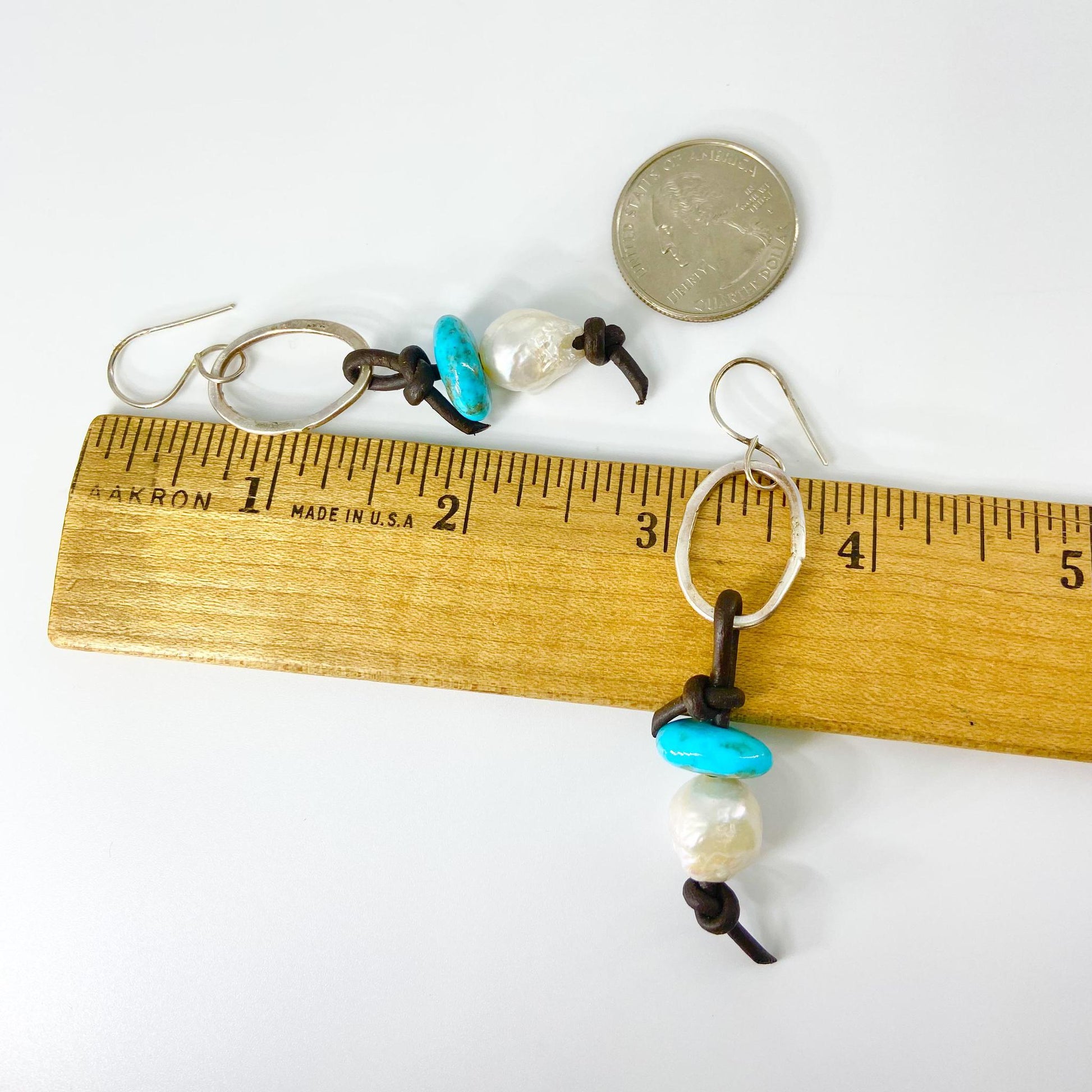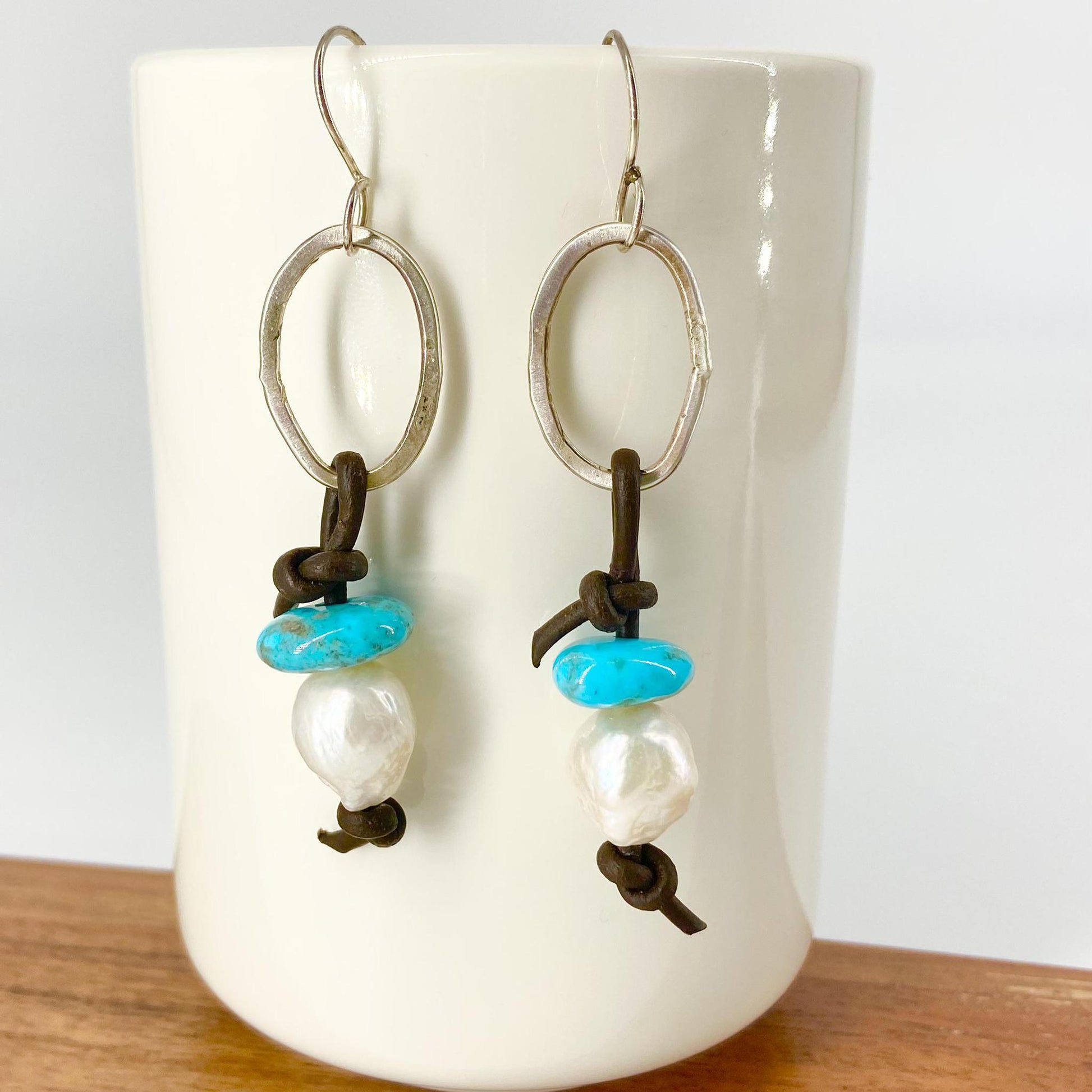 Earrings - Sterling/Leather/Turquoise/Pearl Original