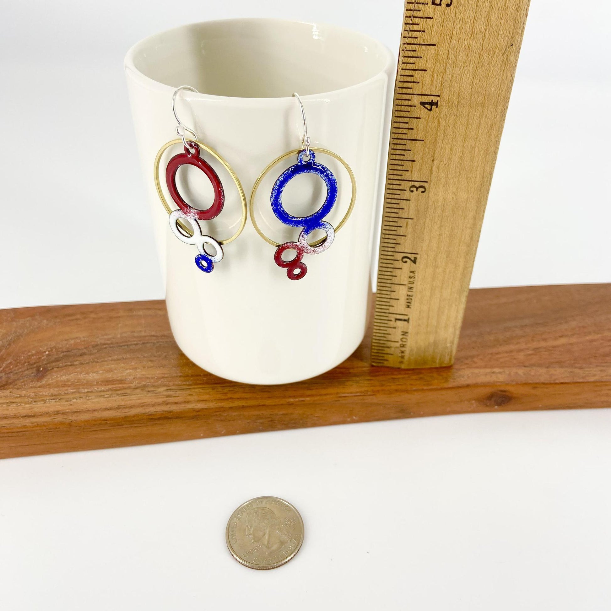 Earrings - Red/White/Blue Bubbles - Enamel on Copper