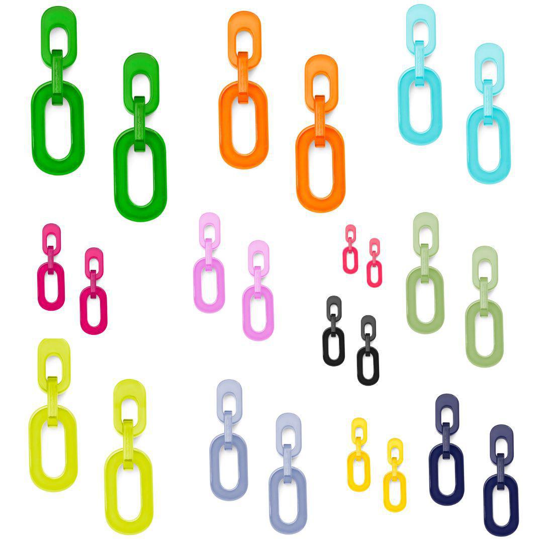 Wearable art! This colorful, vivid jewelry collection is bold, but classic. Eye catching with simple, clean lines in a rainbow of bright color options. They can be a bit addictive ;) Our customers love to collect all their favorite colors.