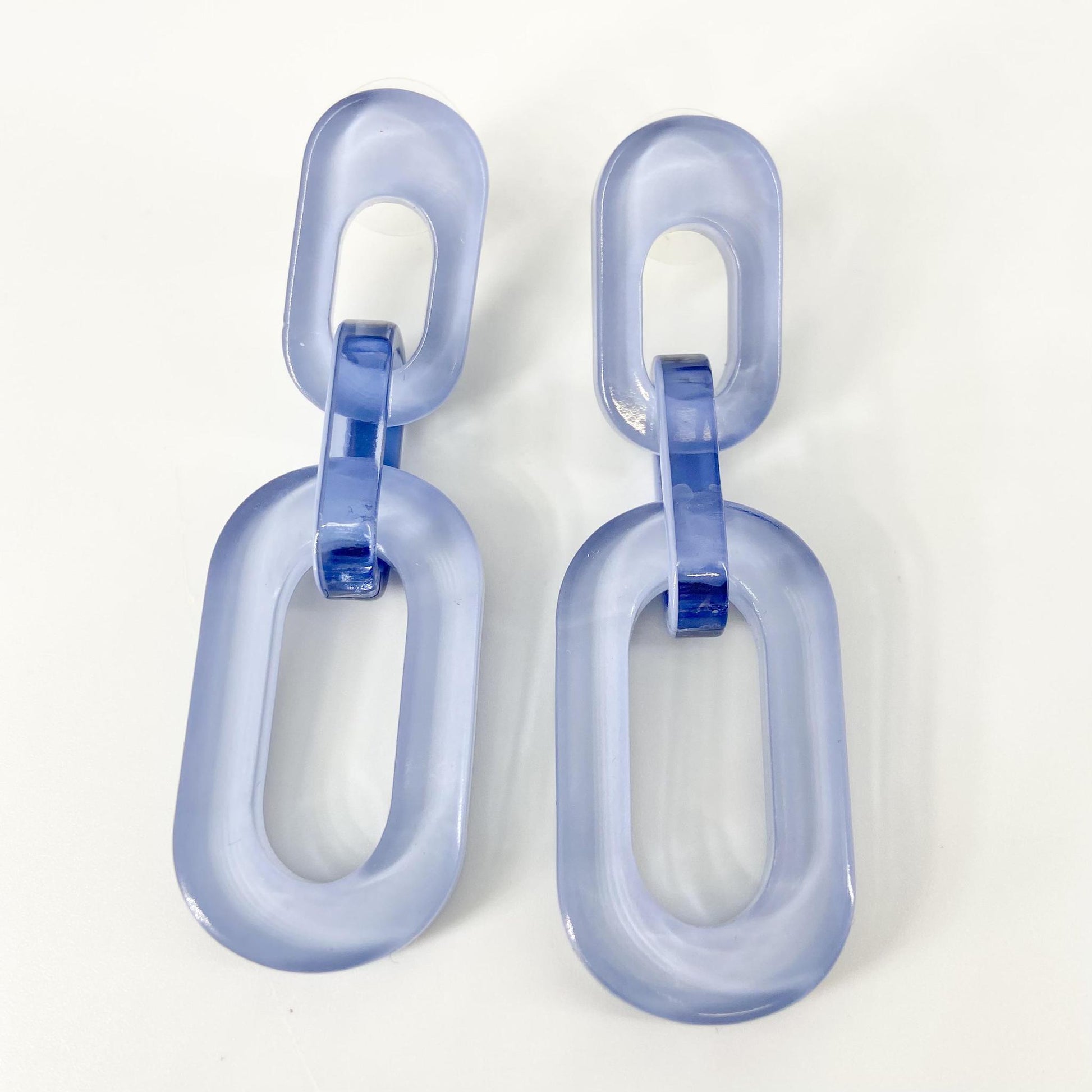 Earrings - Cable Chain Drop Post - Light Blue - Resin
