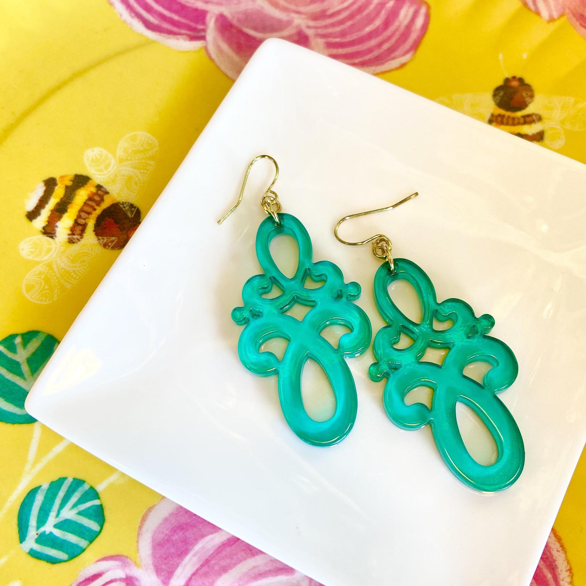Wearable art! This colorful, vivid jewelry collection is bold, but classic. Simple, clean lines in bright colors immediately catches your eye. Warning: Our customers often come back to add colors to their collection. They are a bit addictive ;)
