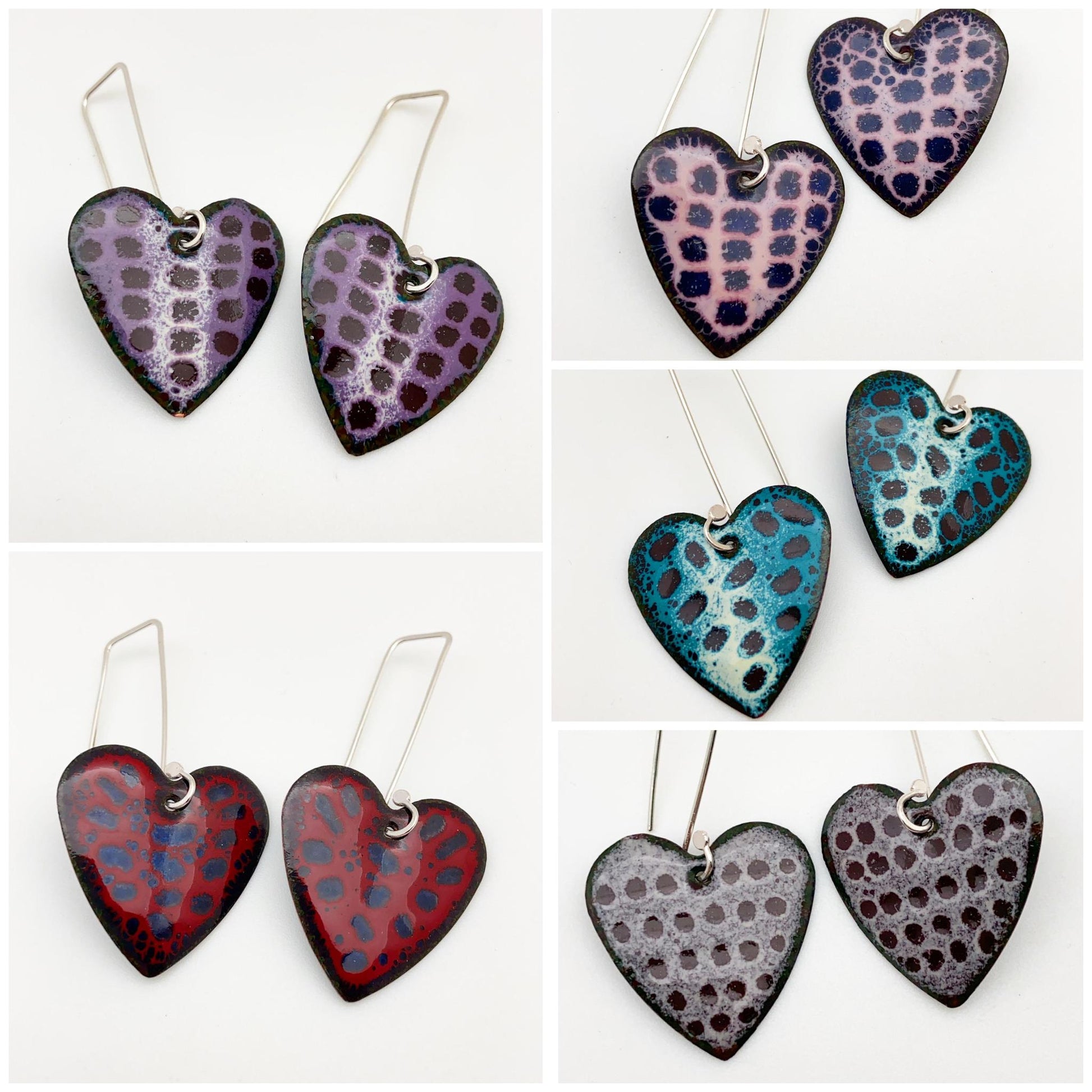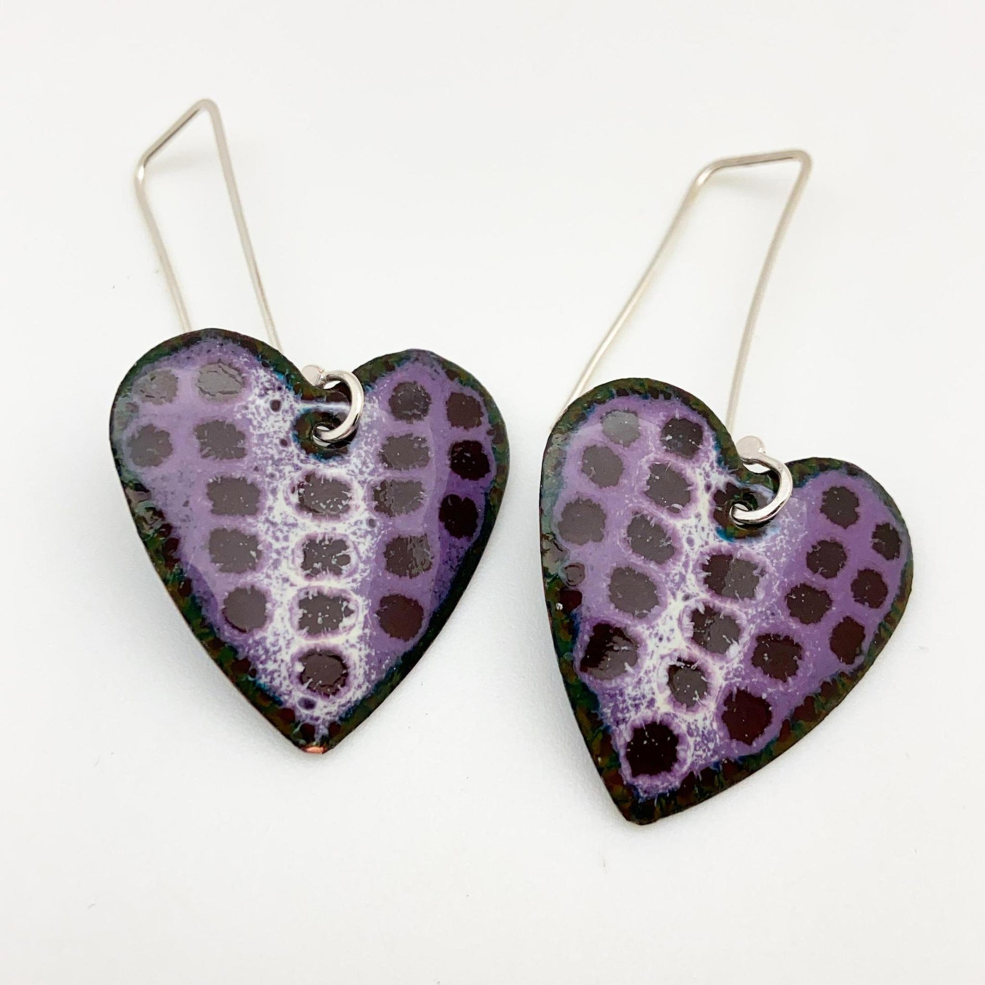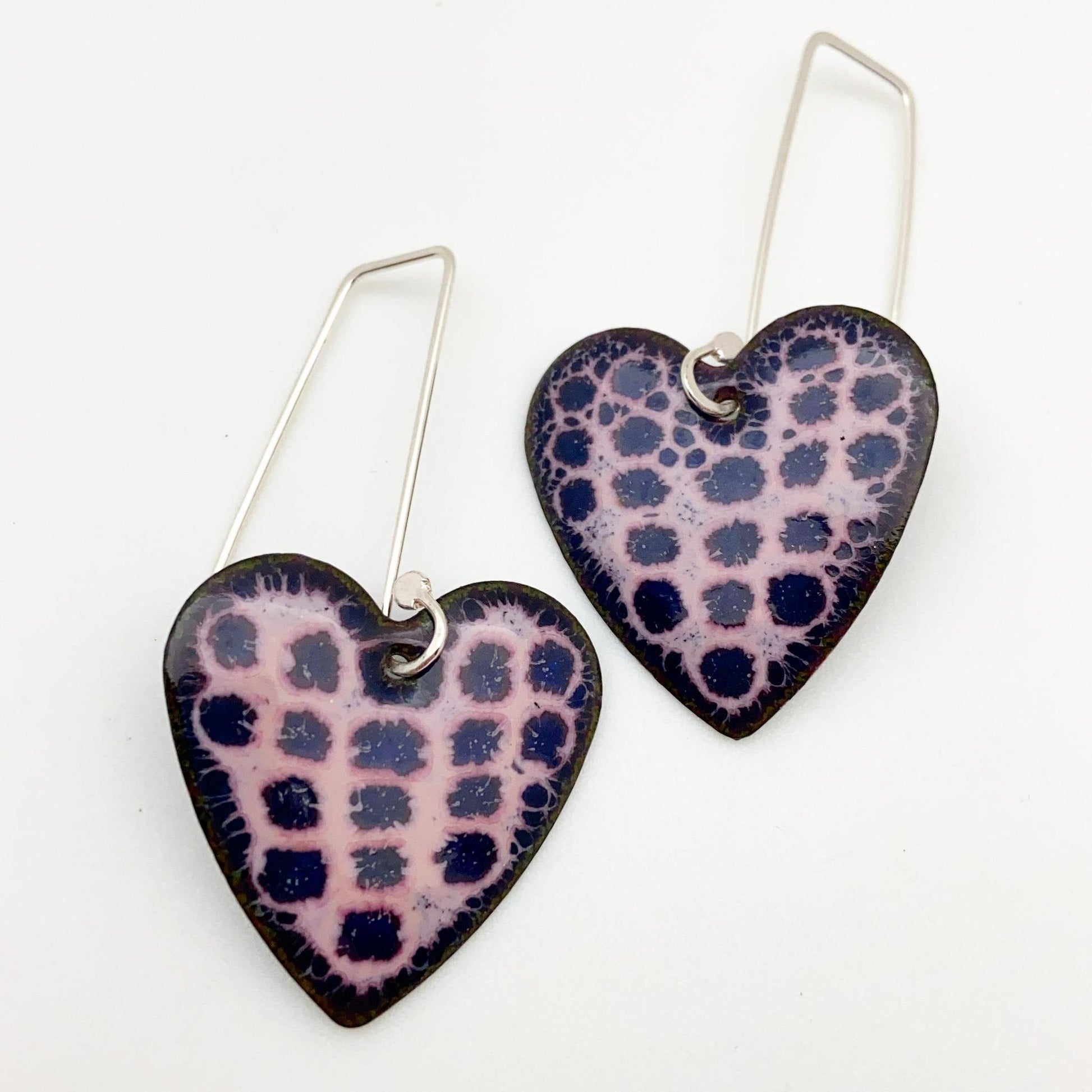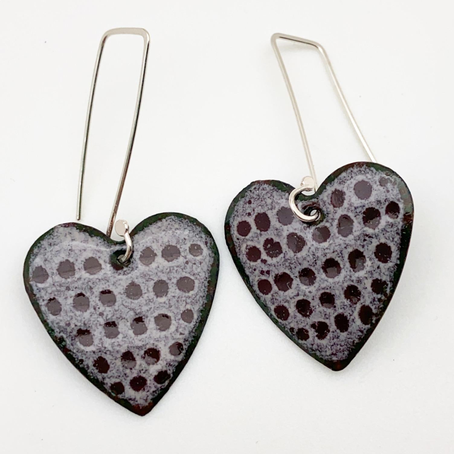 Earrings - Polka Dot Hearts - Enamel on Copper