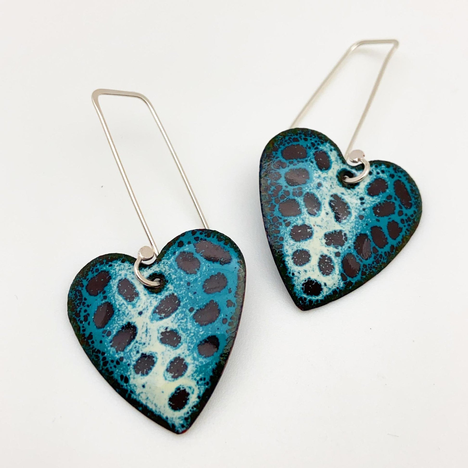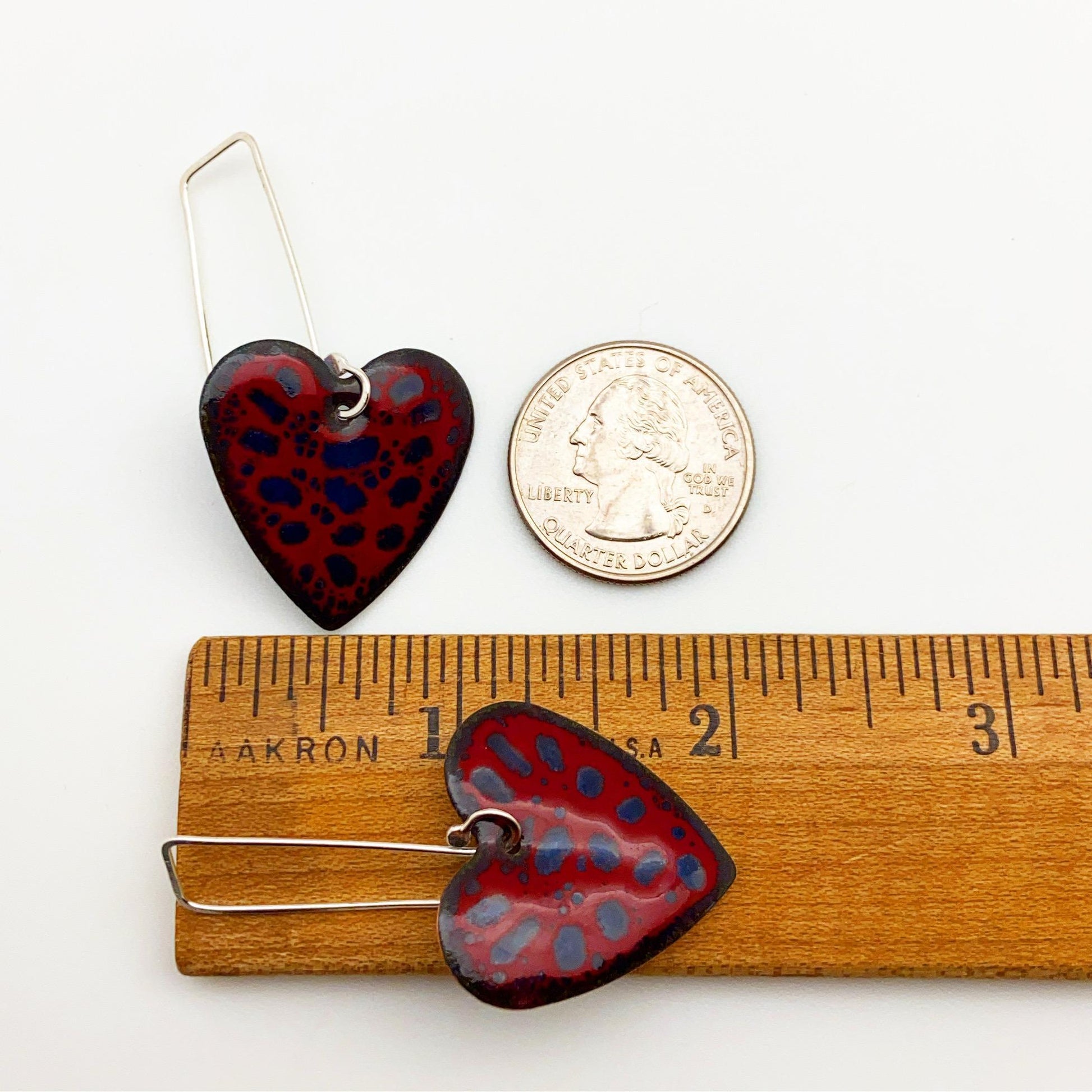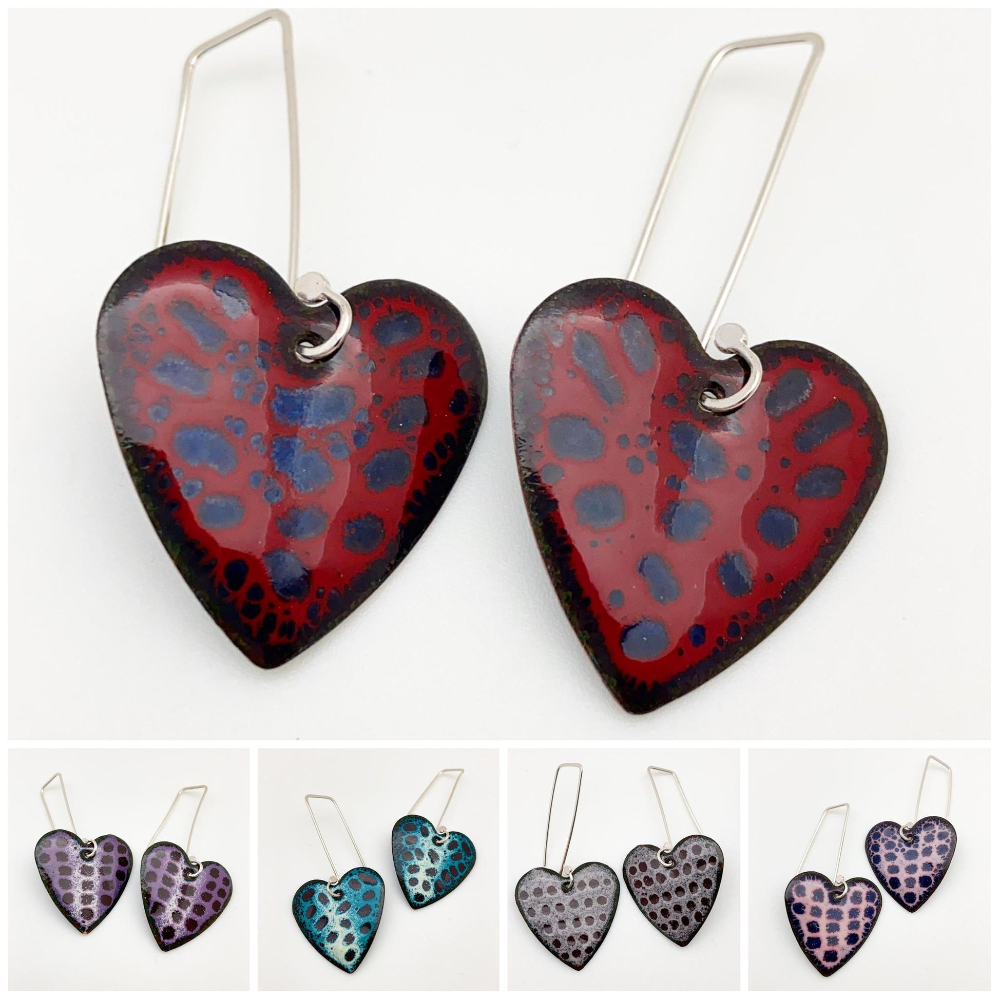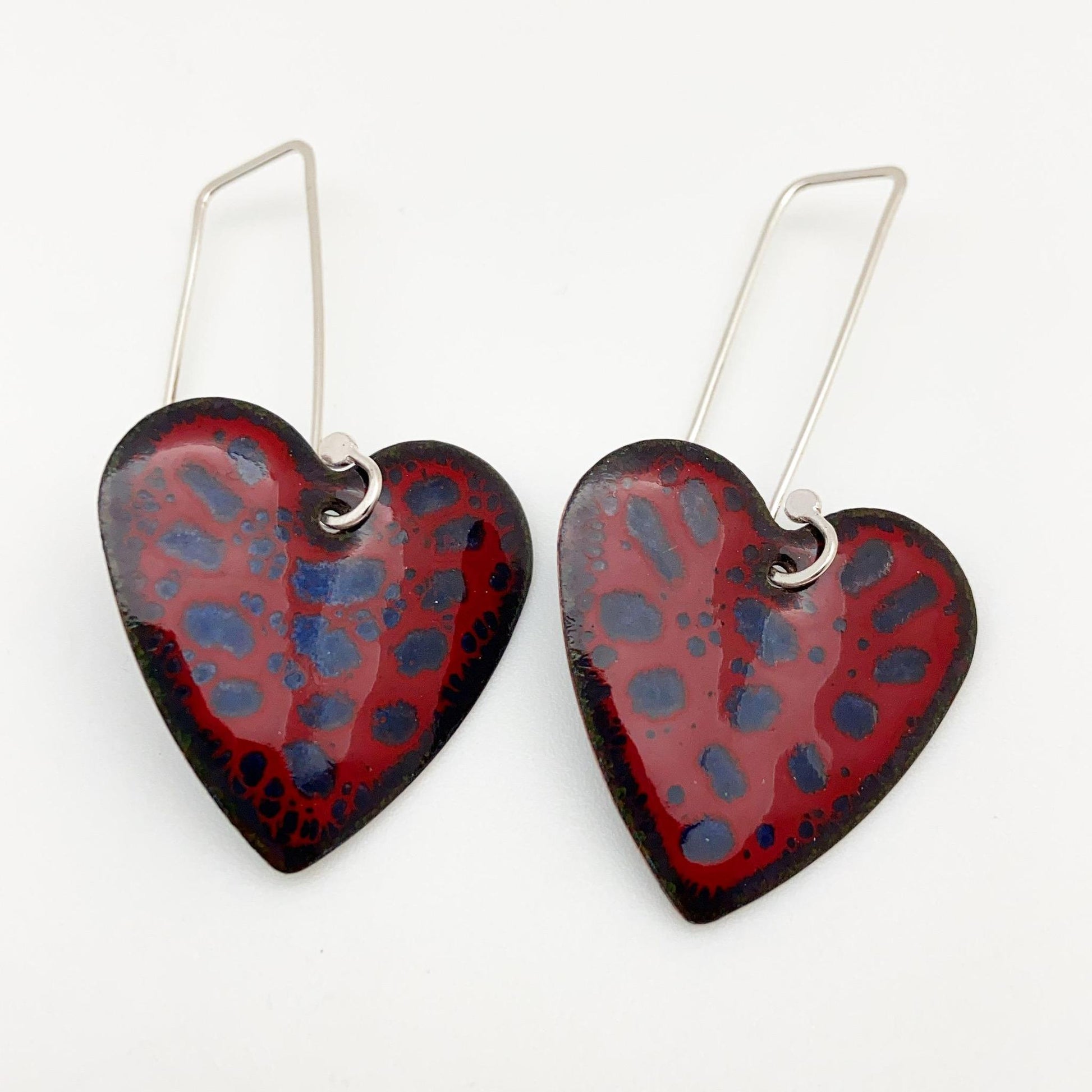 Earrings - Polka Dot Hearts - Enamel on Copper