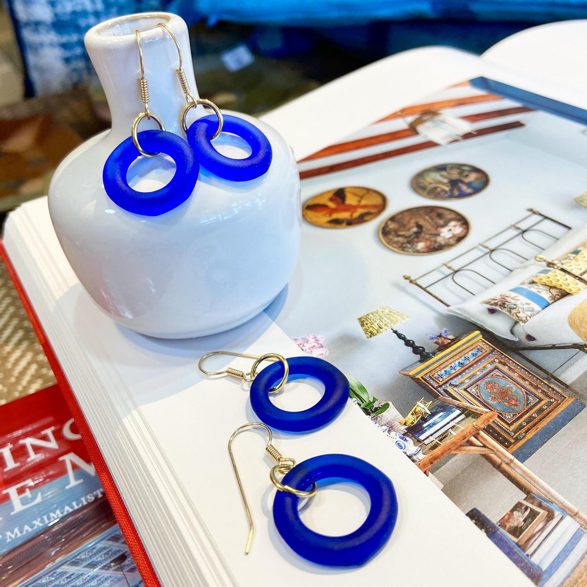 Earrings - Reclaimed Glass - Cobalt