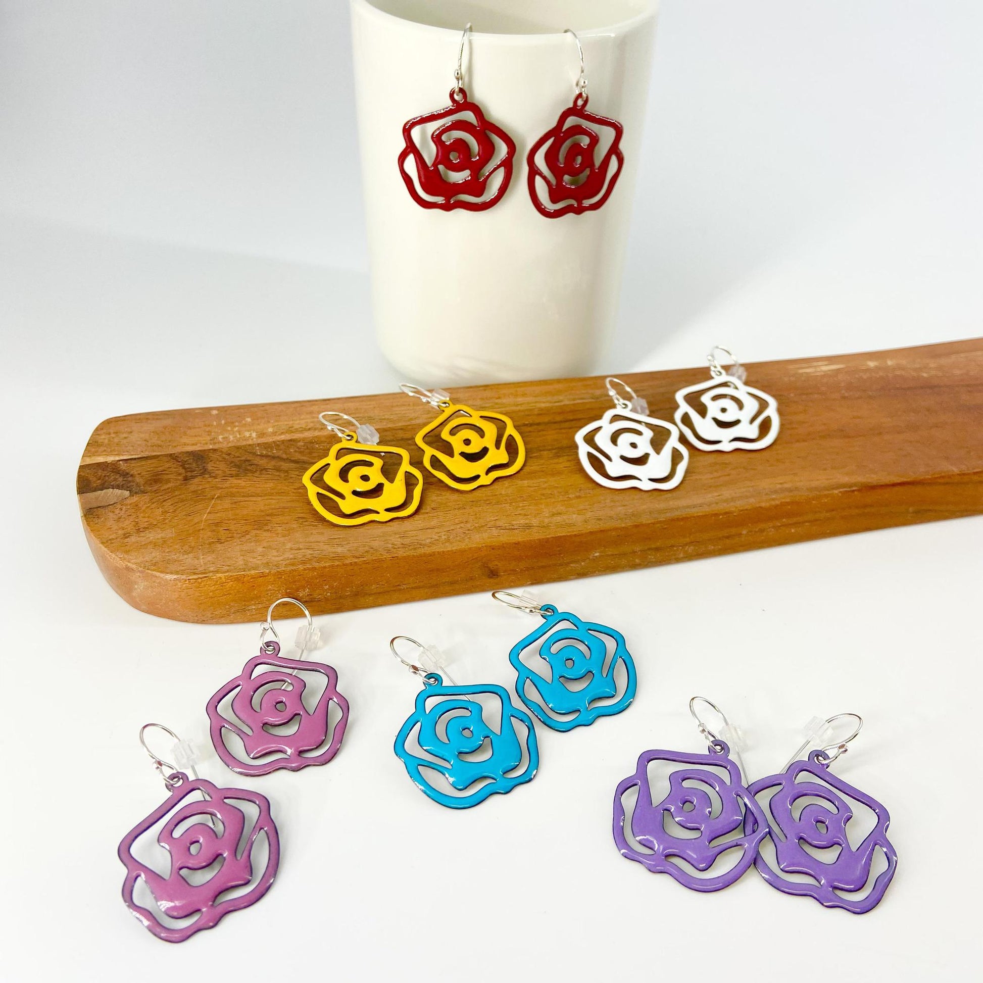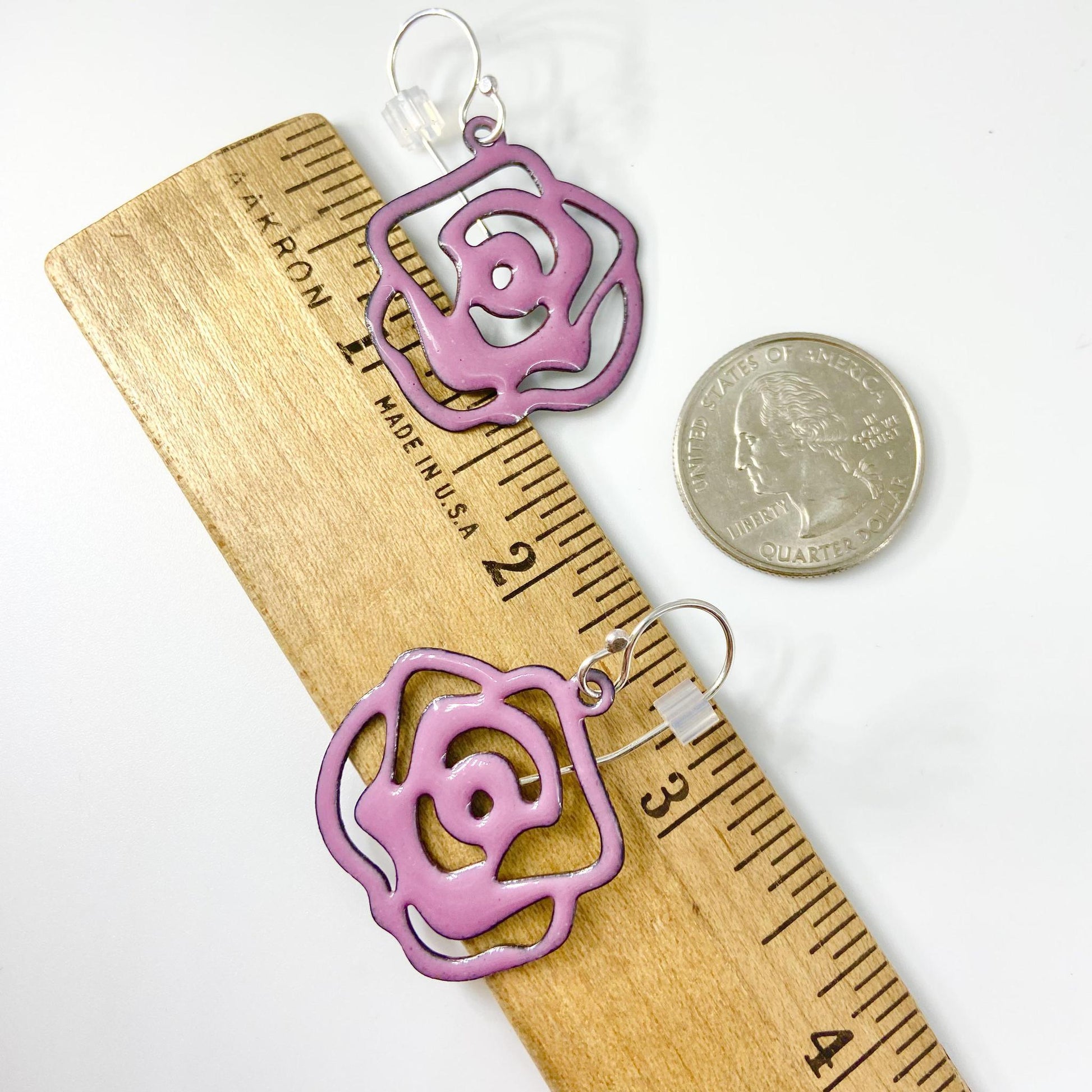 Earrings - Silhouette Roses - Enamel on Copper