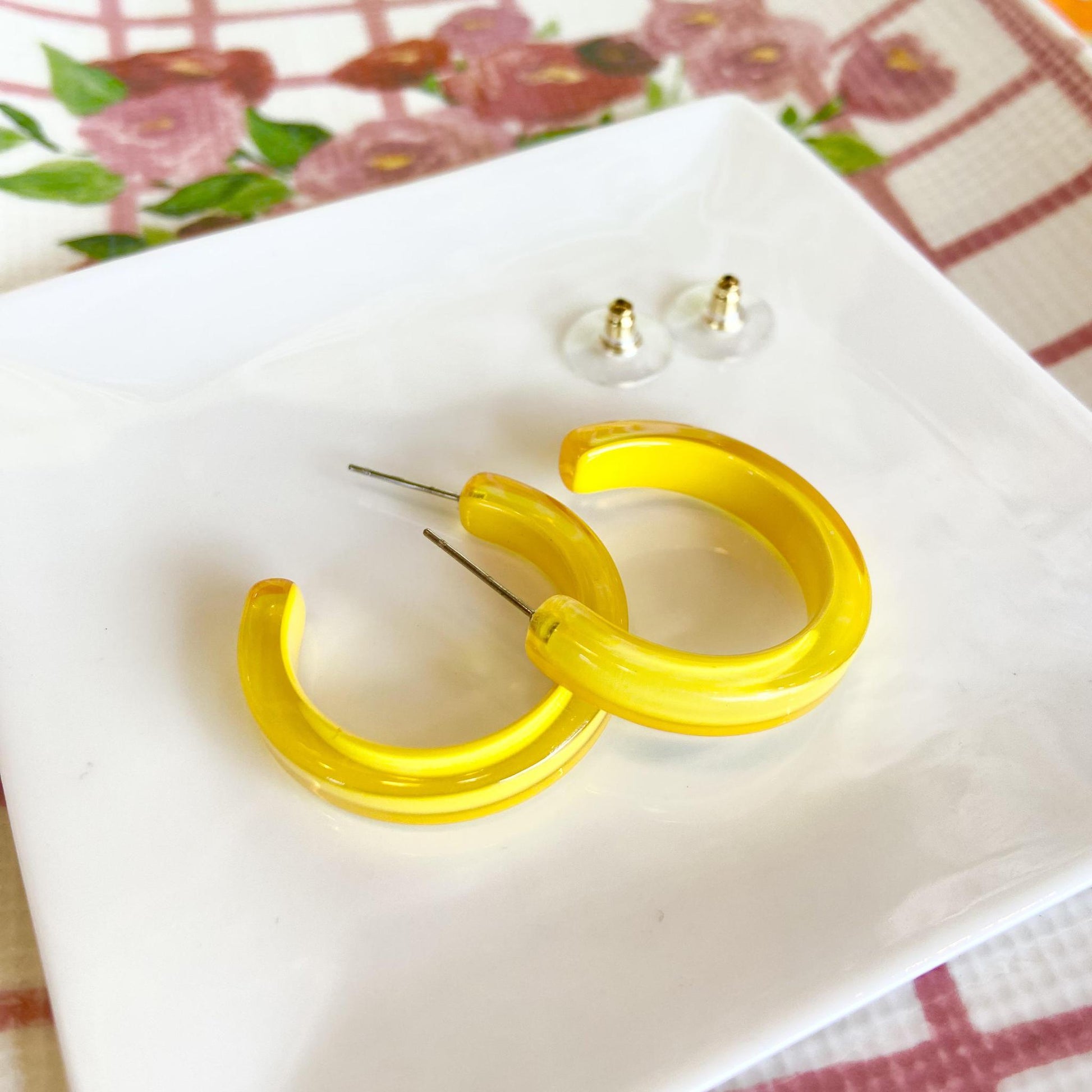 Earrings - Small Hoop - Yellow - Resin