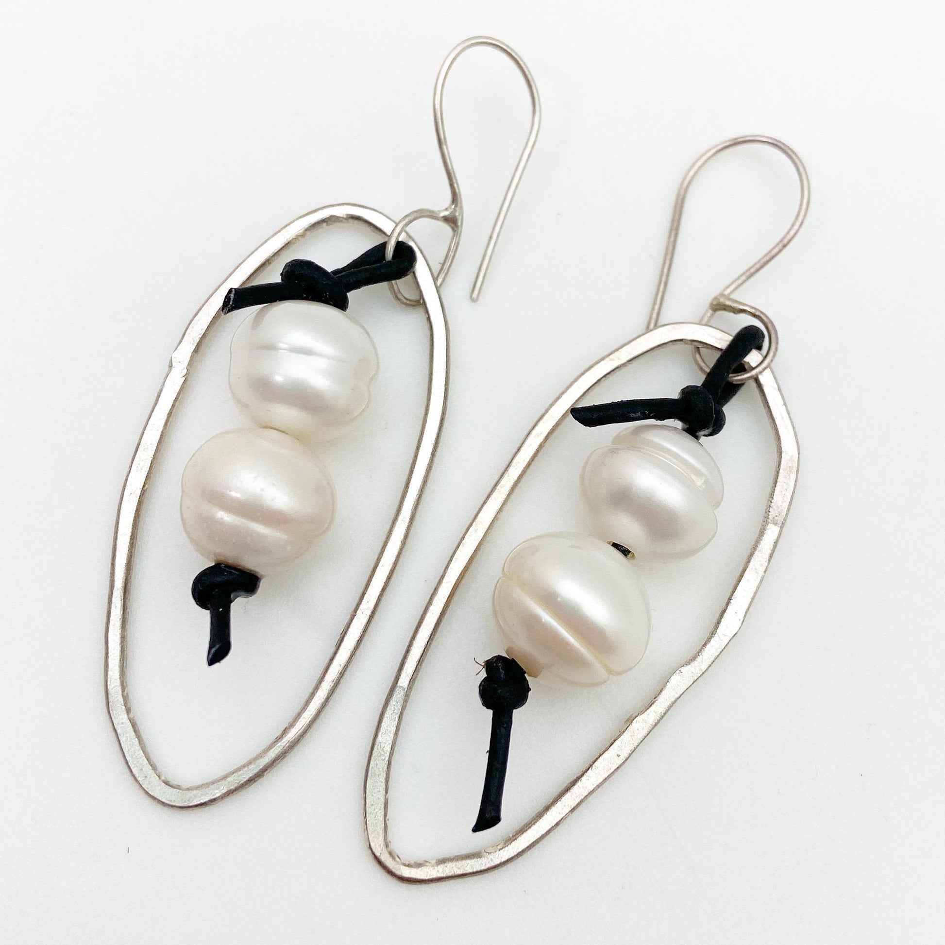 One-of-a-kind natural pearl, leather, and sterling handmade earrings...gorgeous!