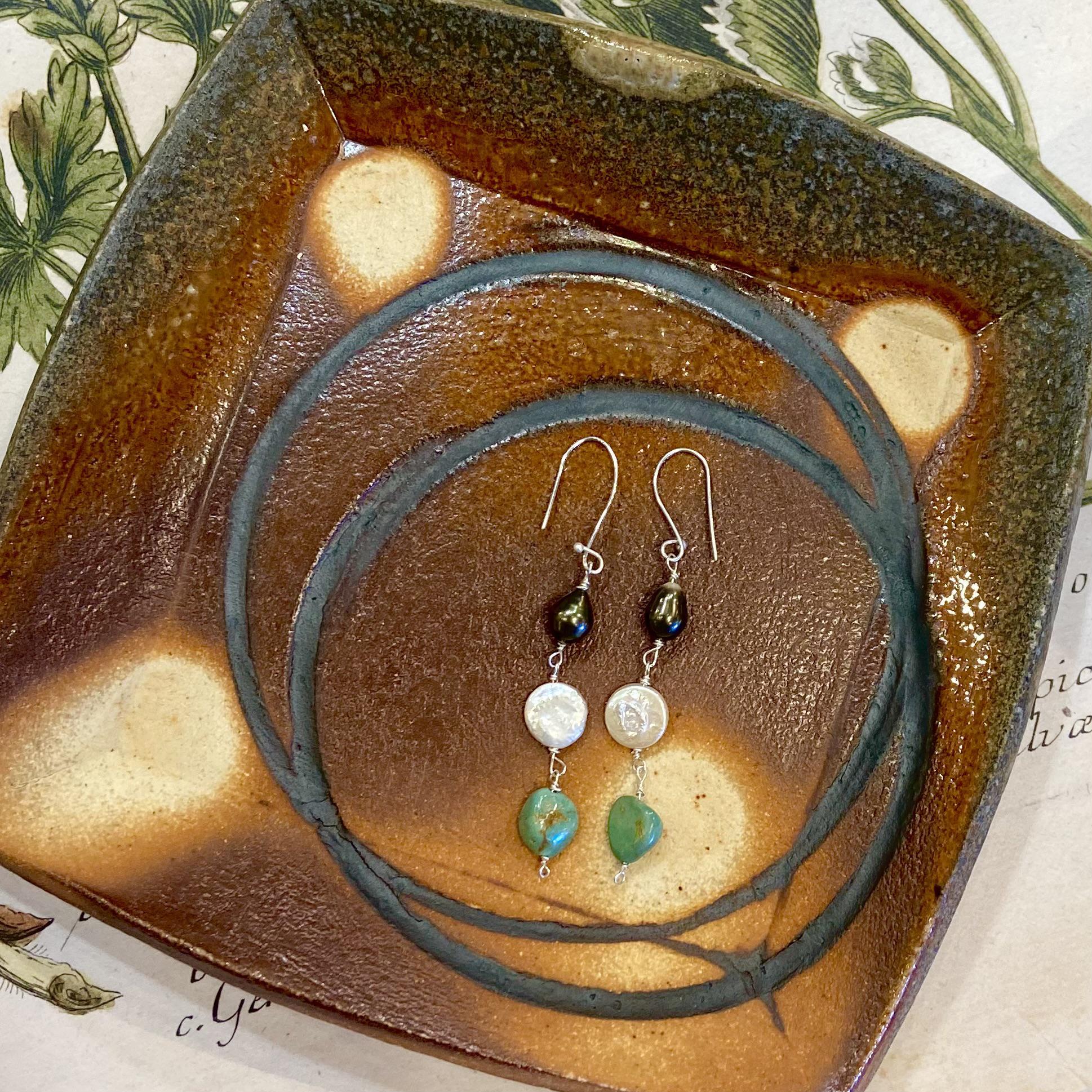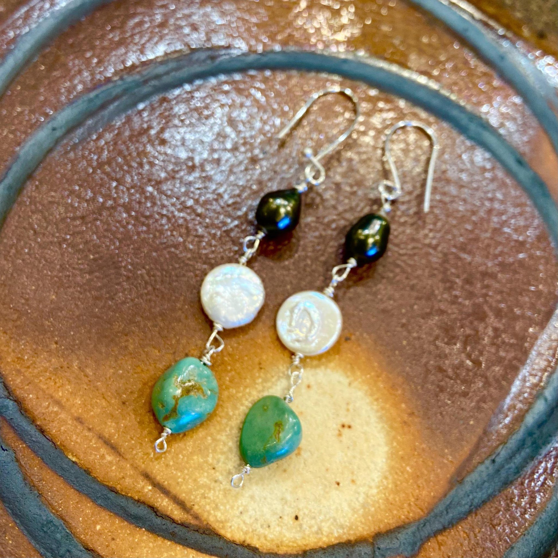 Earrings - Sterling & Pearls & Turquoise - Handmade