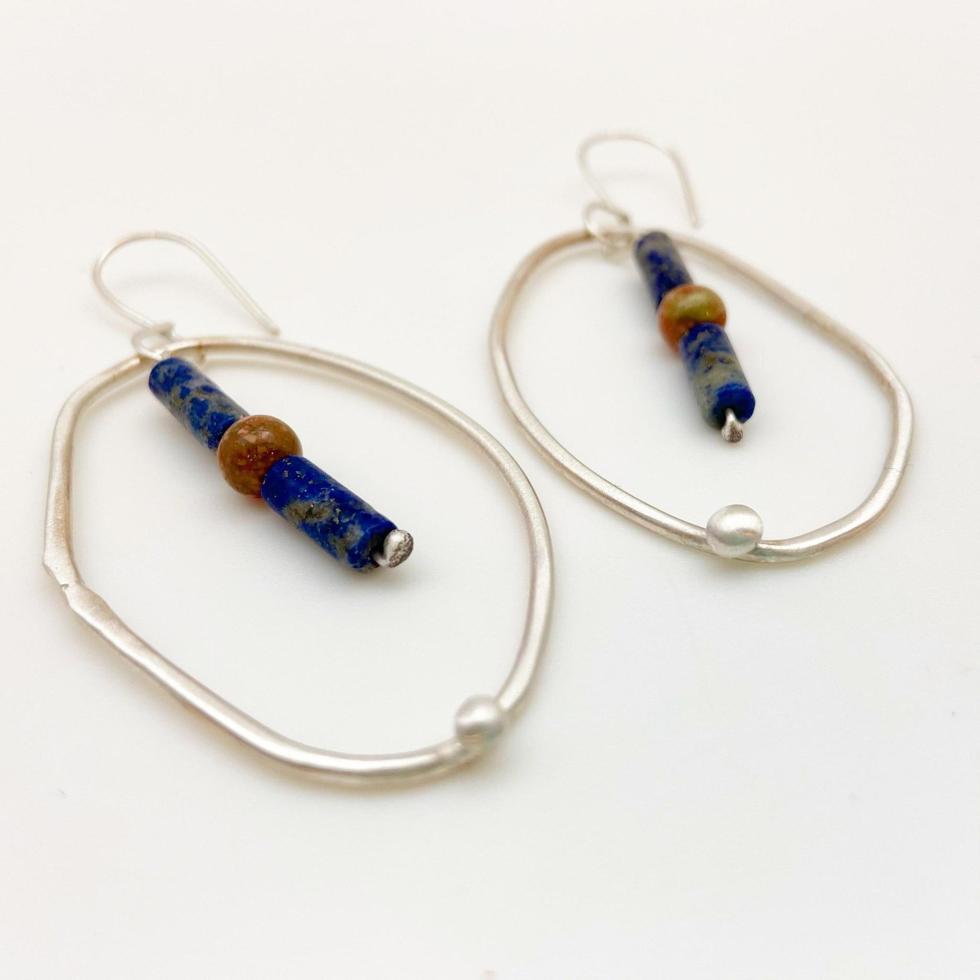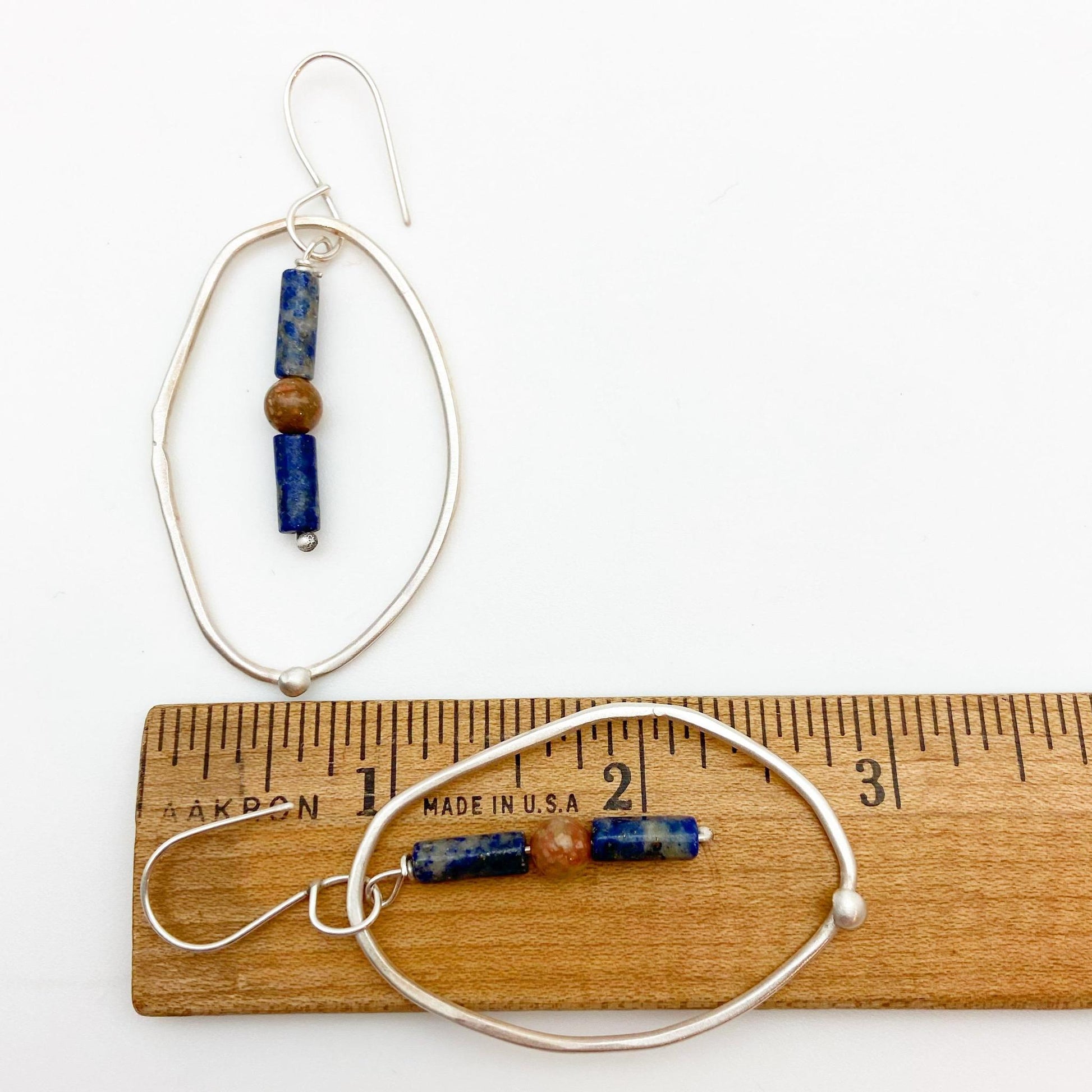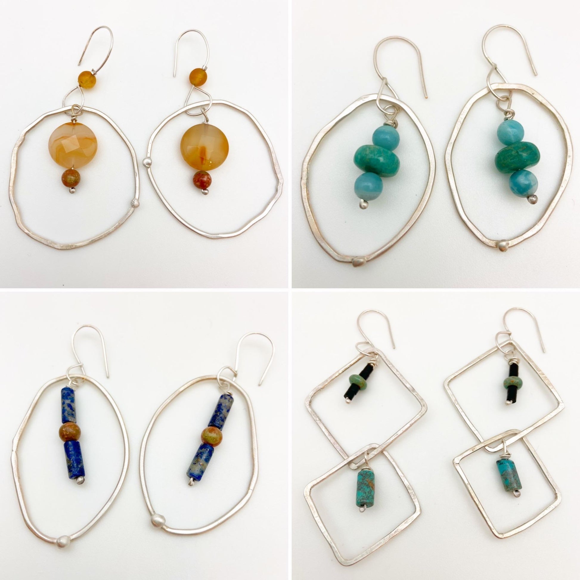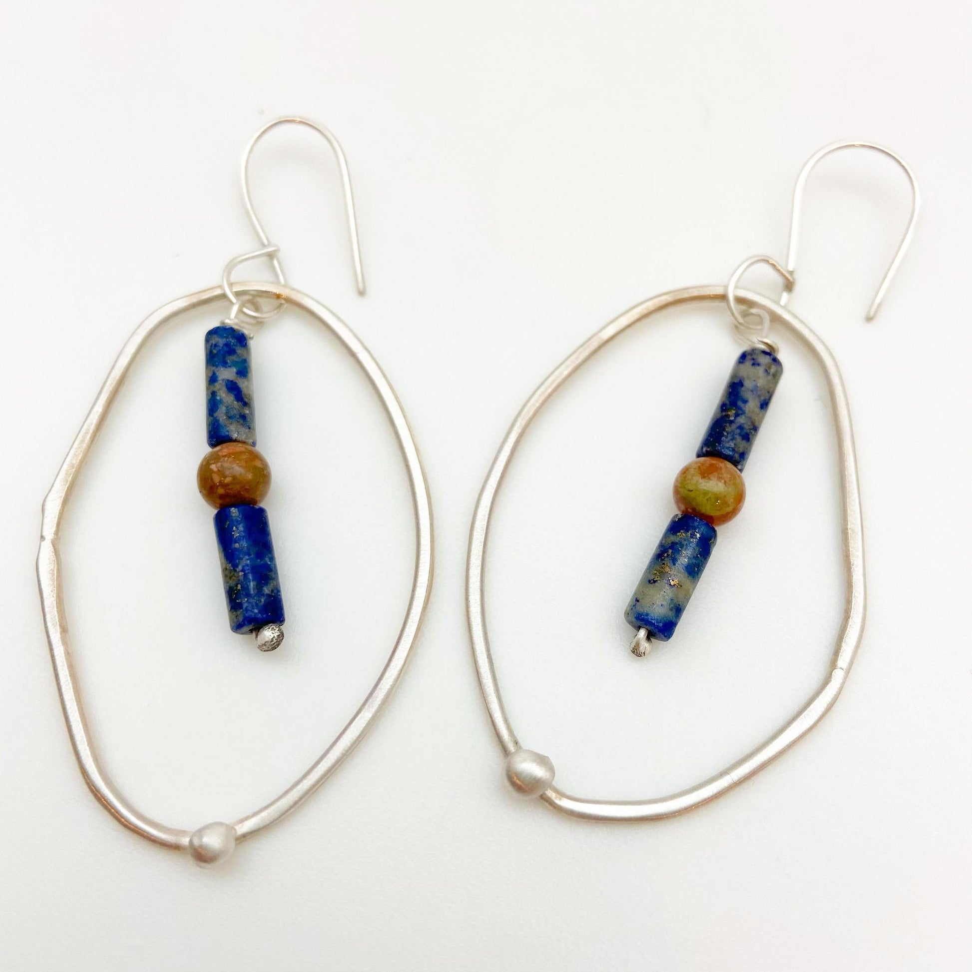 Sterling Earrings - Hoop Dangles with Stones - Handmade