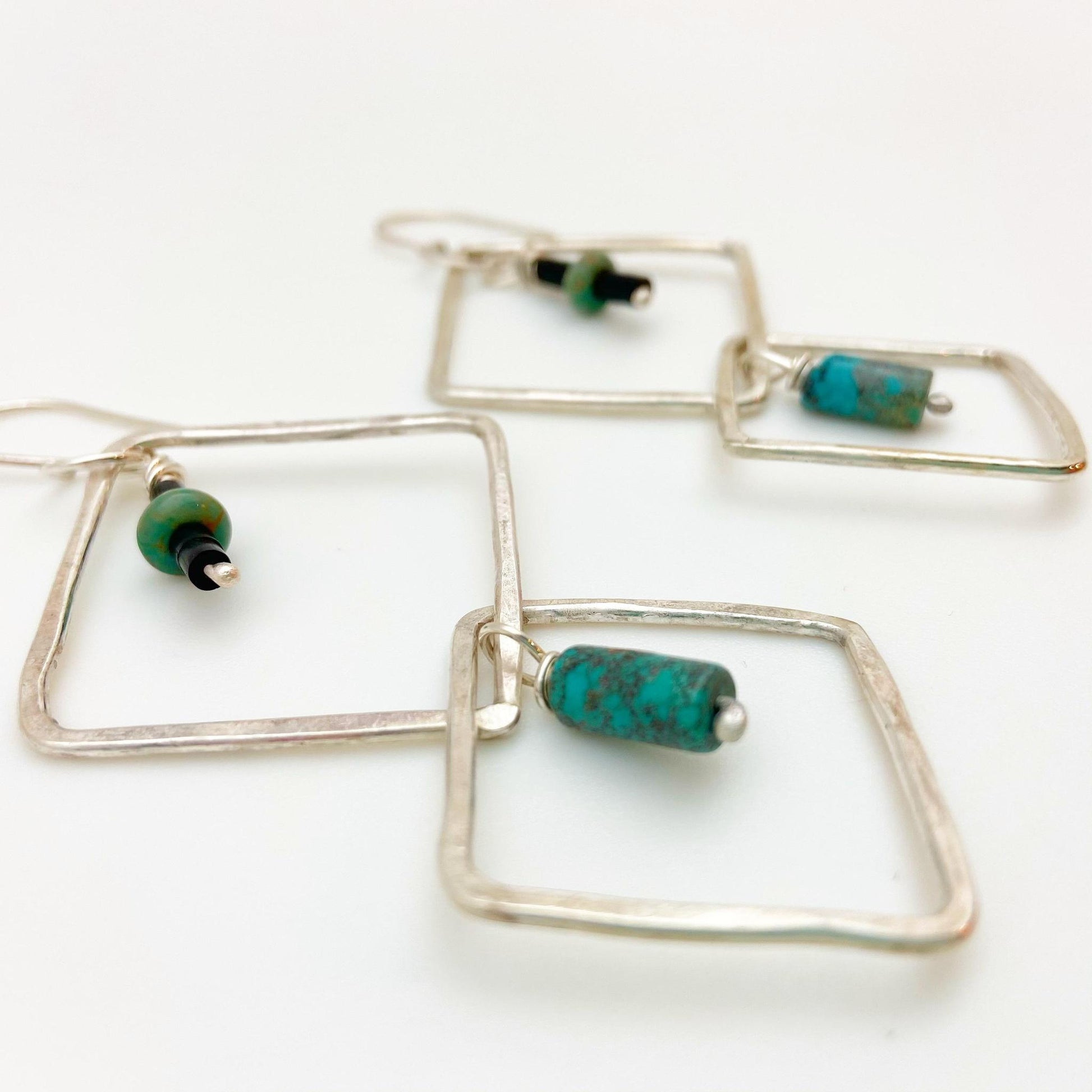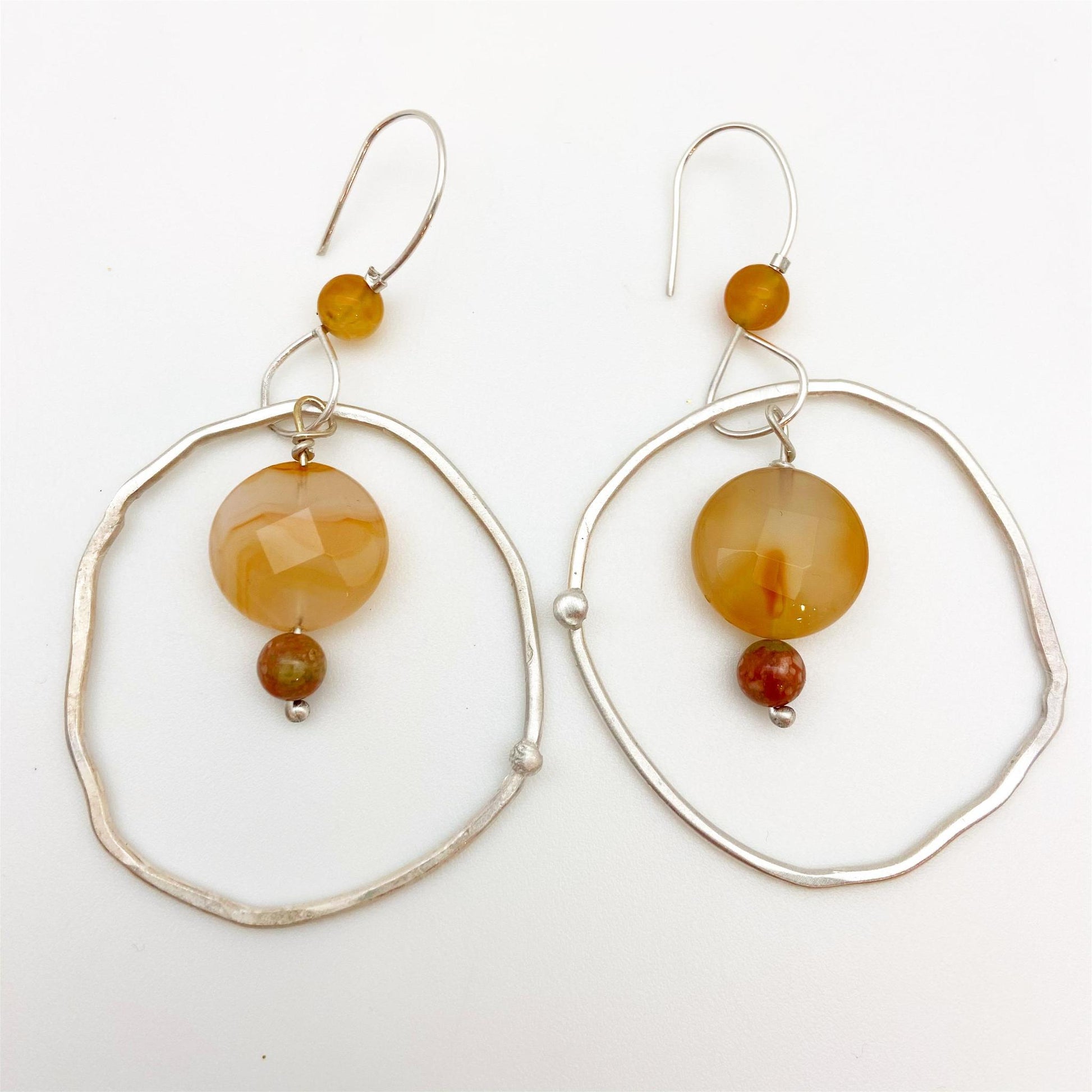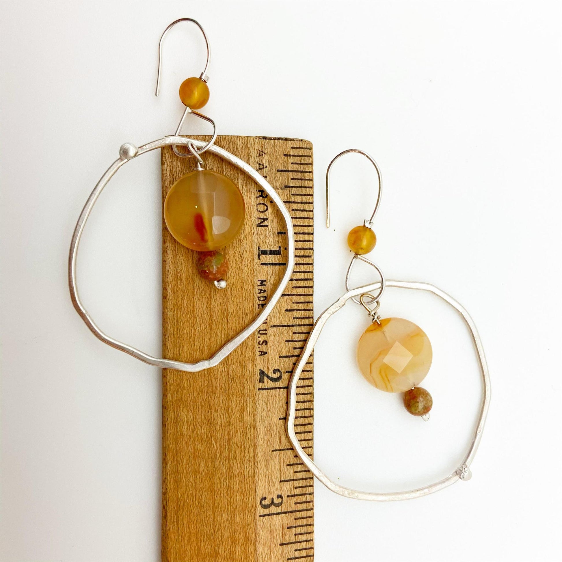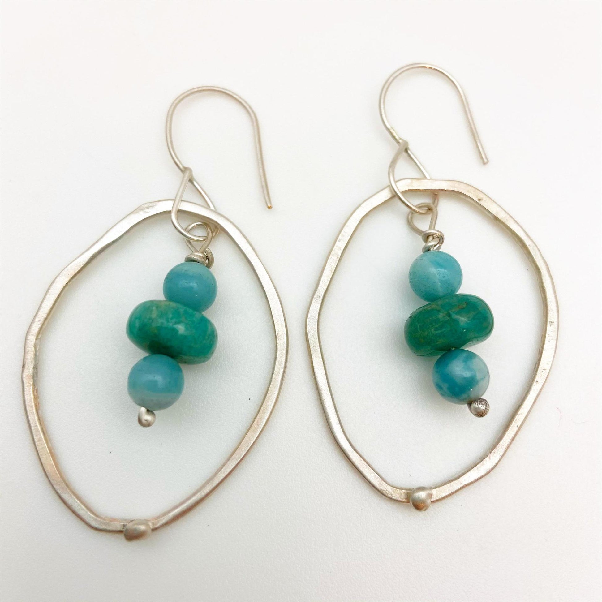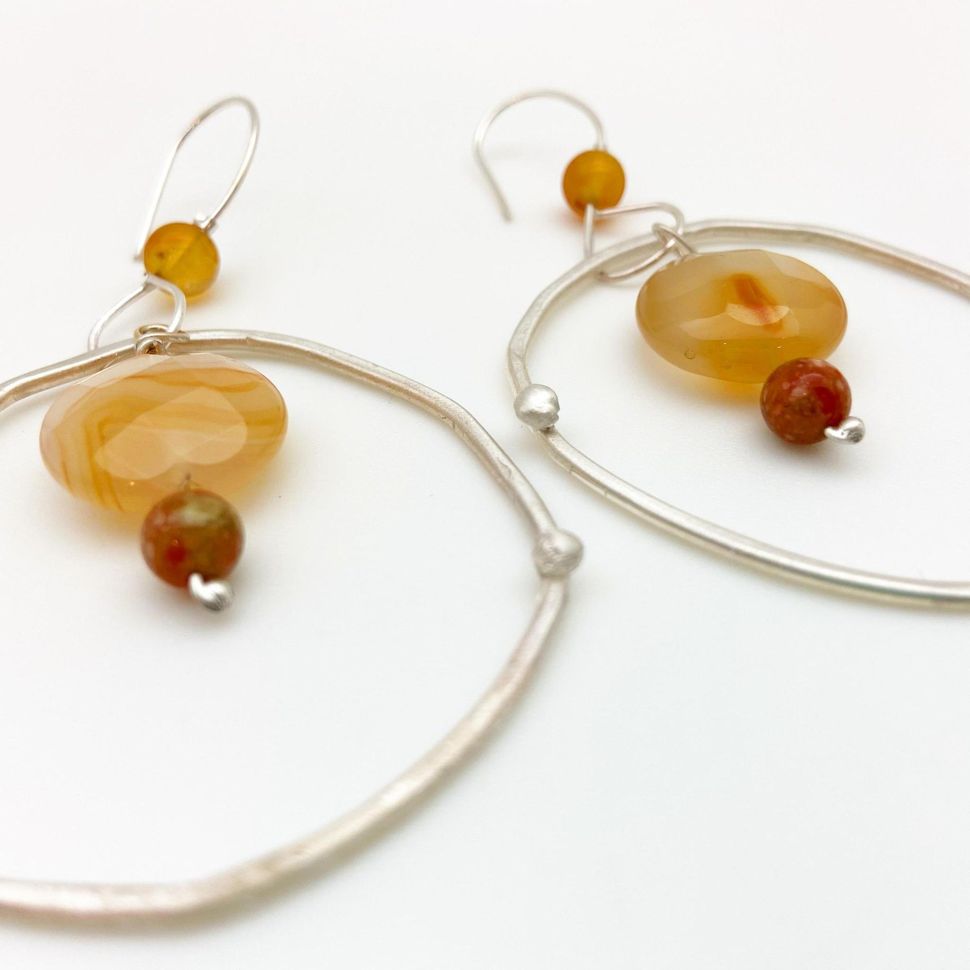 Sterling Earrings - Hoop Dangles with Stones - Handmade