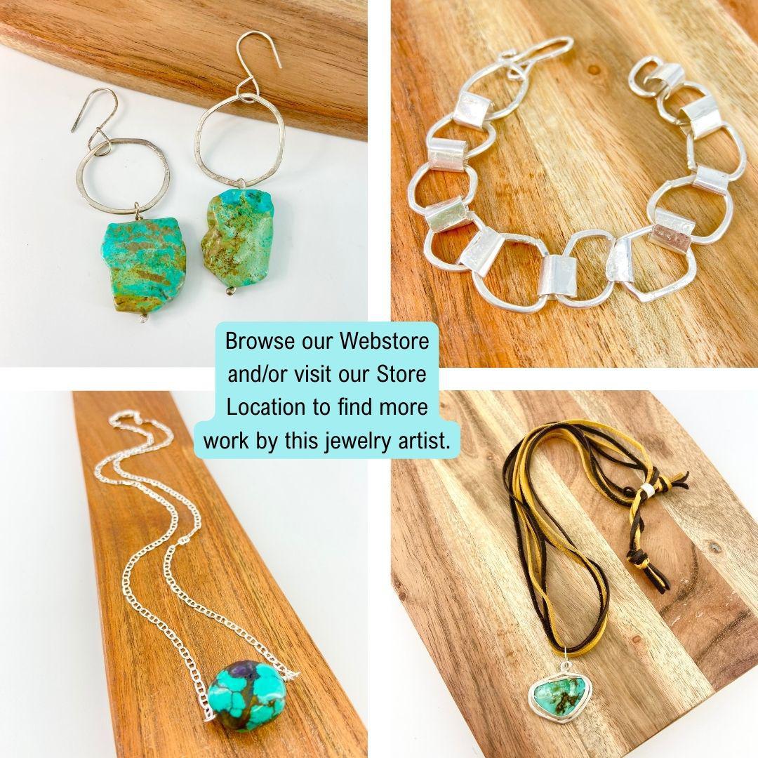 This artist's handiwork is characterized by hand-struck sterling silver. Her work is known for being organic, natural, and has a rough-hewn look and feel. This accomplished Kansas artist creates her sterling, gold, brass, and copper pieces from scratch. That means she smelts, pours, forms, and decorates each piece of metal herself. Each piece starts with the metal in its liquid form. The process can be labor some, but it results in a pure metal that is strikingly rugged, pure, and authentic.