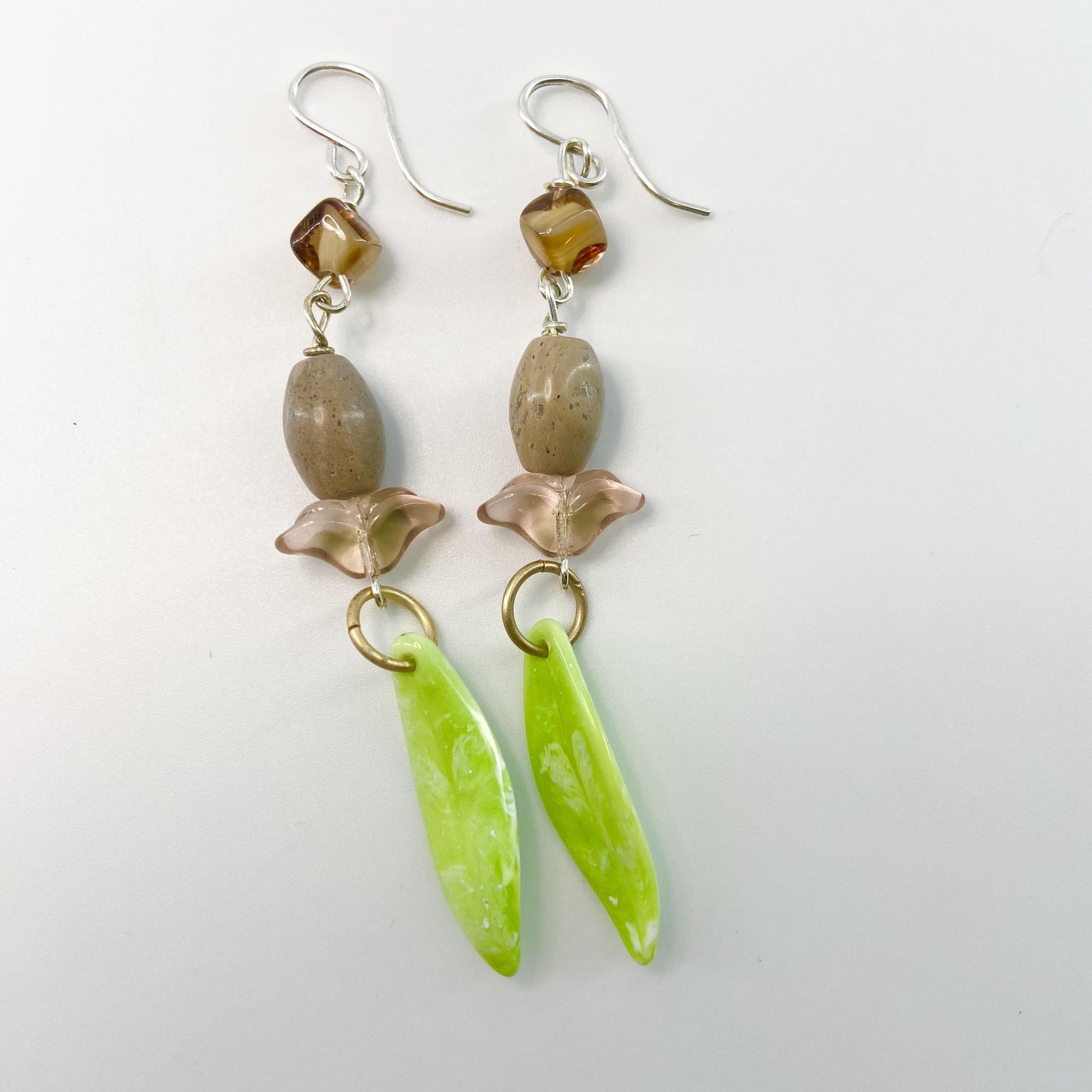 Earrings - Vintage Bead Originals - Green Leaf