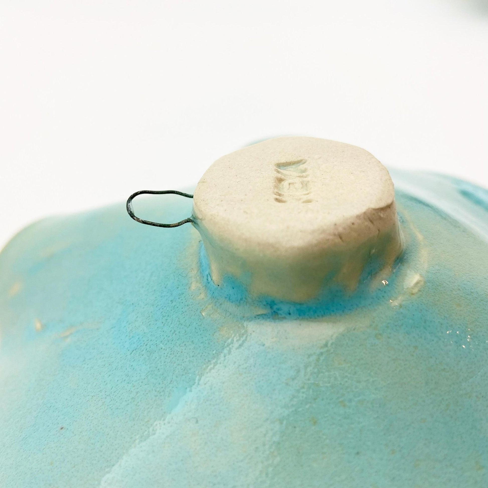 - Footed with metal hanger embedded in the fired ceramic