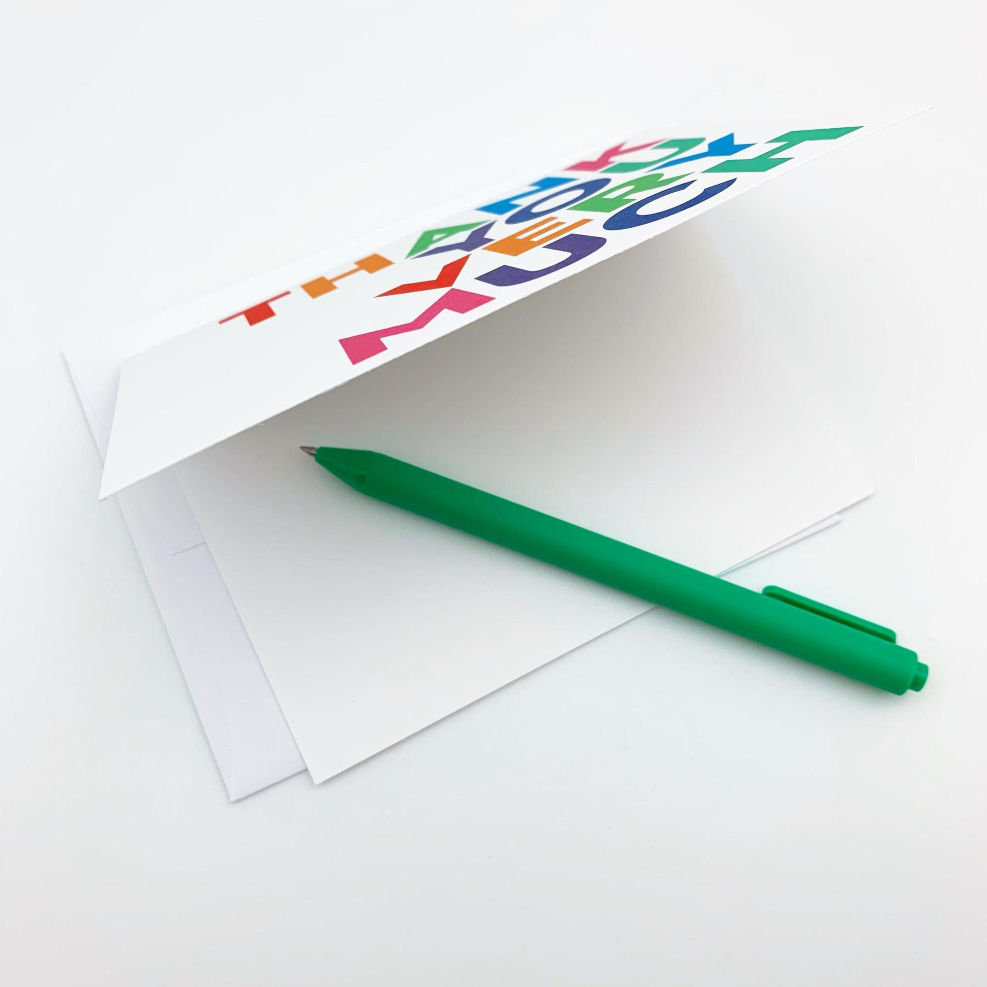 Designed by a Kansas City graphic artist. This collection of colorful, bold, and happy cards and boxed card sets is a customer favorite. Printed in small batches and hand-packed by the artist. The paper stock is a thick, smooth, matte finish for easy handwriting your personal message. The finished look is modern, but not stuffy (well..."stuff"y in a good way maybe :)