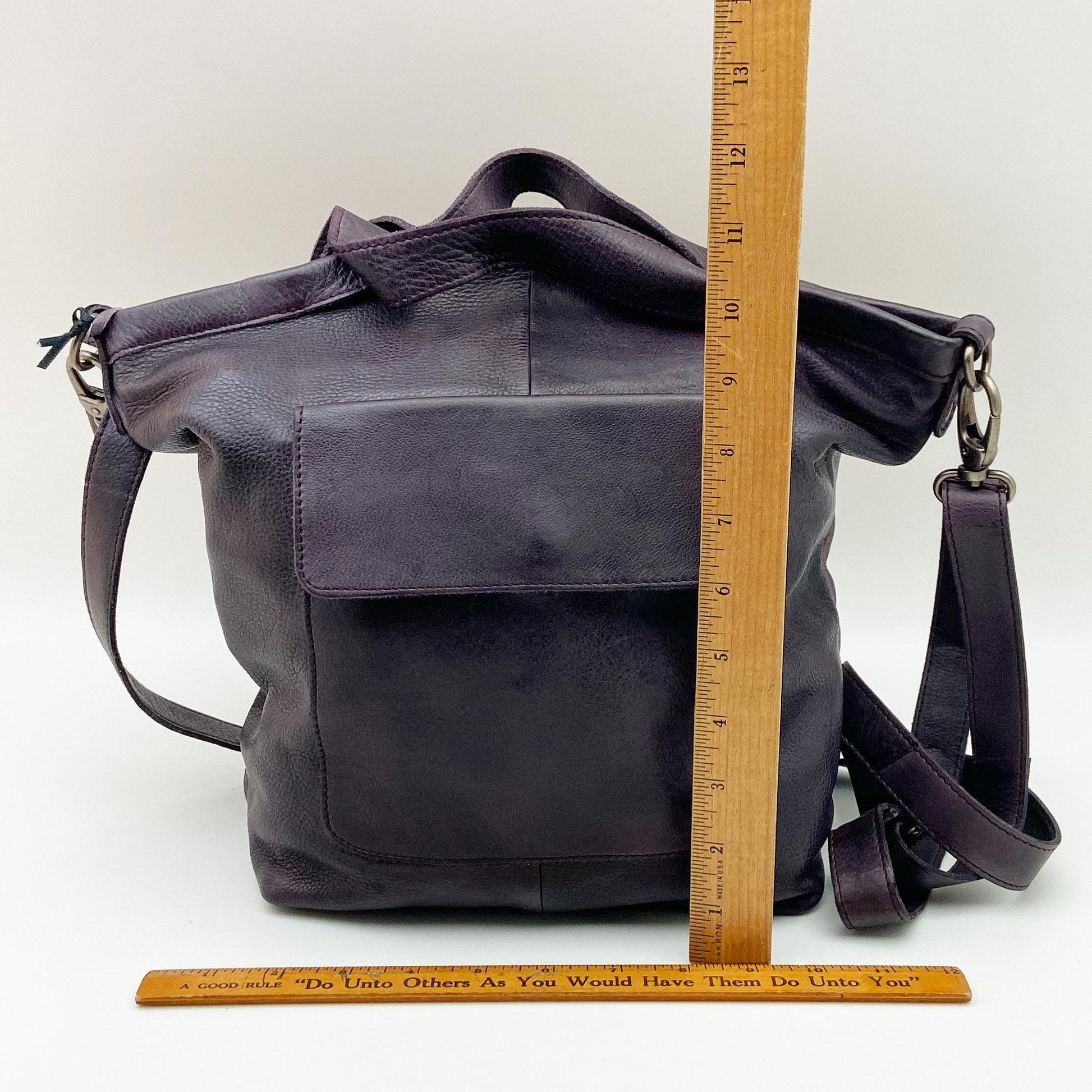 This purse/handbag makes a crossbody, shoulder bag, and/or handled handbag. These versatile leather handbags are swoon-worthy. They are handmade from supple, hand-dyed leather. These bags are irresistible in the store. They are "broken in" from day one. These bags are "feature rich" with many pockets and handy zippers.