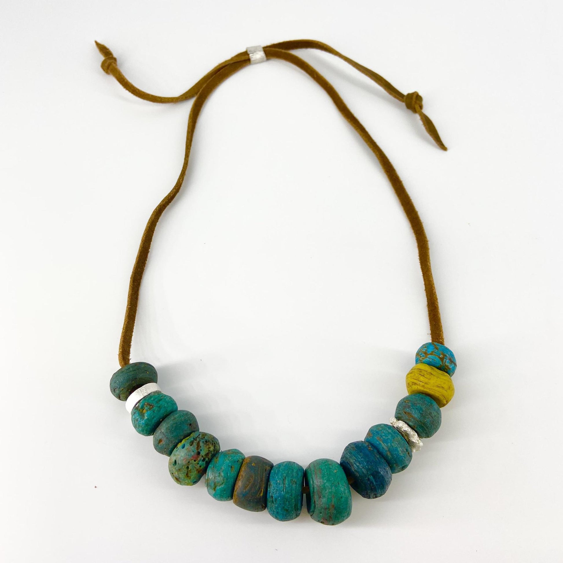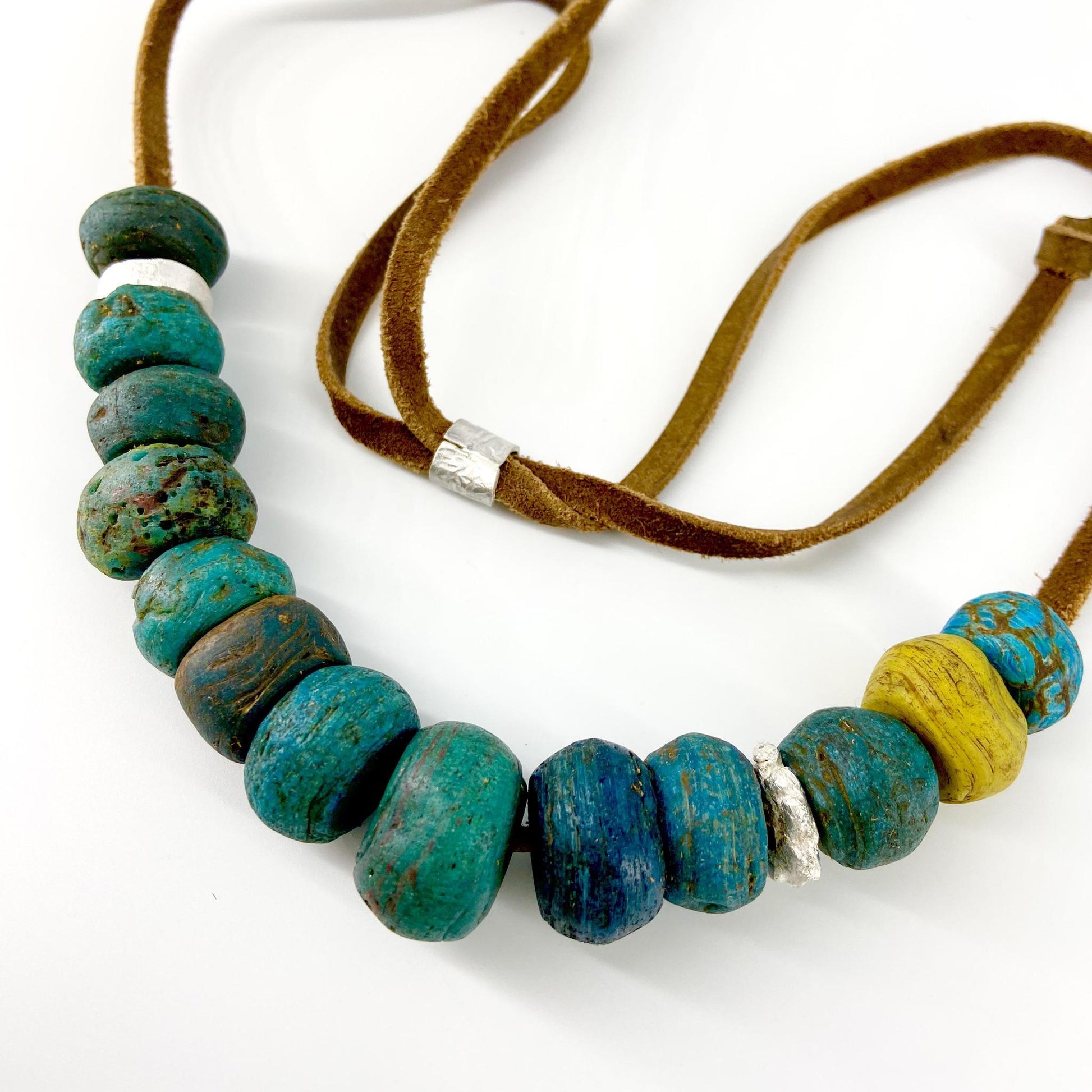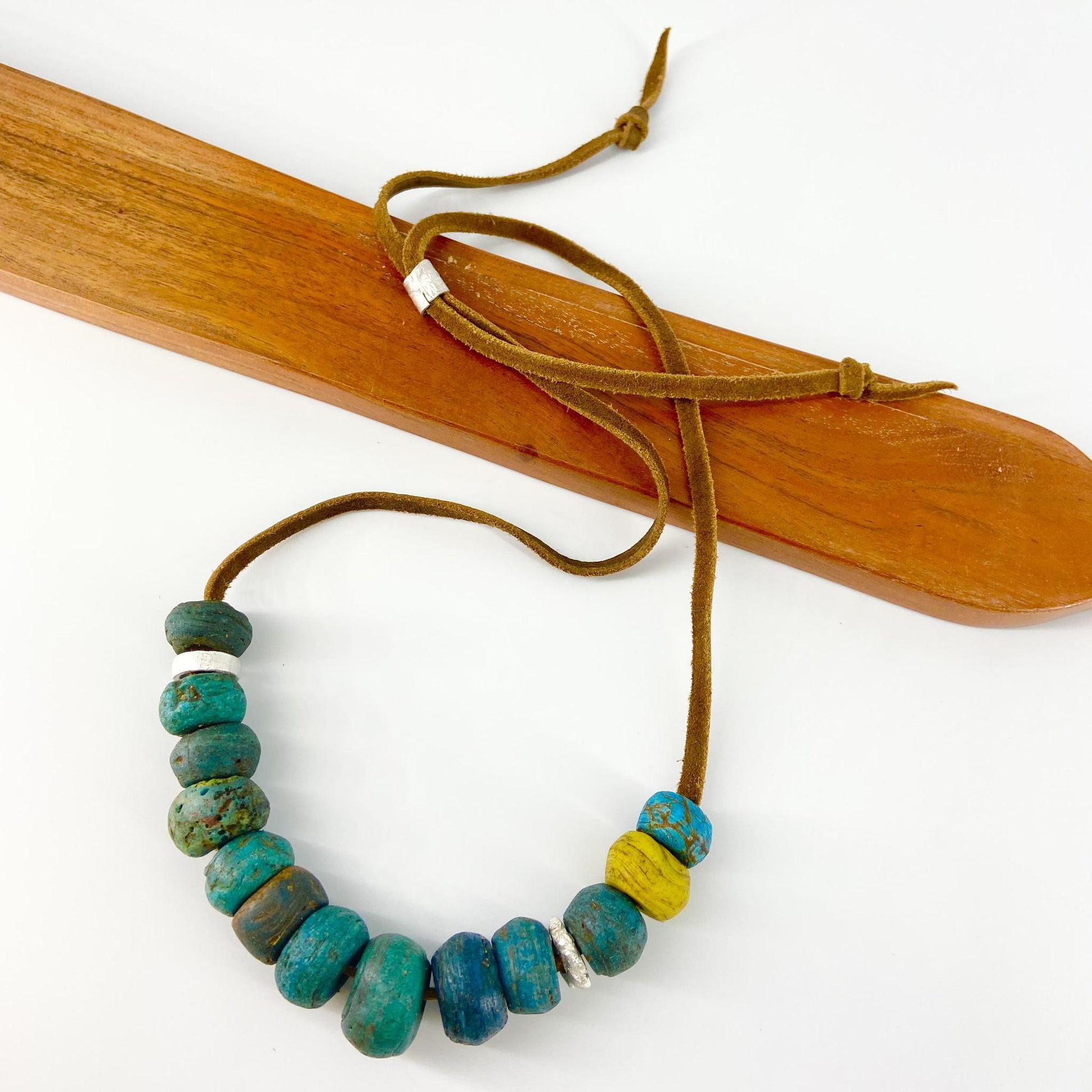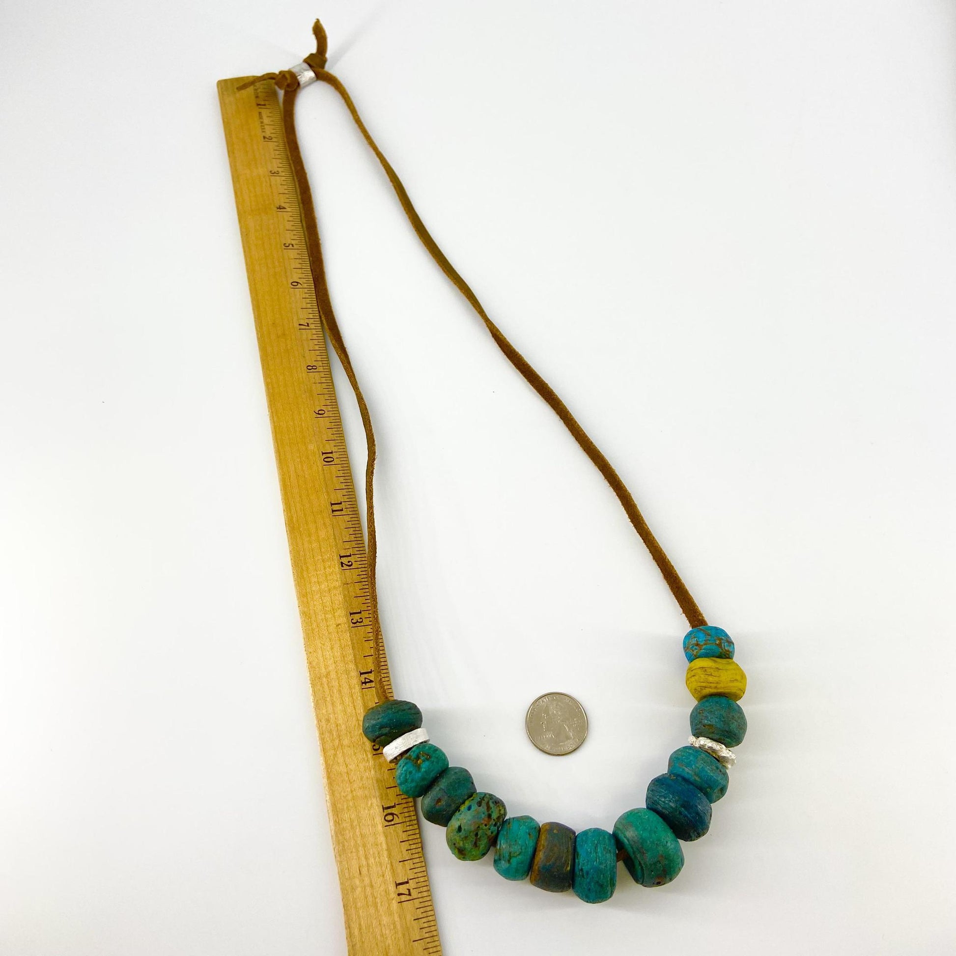 Necklace - 13 Hebron Glass Beads & Sterling Beads on Leather