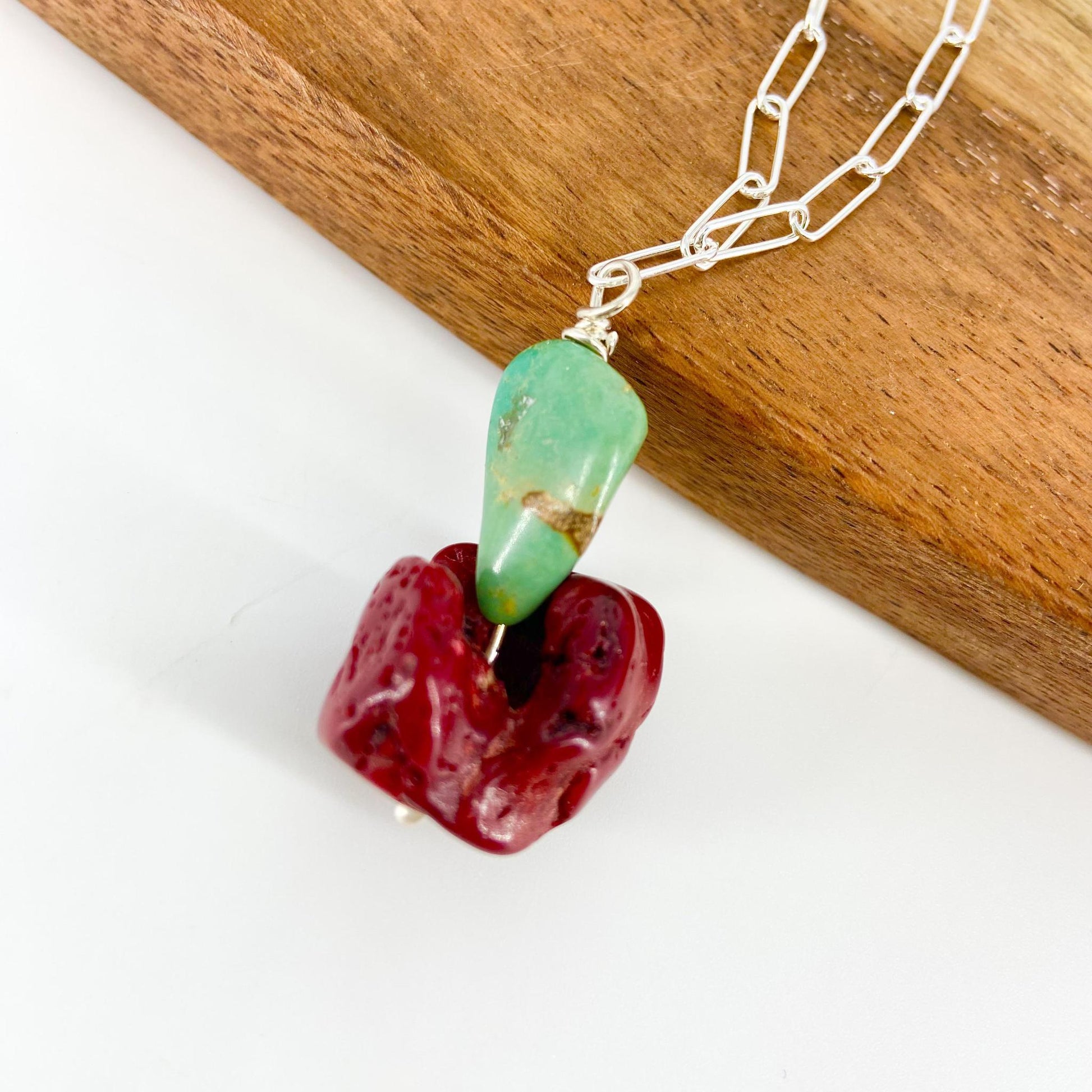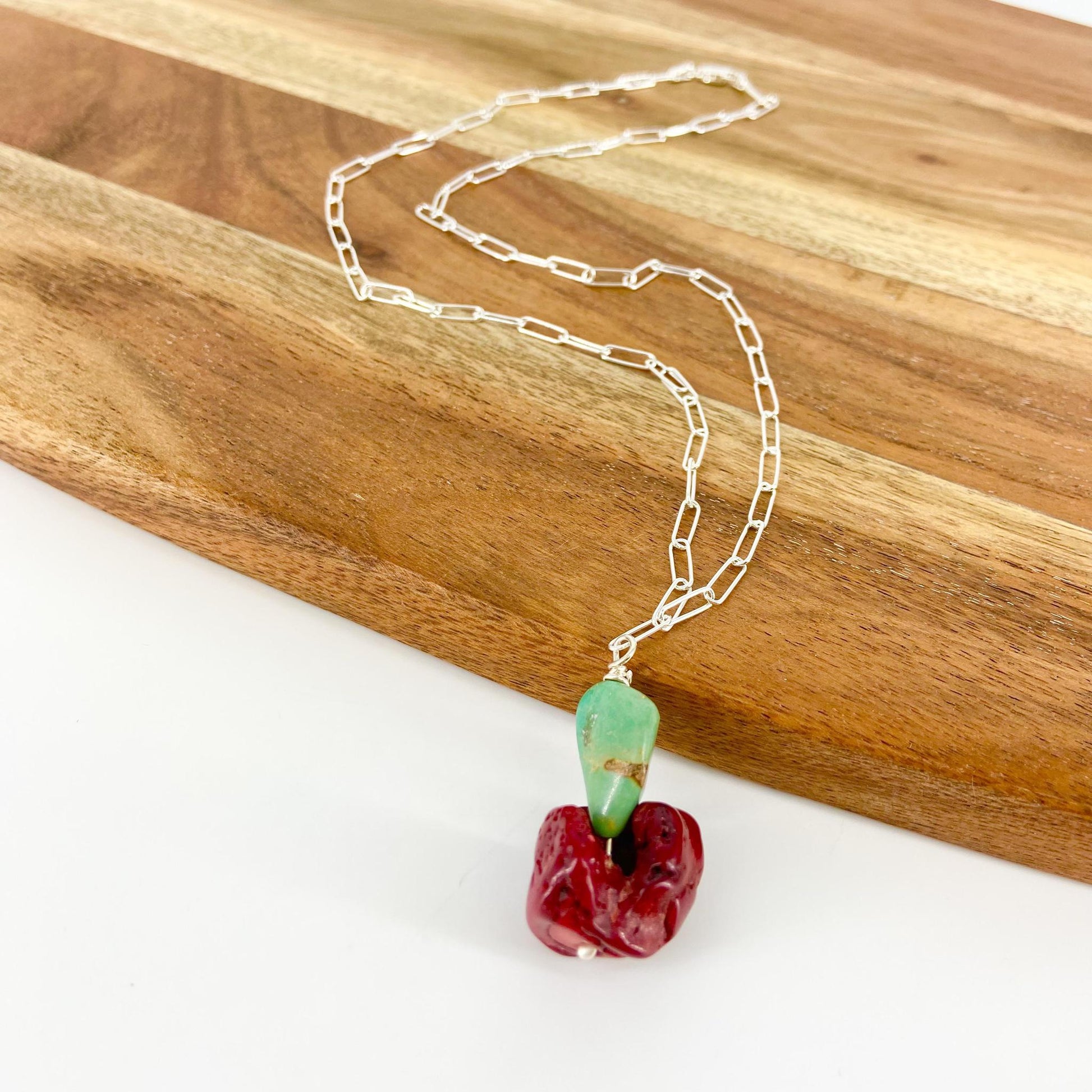 Necklace - Coral and Turquoise on Sterling Chain