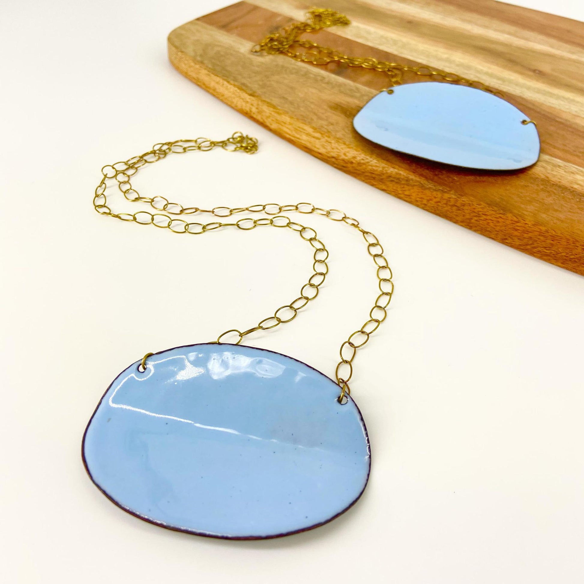 This collection of original jewelry is inspired by Earth, nature, and early American jewelry design. The pieces feature brass, kiln-fired enamel, beads, and leather in different combinations. Studio artists repeat some designs, but no two pieces are exactly the same. Each one is handmade by artisans under the watchful eye of the jewelry artist and designer.