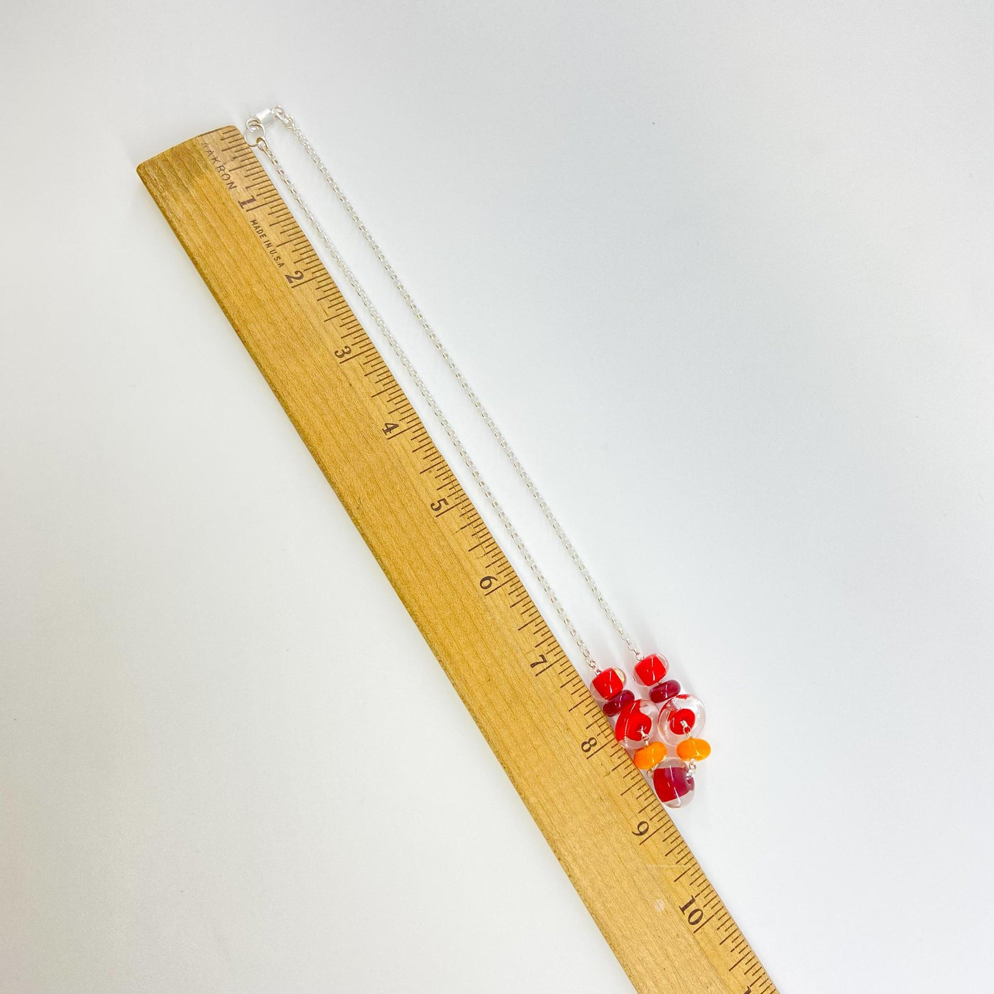 Handmade in Kansas City by an incredible glass bead artist. Each glass bead is handmade in our artist's home studio. She then combines her original beads with intricate sterling silver findings and clasps, creating a true one-of-a-kind necklace. The chain is made of fine sterling silver.