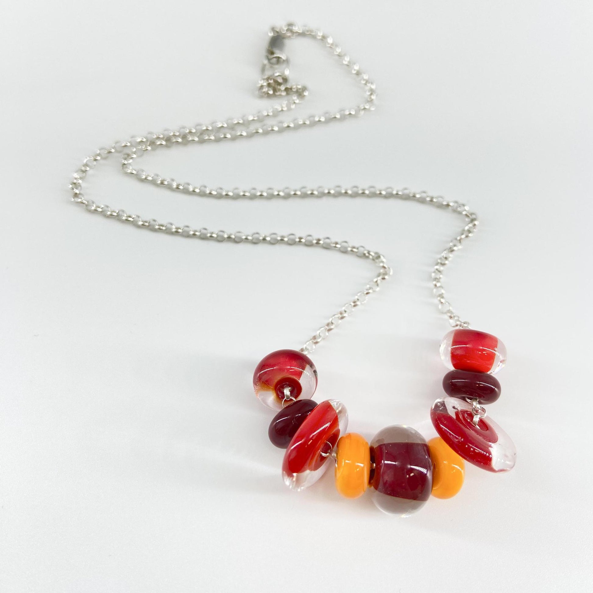 Necklace - Glass "Lifesaver" Beads - KC Chiefs-Inpired - Handmade Glass