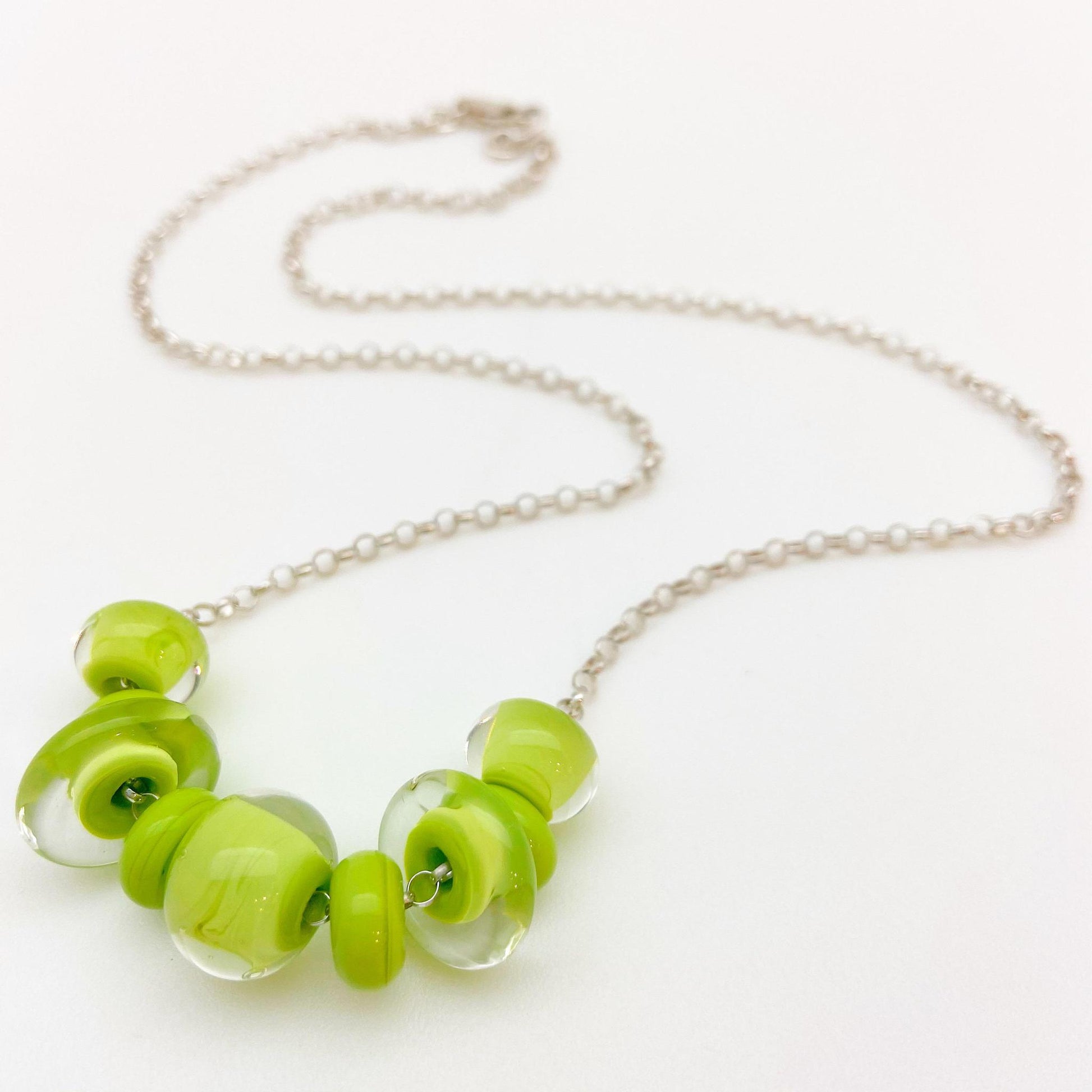 Necklace - Glass "Lifesaver" Beads - Lime Green