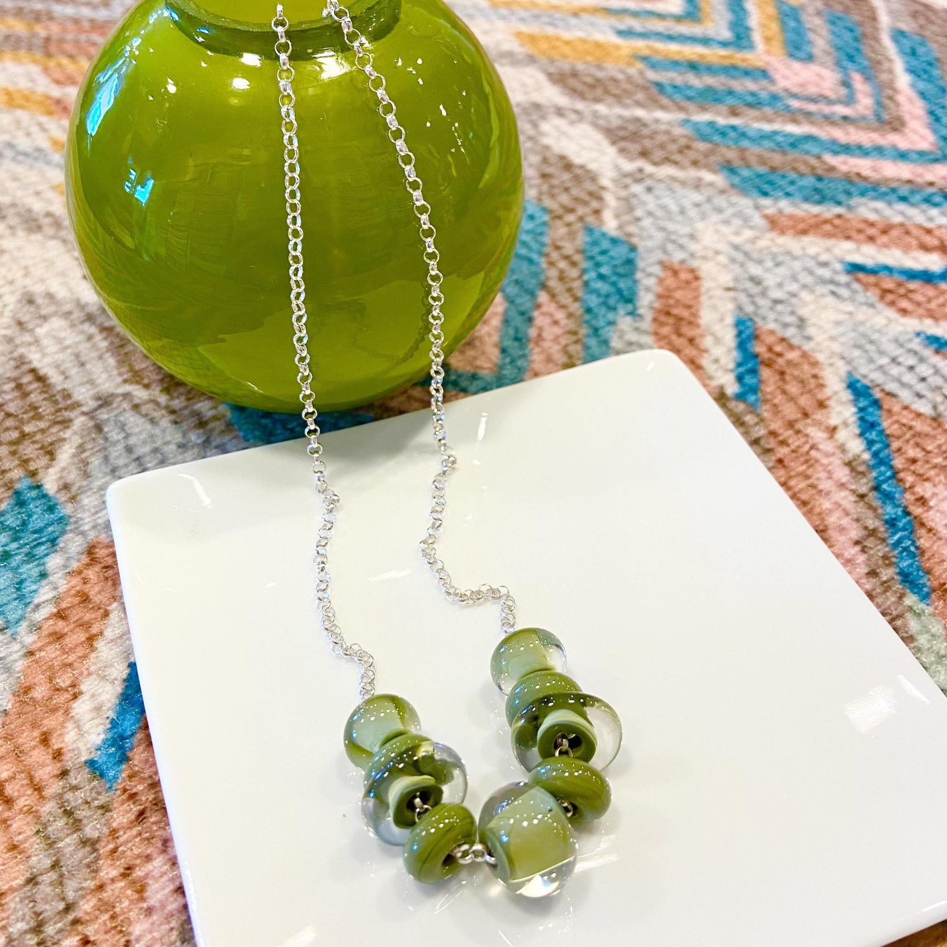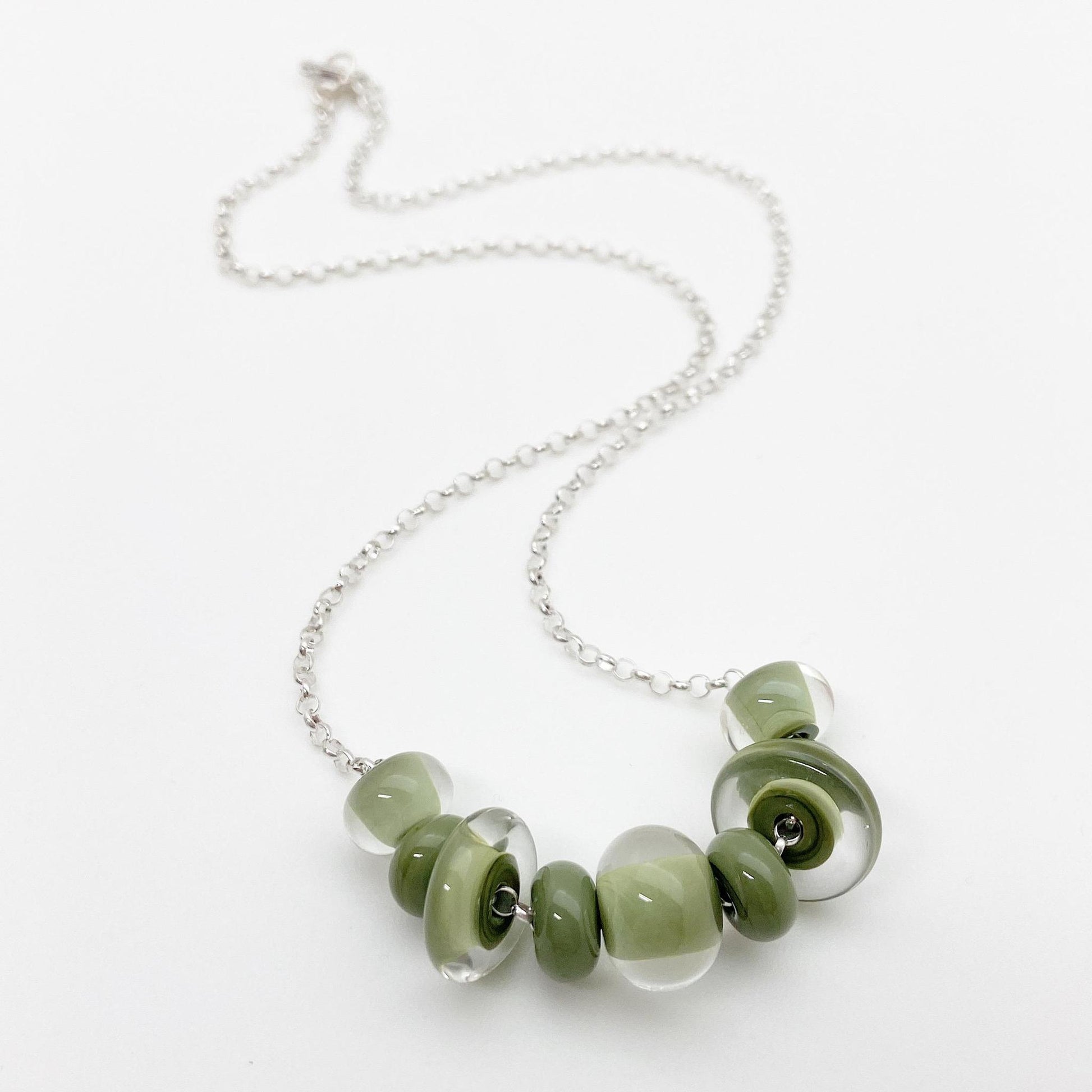 Necklace - Glass "Lifesaver" Beads - Sage Green