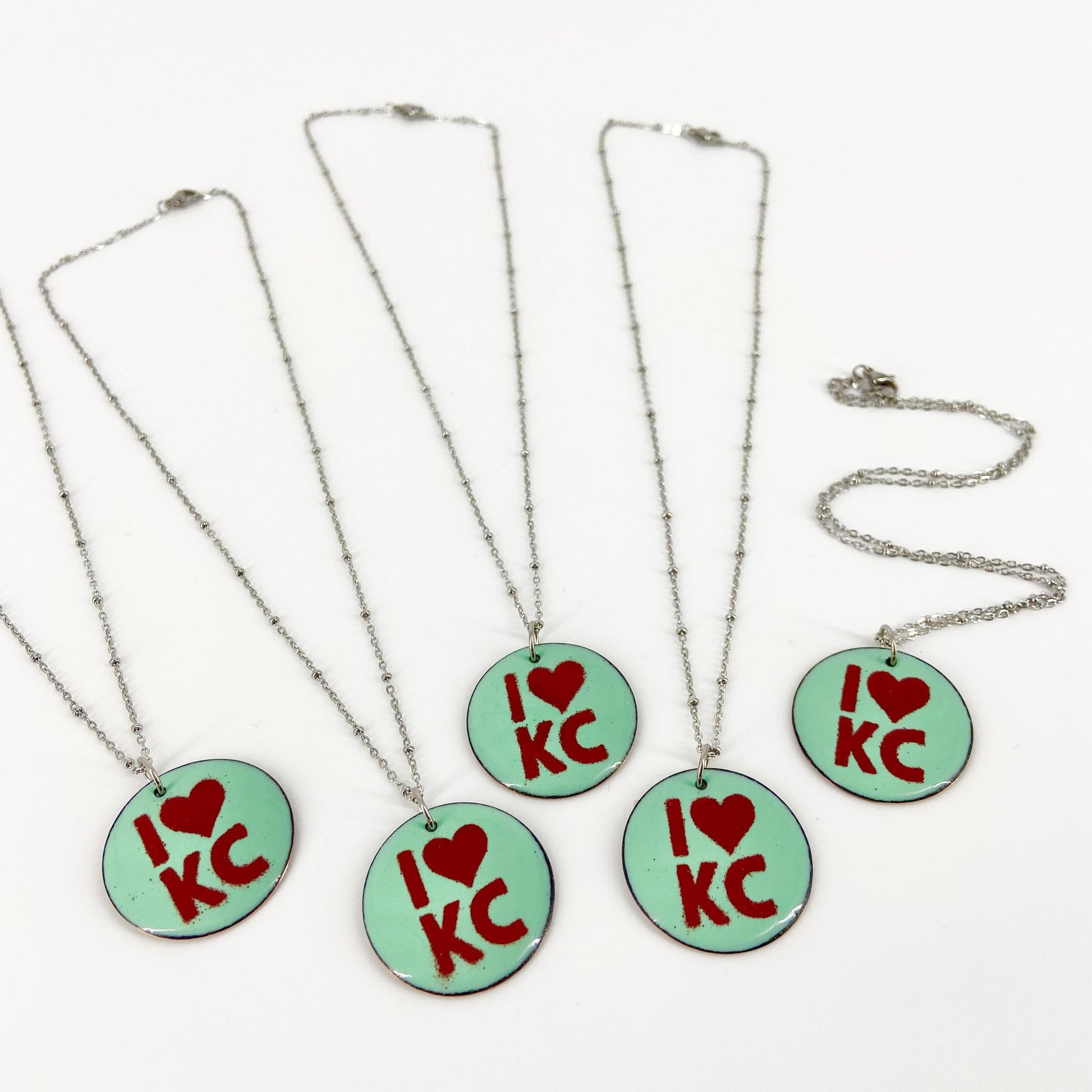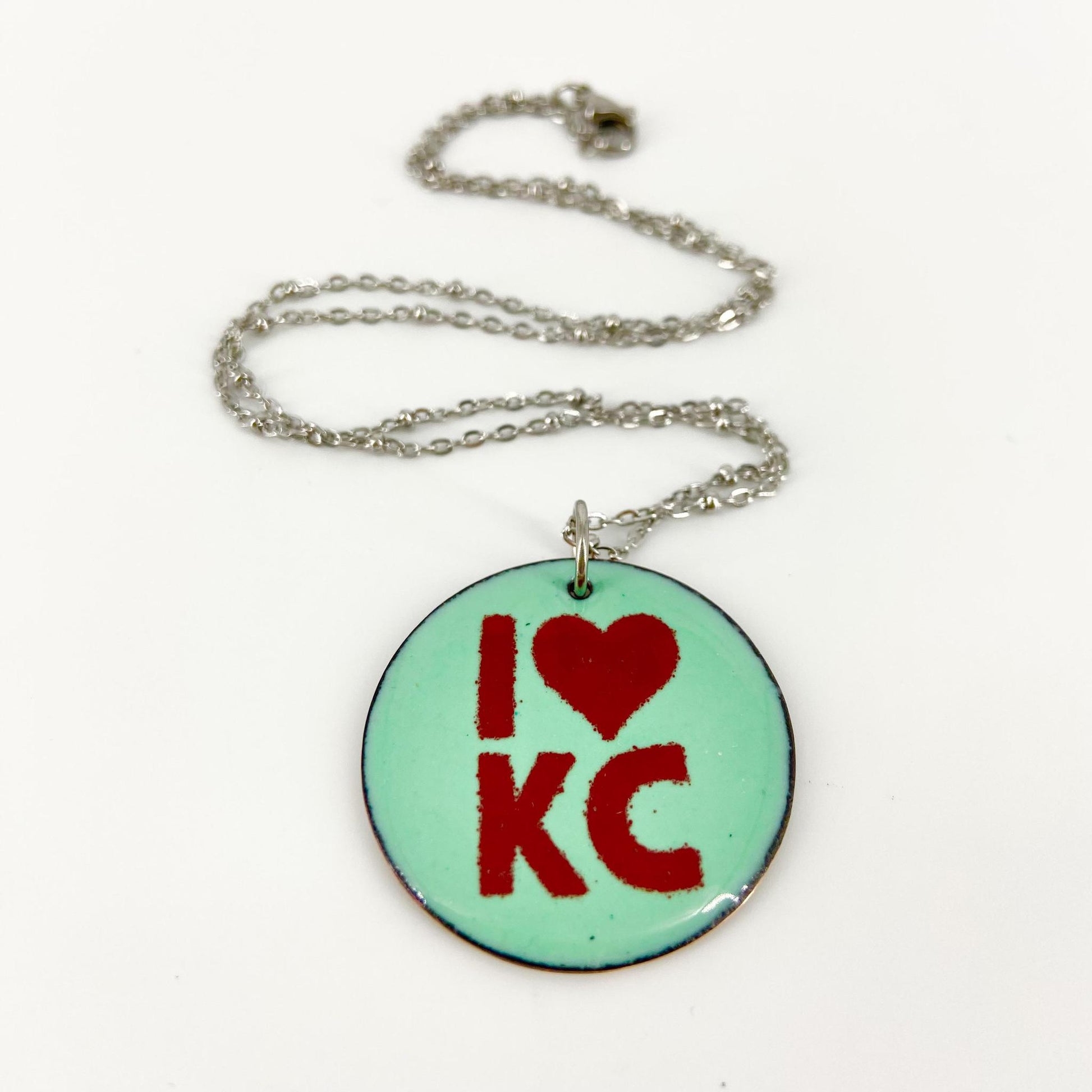 Necklace - I Heart KC - Enamel on Copper - Red/Turquoise