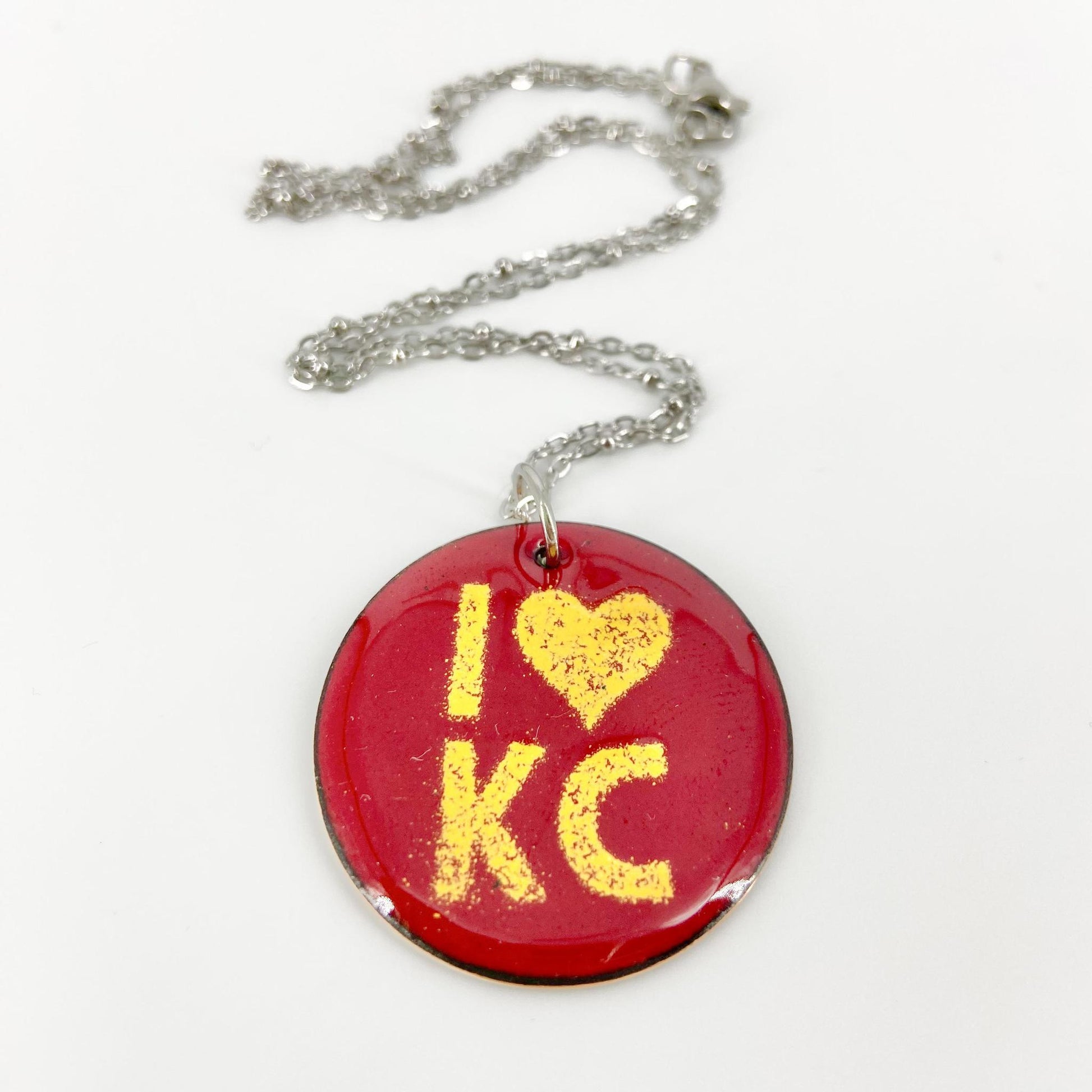 Necklace - I Heart KC - Enamel on Copper - Red/Yellow