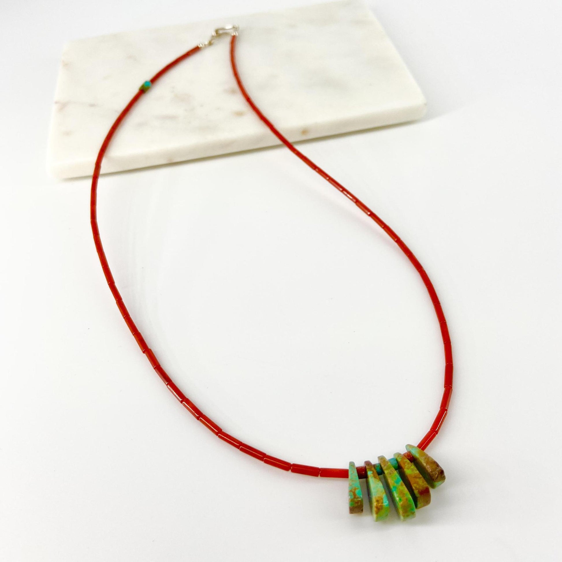 Necklace - Natural Coral & Turquoise Teardrops