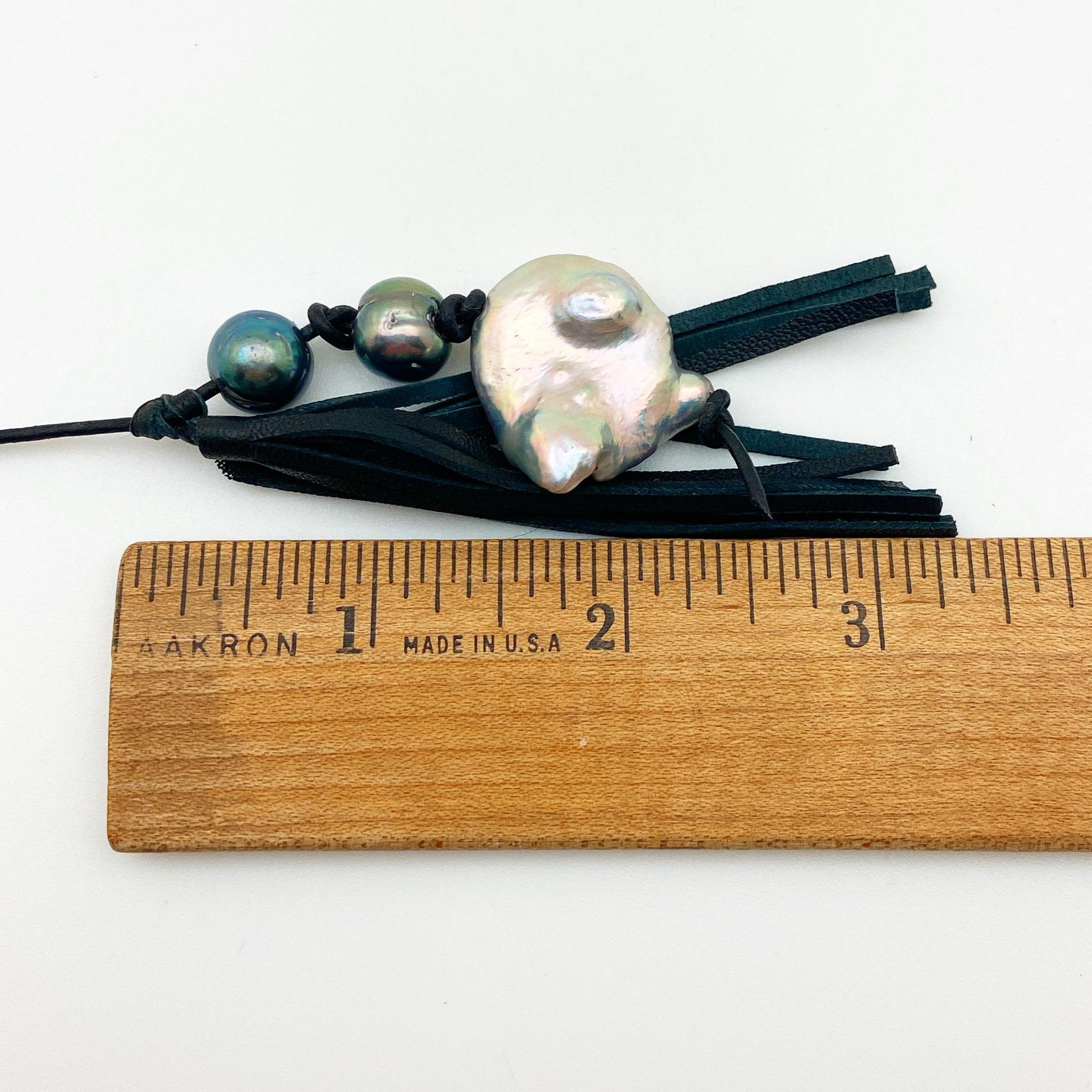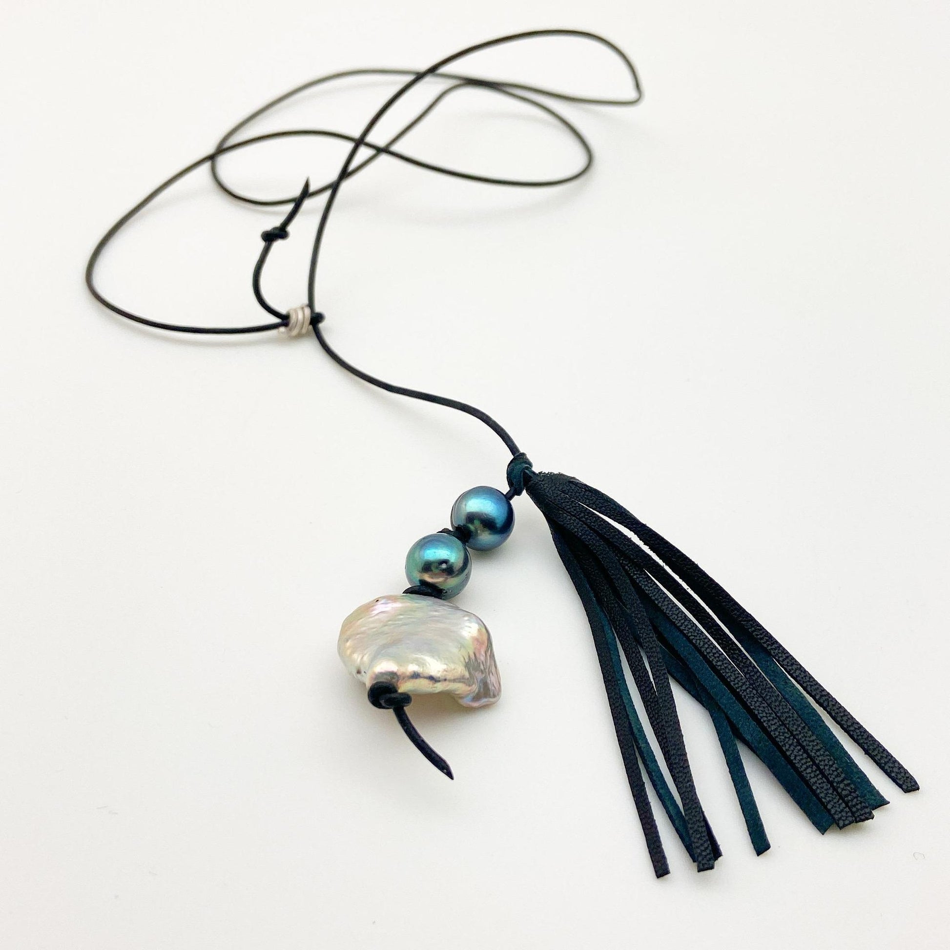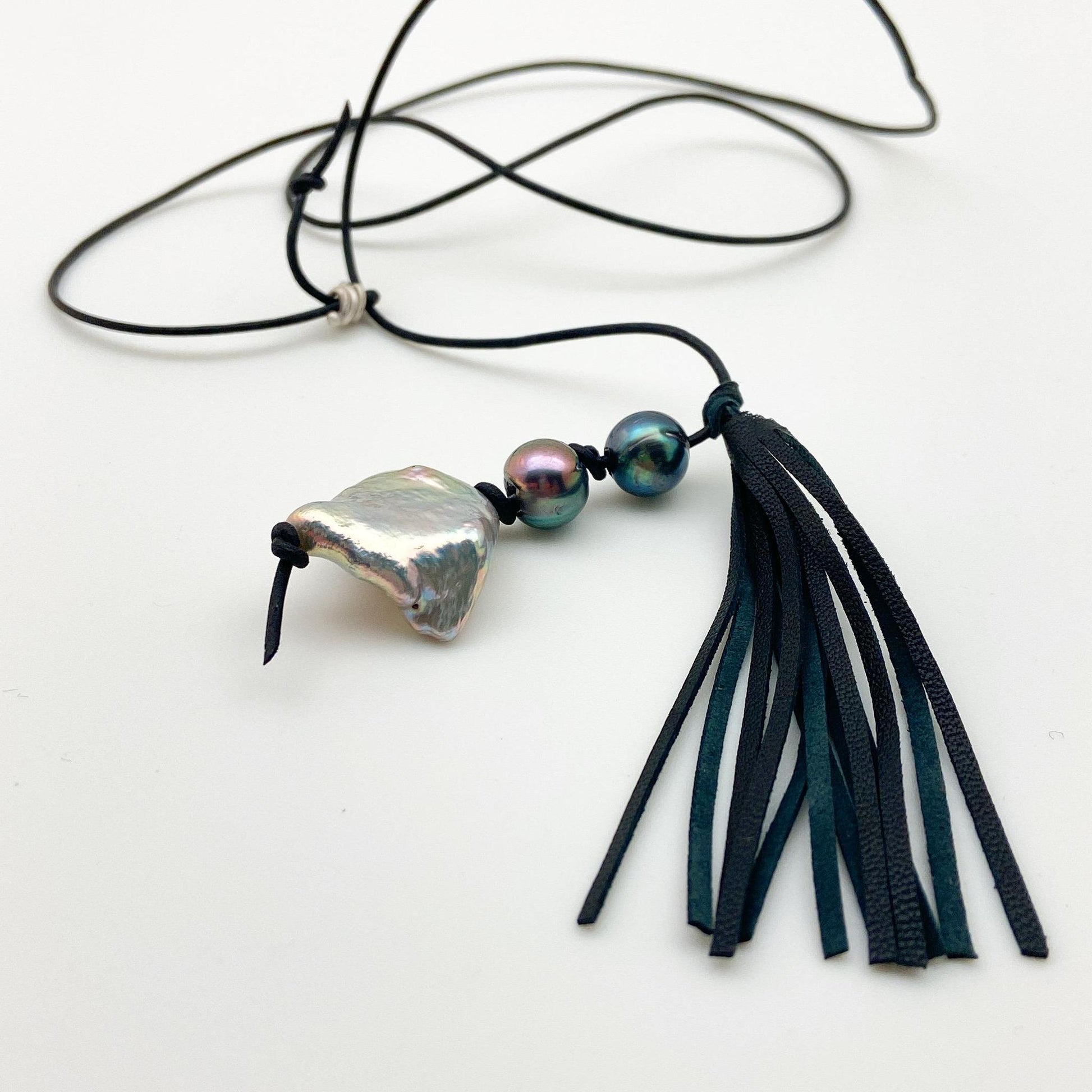 Necklace - Hand-Knotted Pearls on Leather - Pendant and Tassel