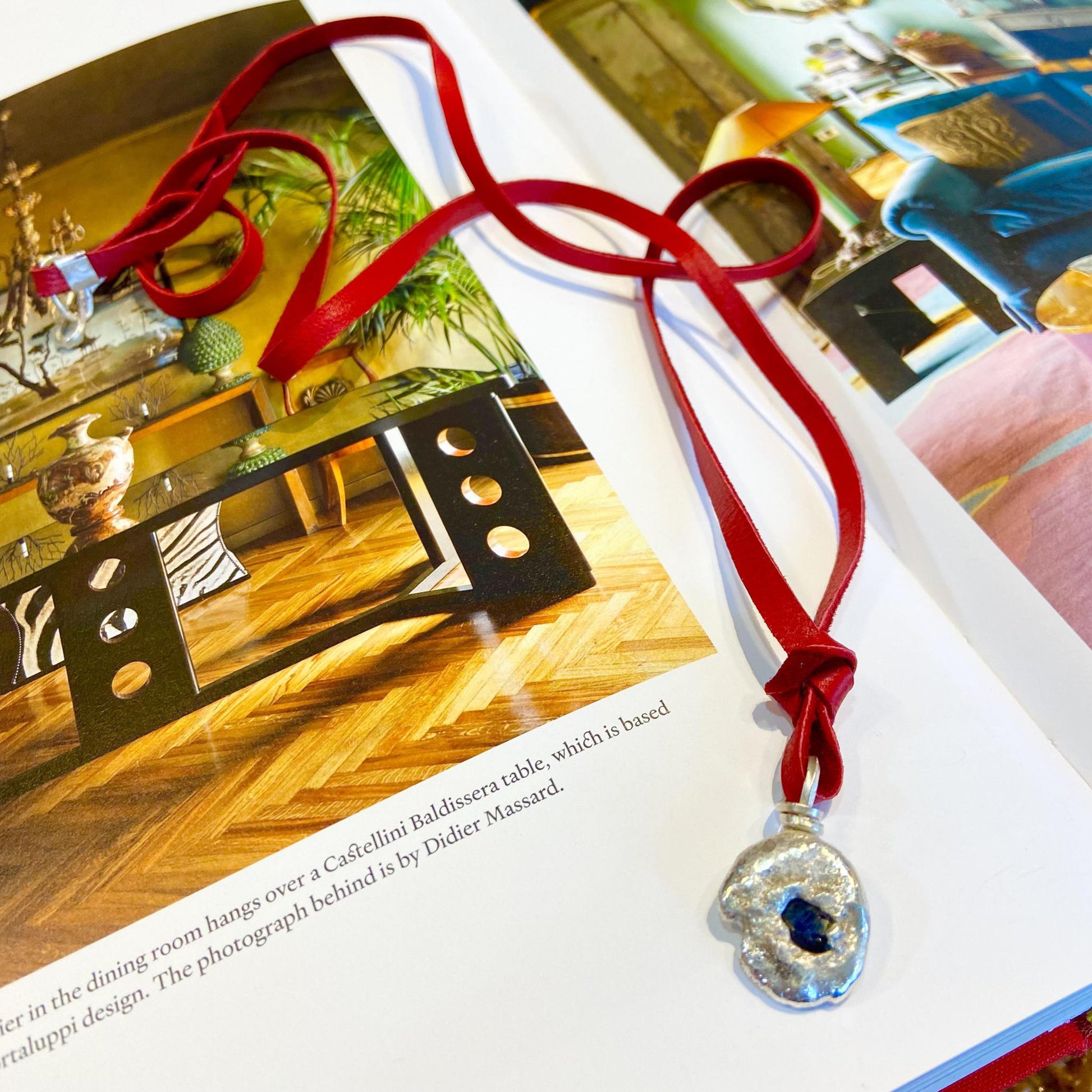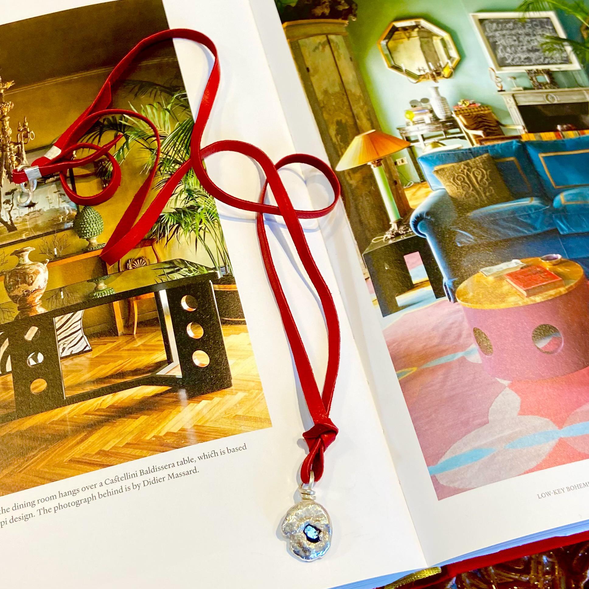 Necklace - Raw Sapphire Set in Molten Sterling Dollops on Leather