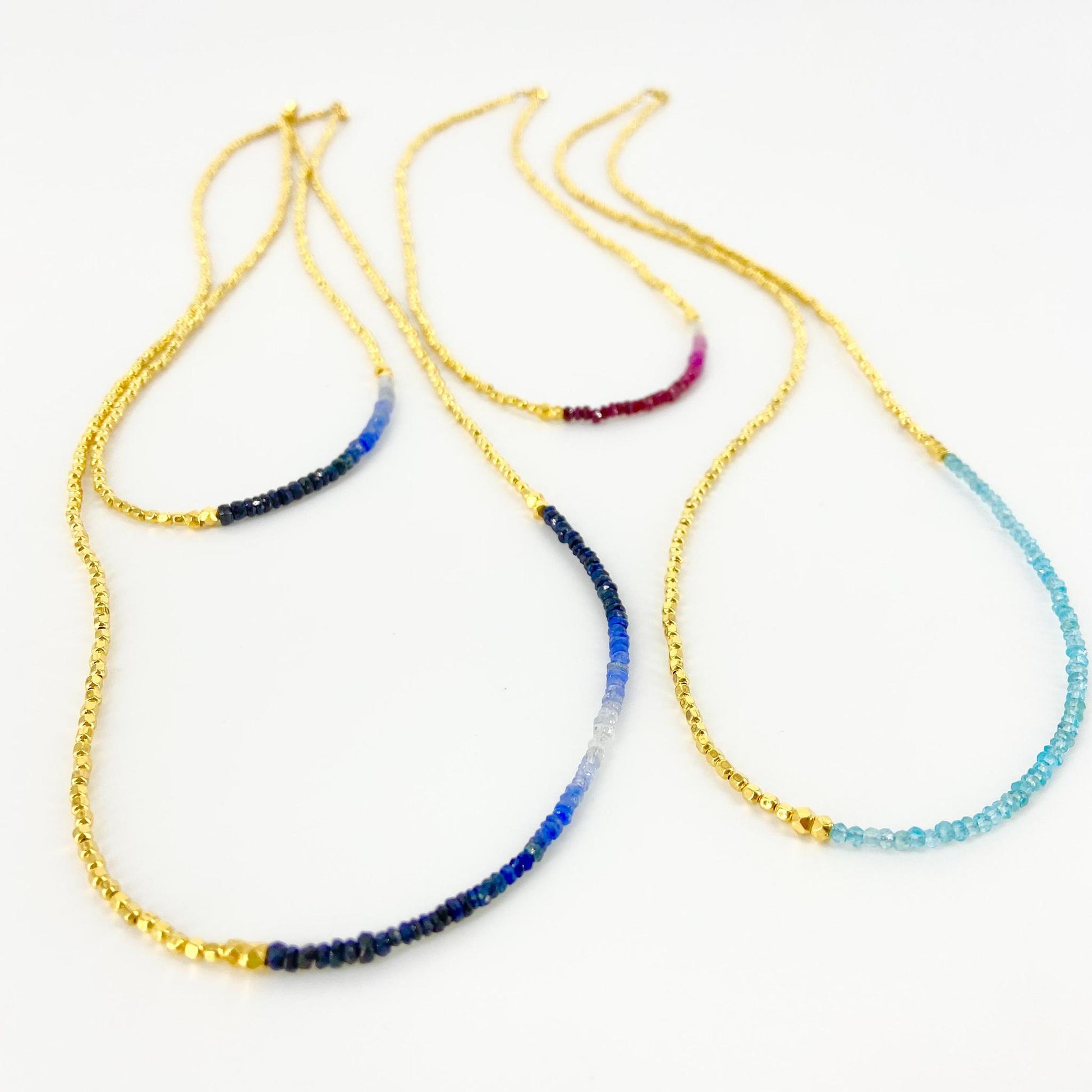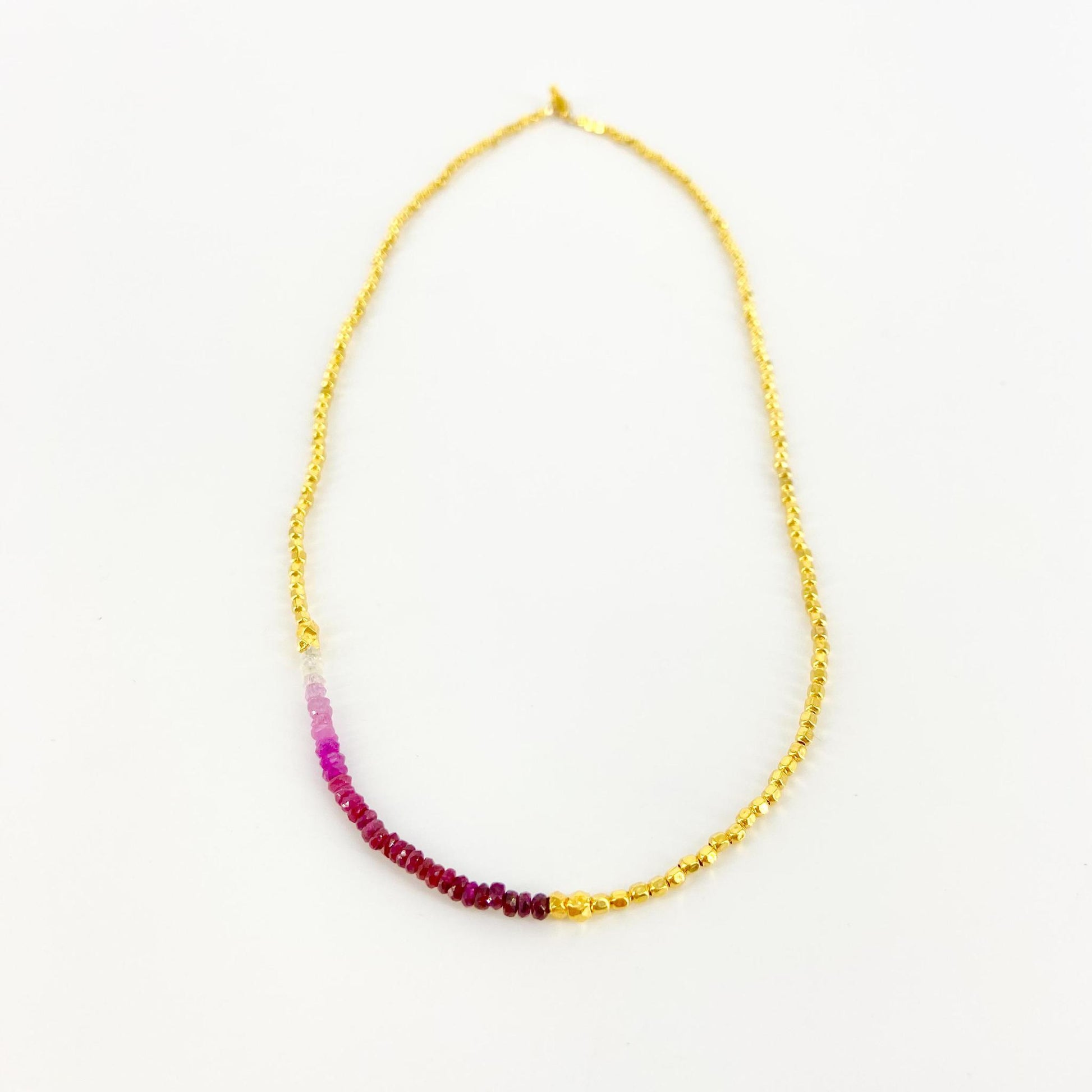 Necklace - Mini Bead - Ruby Fade - 18kt Gold Vermeil
