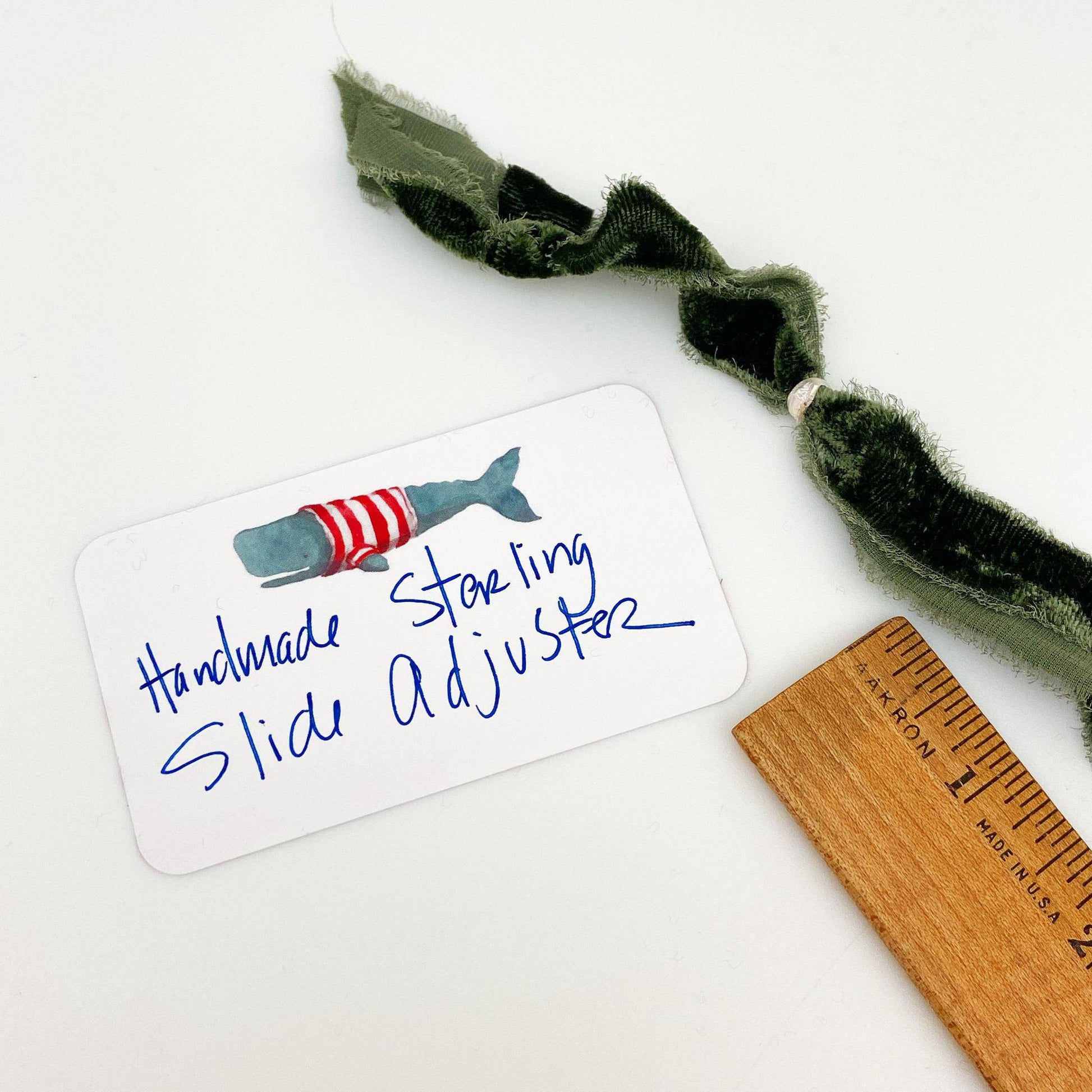 * The velvet is fed through a handmade "wrap bead" that slides to adjust the length of your necklace.