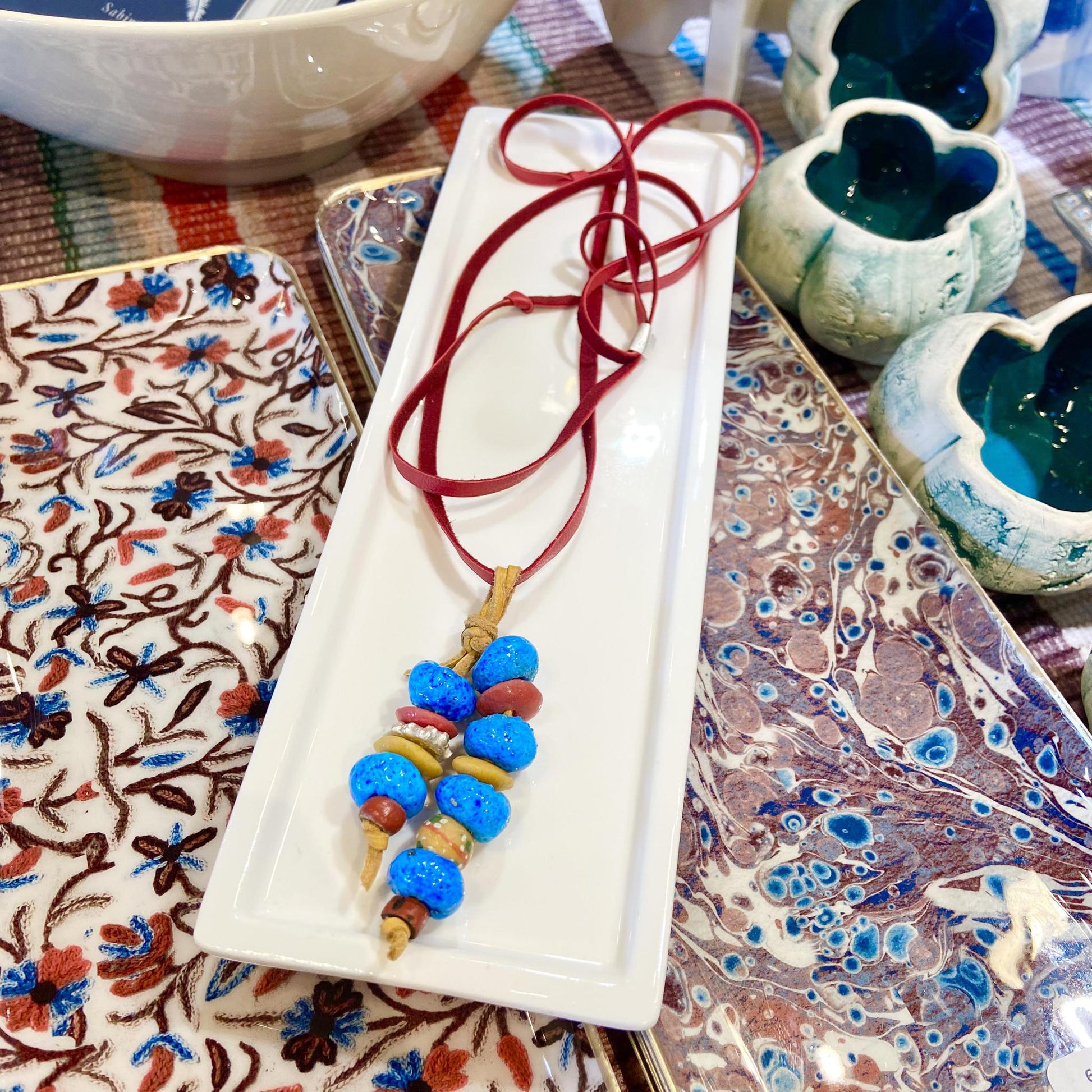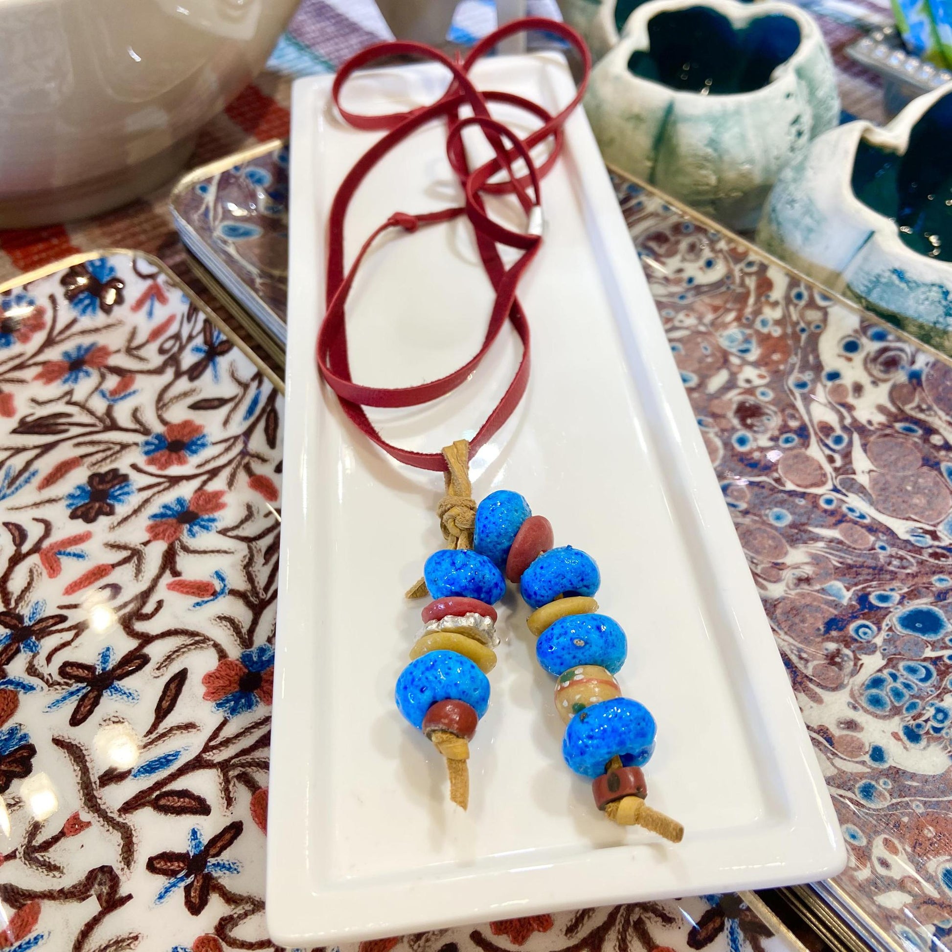 Necklace - Sterling/Leather/African Trade Beads/Donkey Beads