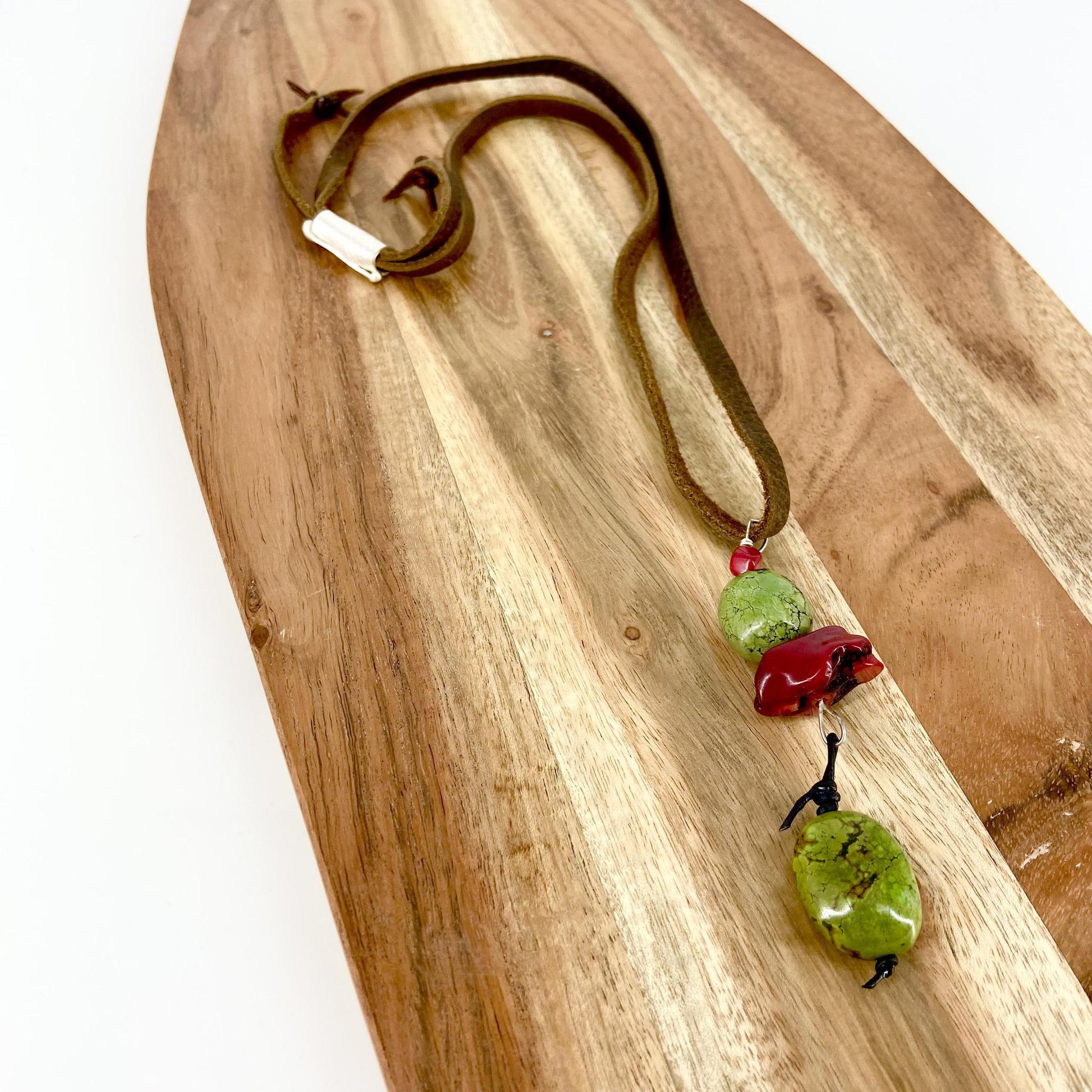 Necklace - Sterling/Leather/Coral/Turquoise