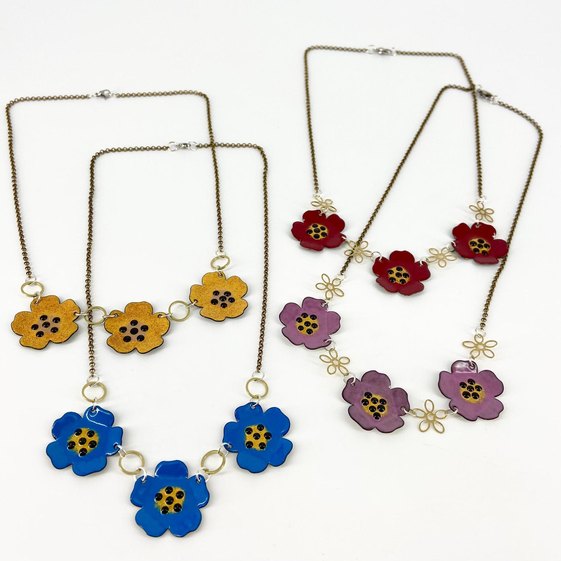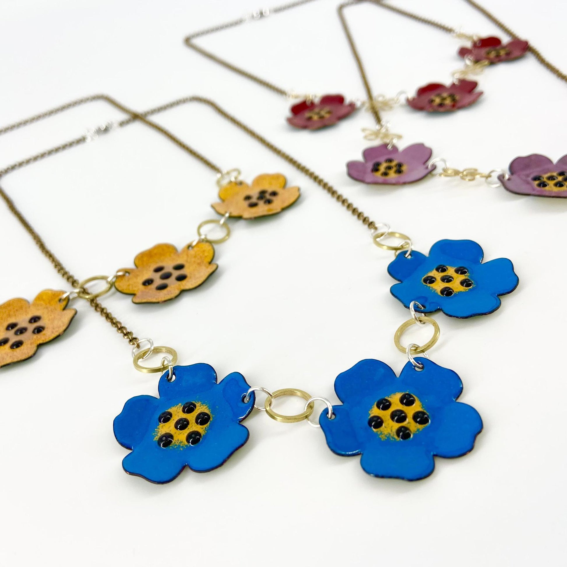 Our collection of enamel-on-copper jewelry is playful, beautiful, and unexpected. This New Mexico artist is quite accomplished. Enameling takes creativity, detail, and focus. We believe our pieces have an attention to detail and finish quality you don't always find with enamel work. Additionally, all of her pieces are enamel-finished on the back. (This eliminates patina marks on your skin, creates a more polished look, and reduces corrosion.)