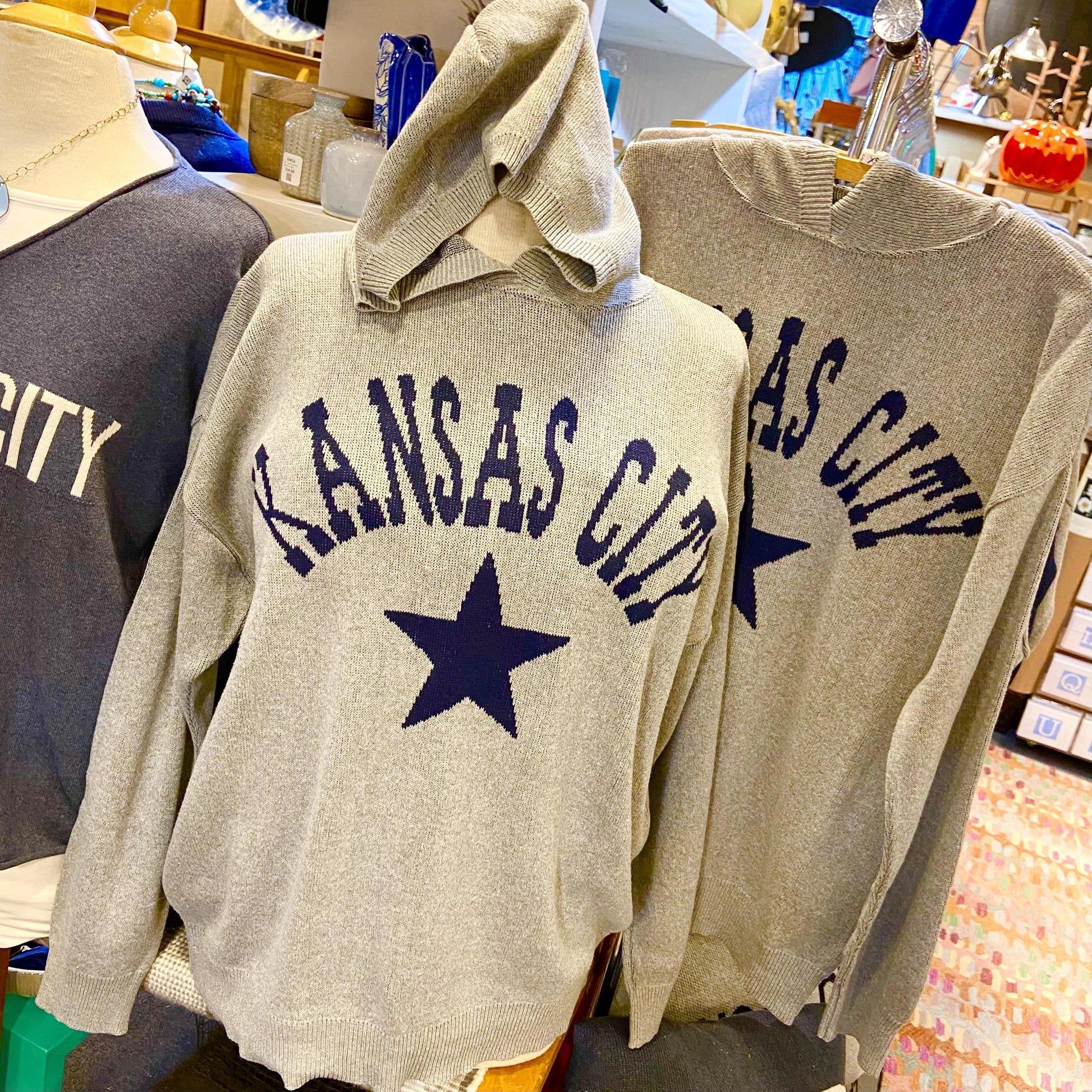 Oversized Hooded Sweater - KANSAS CITY - Unisex - Navy on Grey