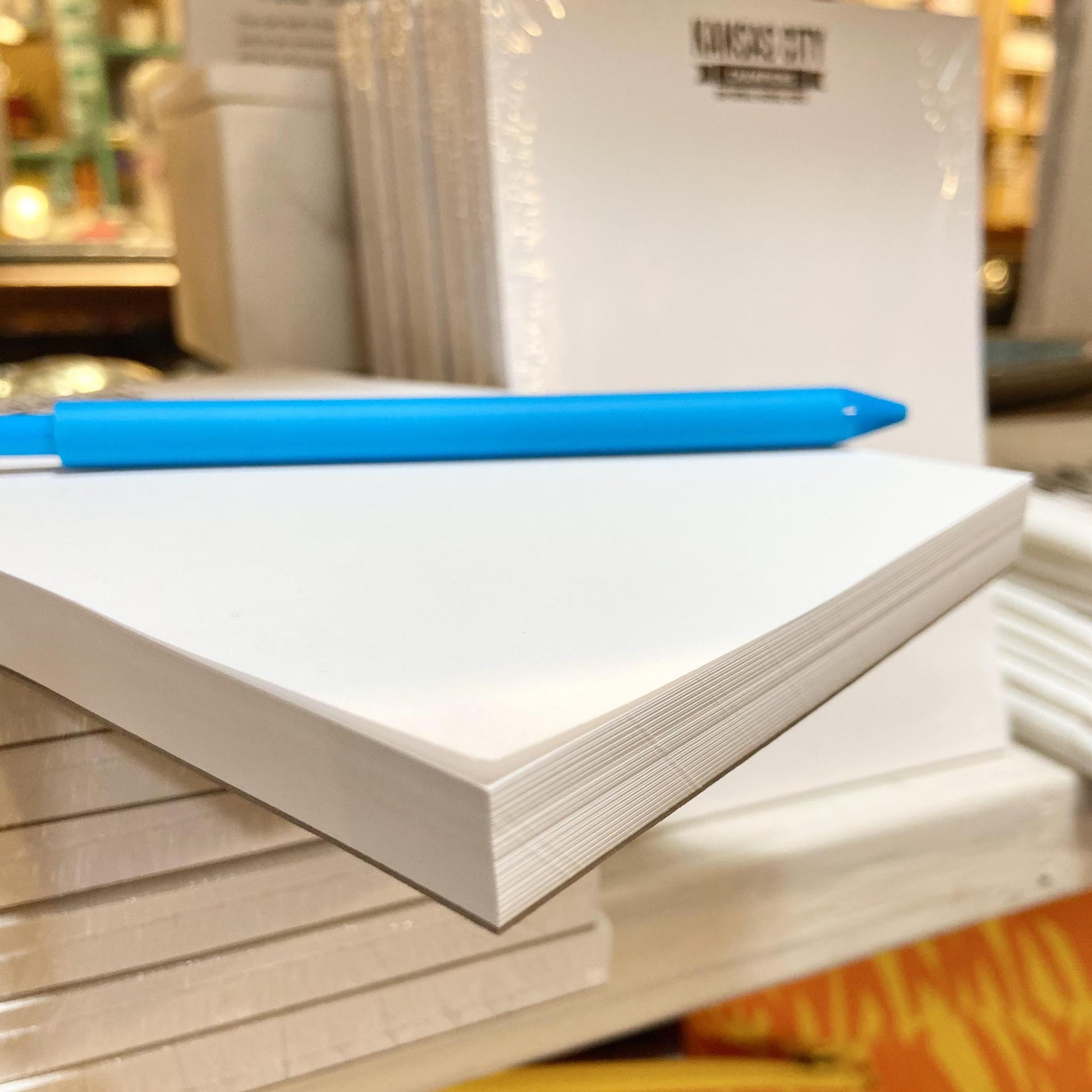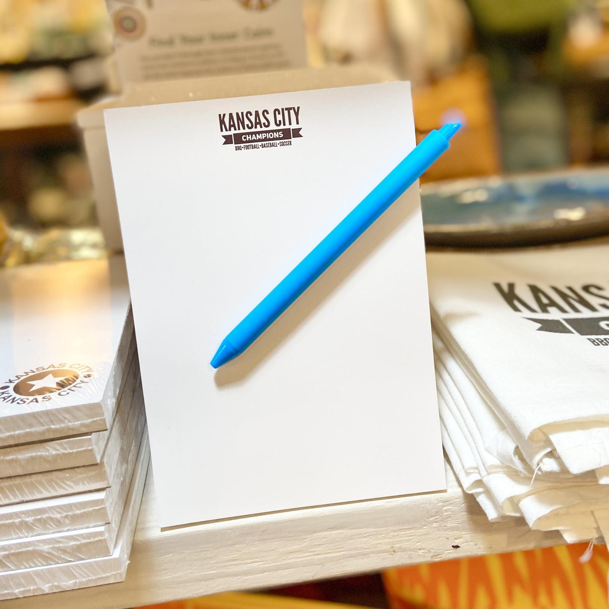 Our handy notepads are made for us with our original designs. A generous notepad with 100 sheets of high-quality paper (no flimsy pages). This notepad features our exclusive Kansas City Champions design in honor of our store's brick-and-mortar location in Kansas City.