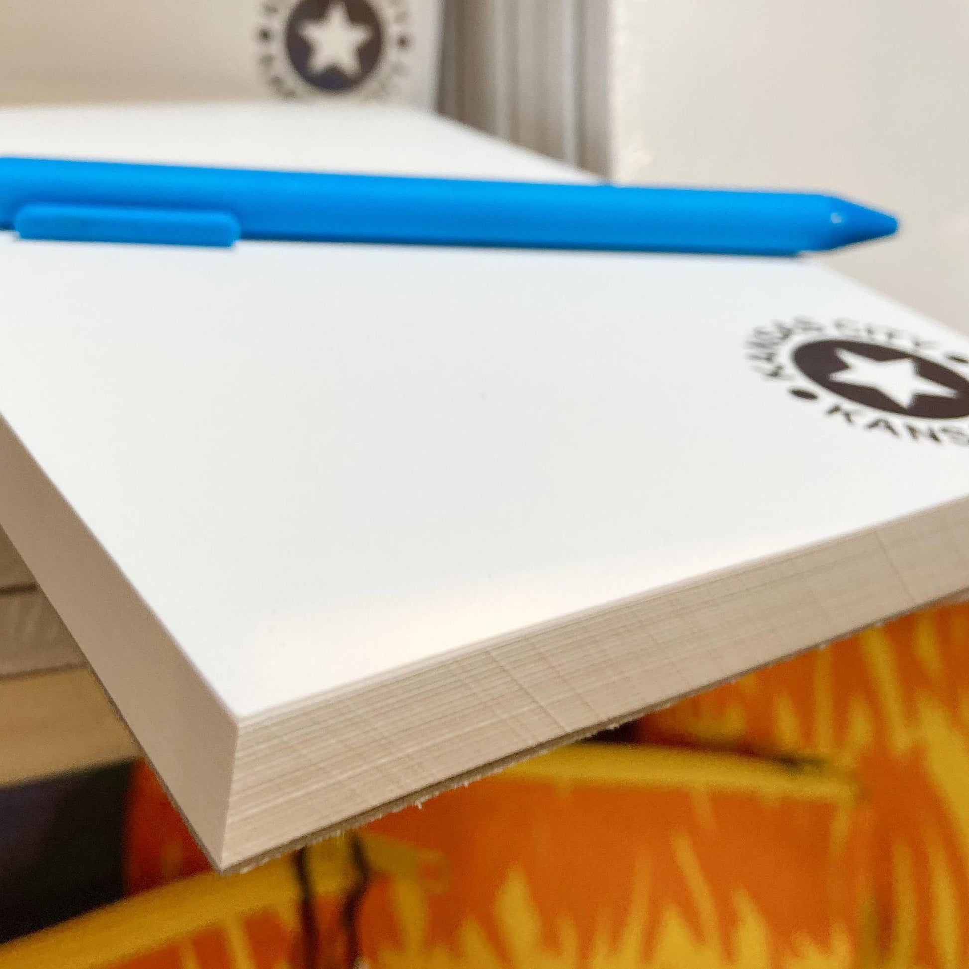 Our handy notepads are made for us with our original designs. A generous notepad with 100 sheets of high-quality paper (no flimsy pages). This notepad features our exclusive Kansas City Star Icon design in honor of our store's brick-and-mortar location in Kansas City.