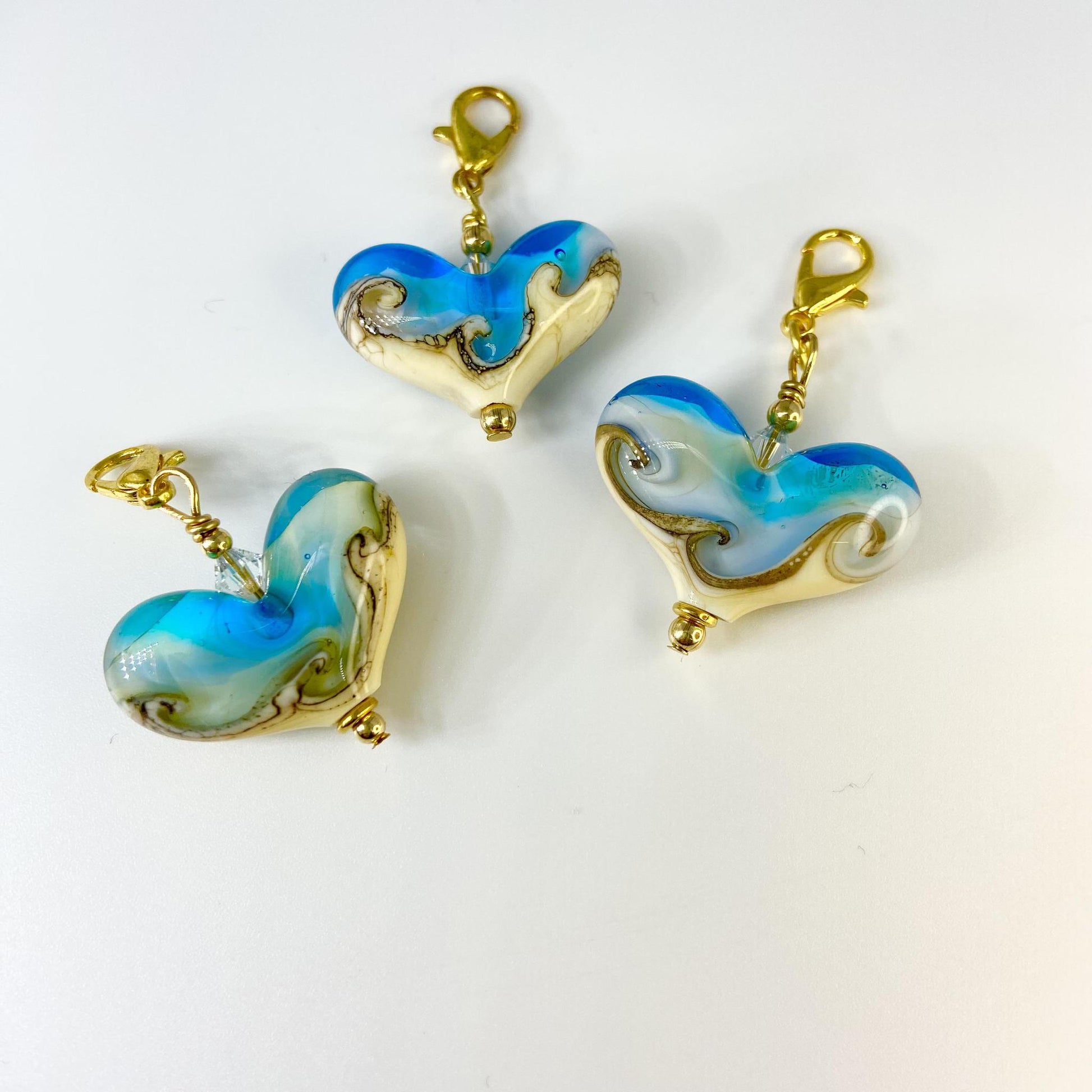 These hearts have a whole beach world inside. Handmade by a Kansas City artist, each heart is one-of-a-kind. They are captivating. Everyone we meet has a special relationship with the ocean and the beach. The hearts capture our love of where the water meets the land.